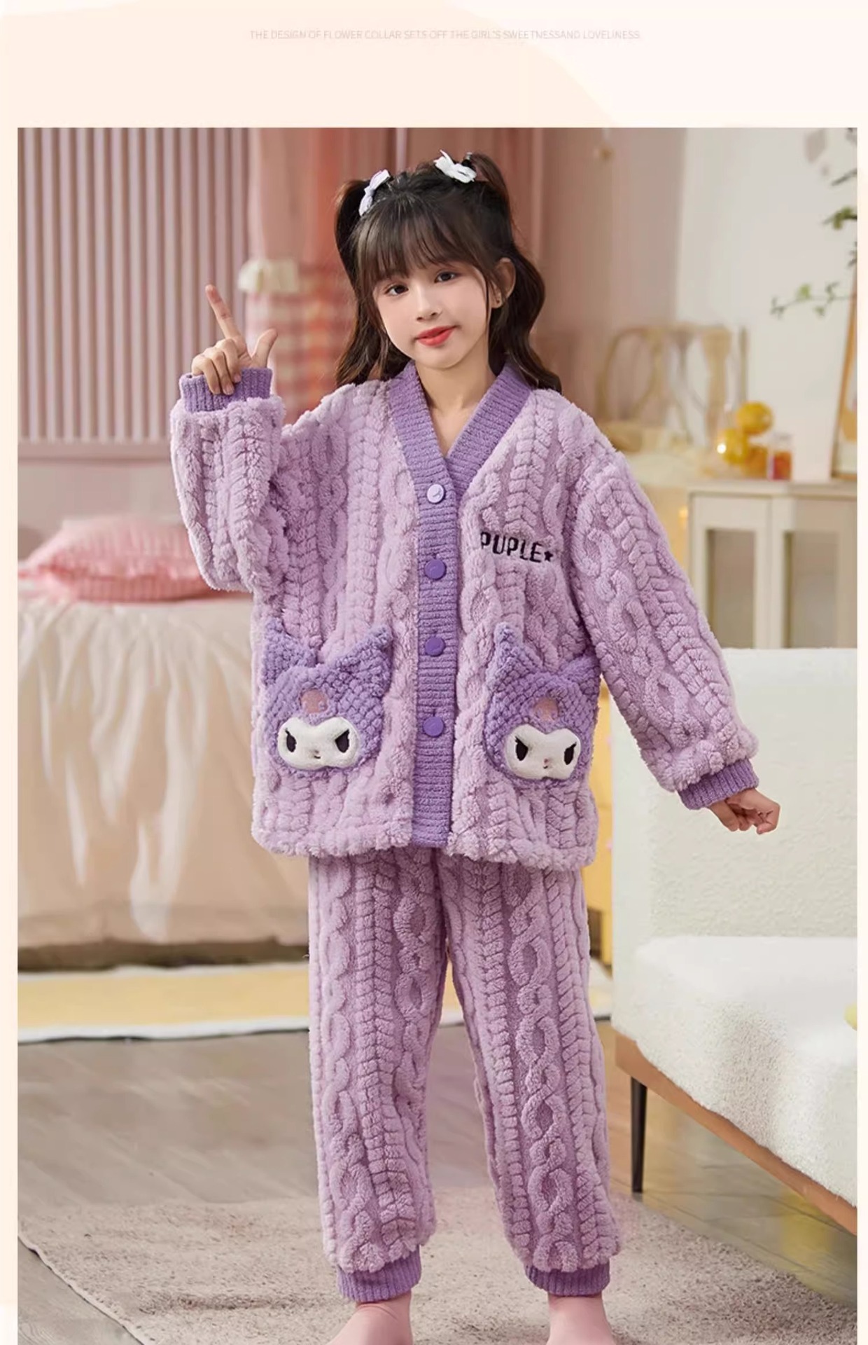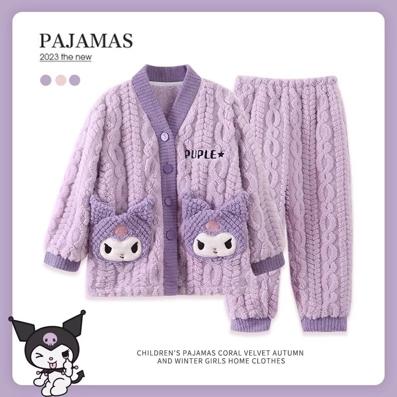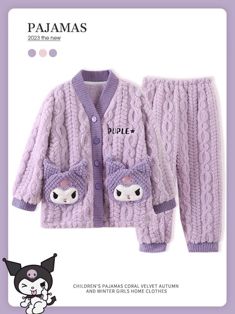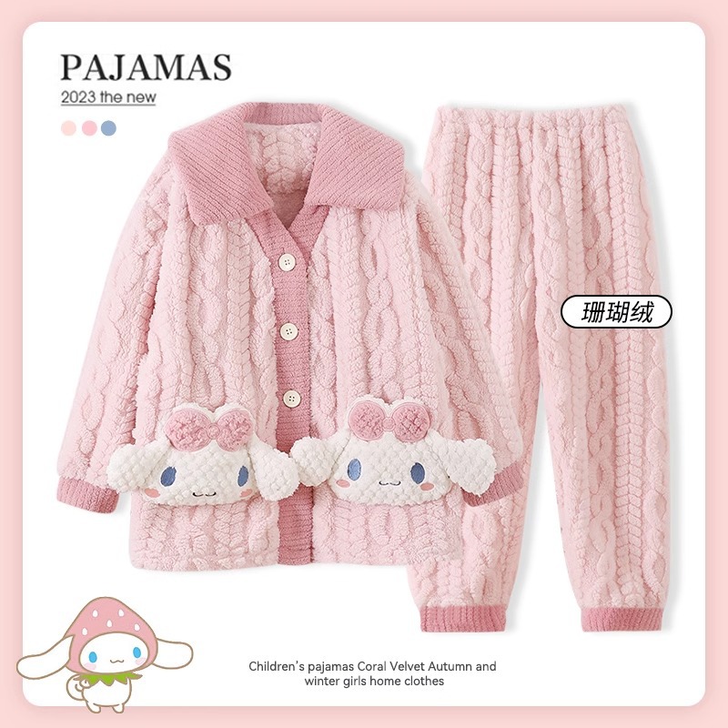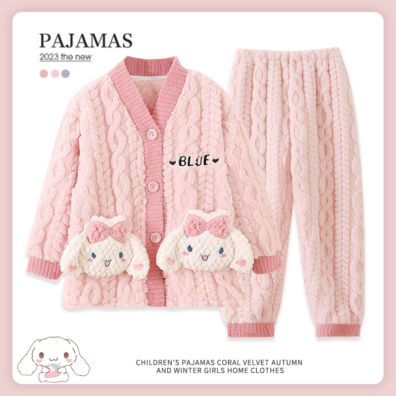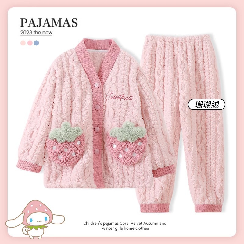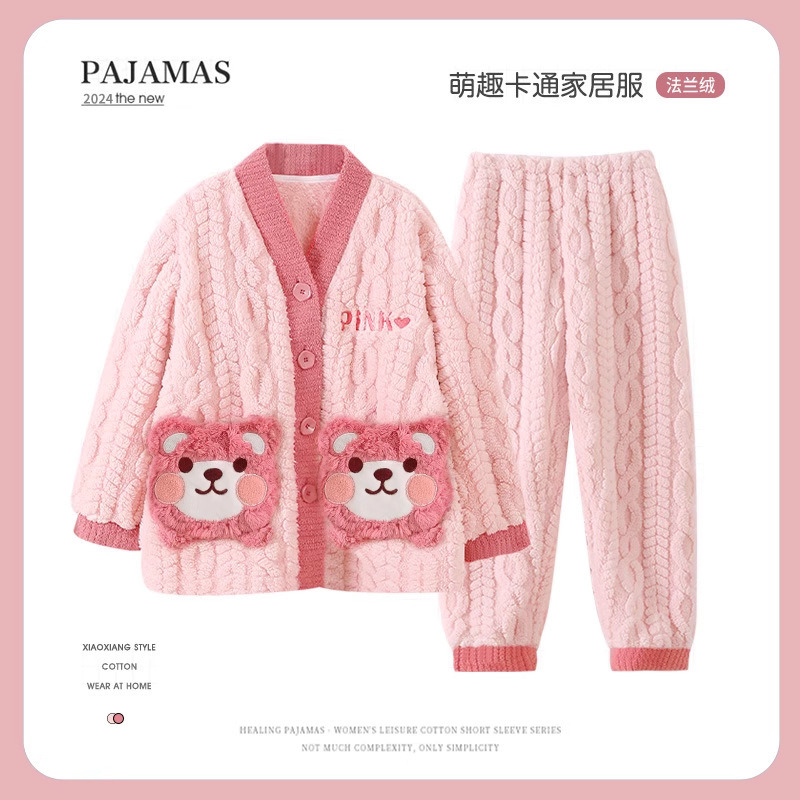 어린이 가을, 겨울 잠옷 세트 소녀 두꺼운 플란넬 겨울 소녀 산호 벨벳 2025 새로운 가정 의류스토어 가기