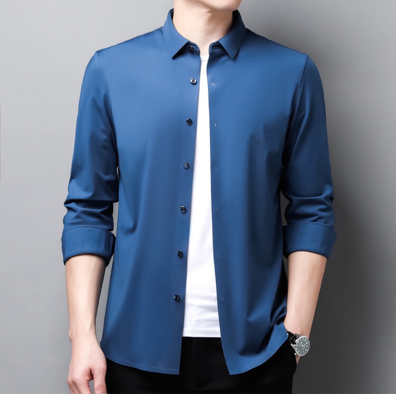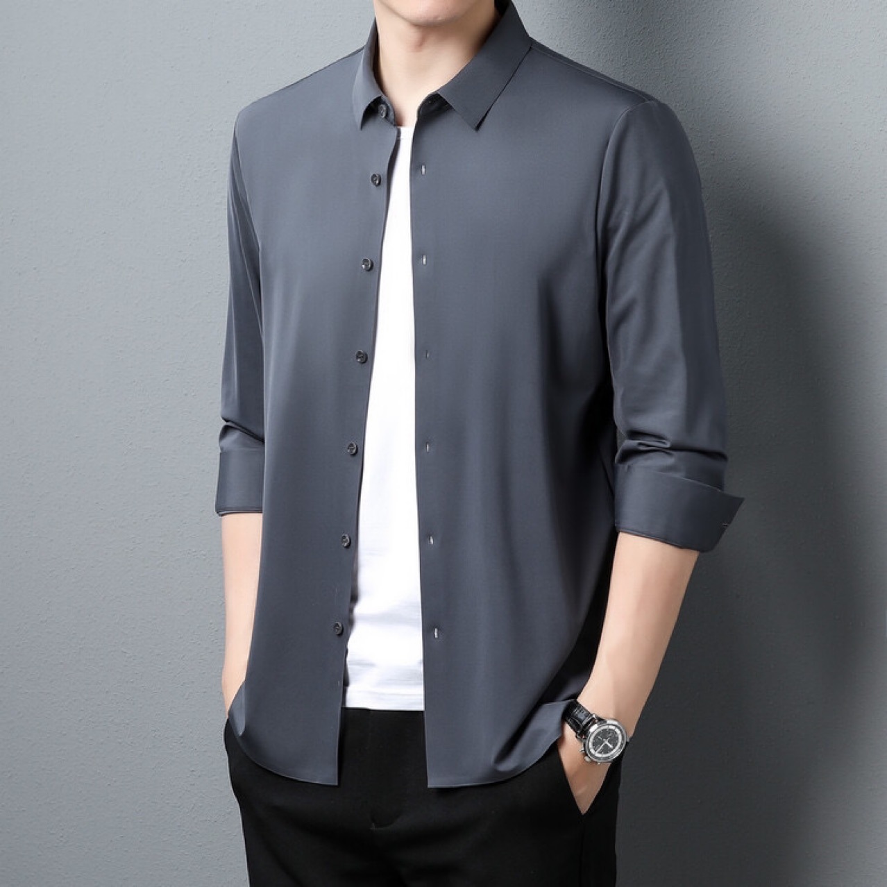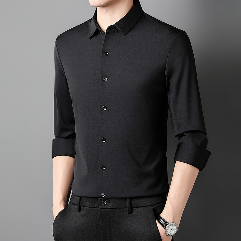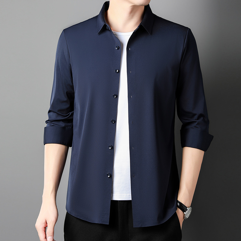 뽕나무 실크 남자의 셔츠 봄과 가을 얇은 긴 소매 얼음 실크 다림질 셔츠스토어 가기