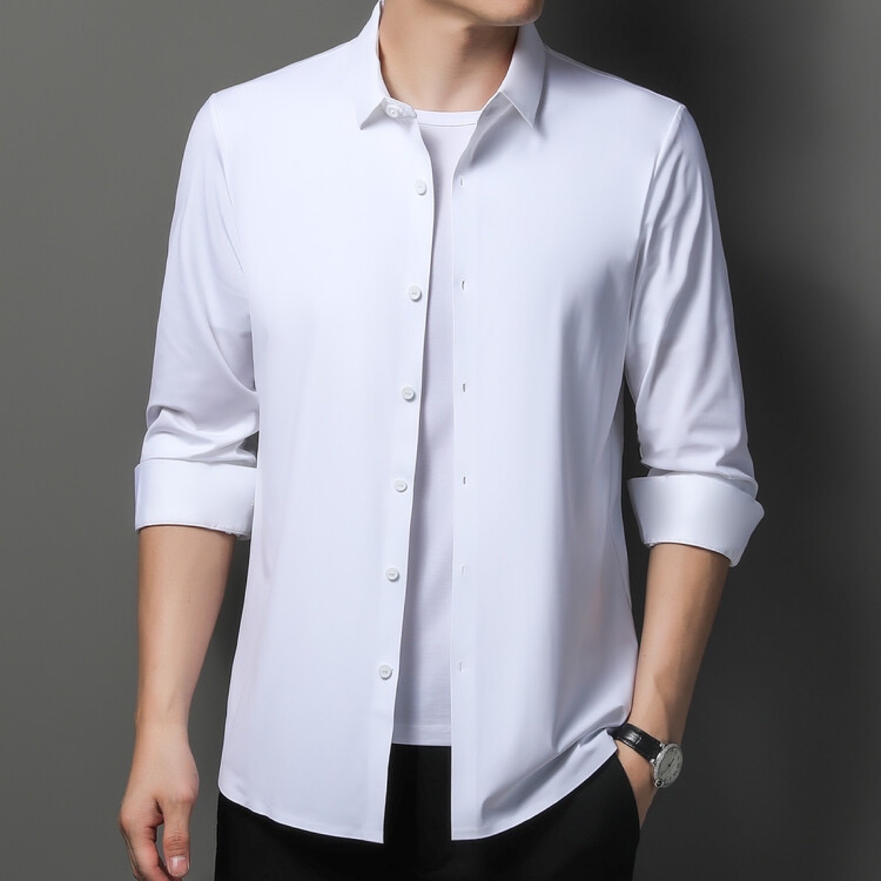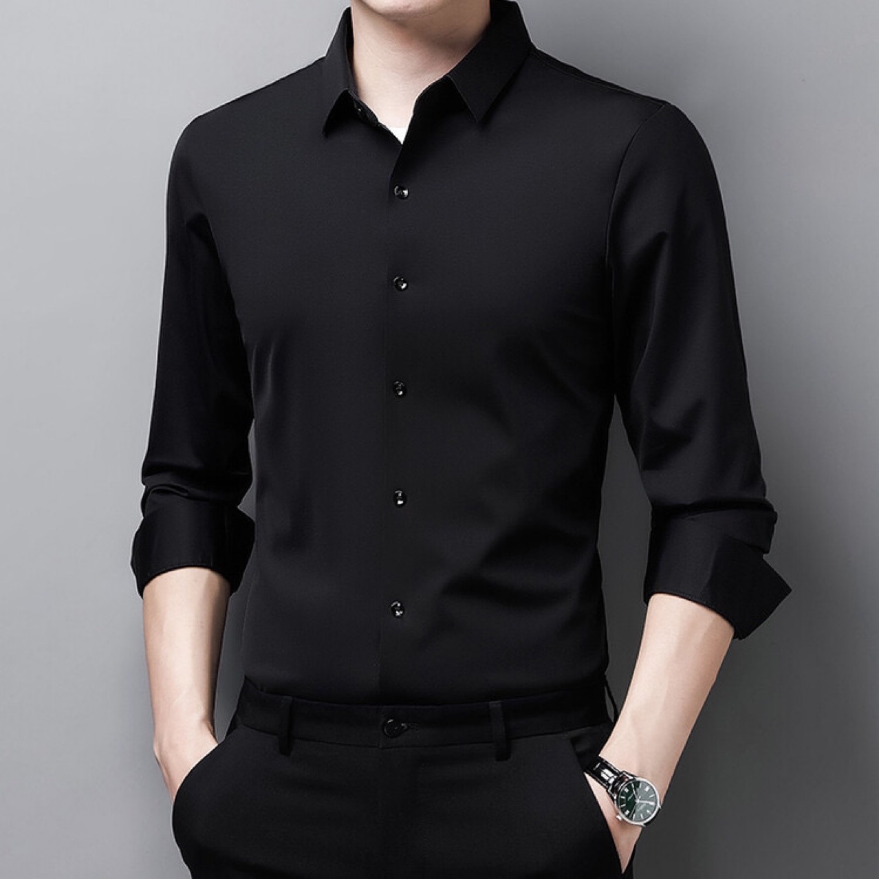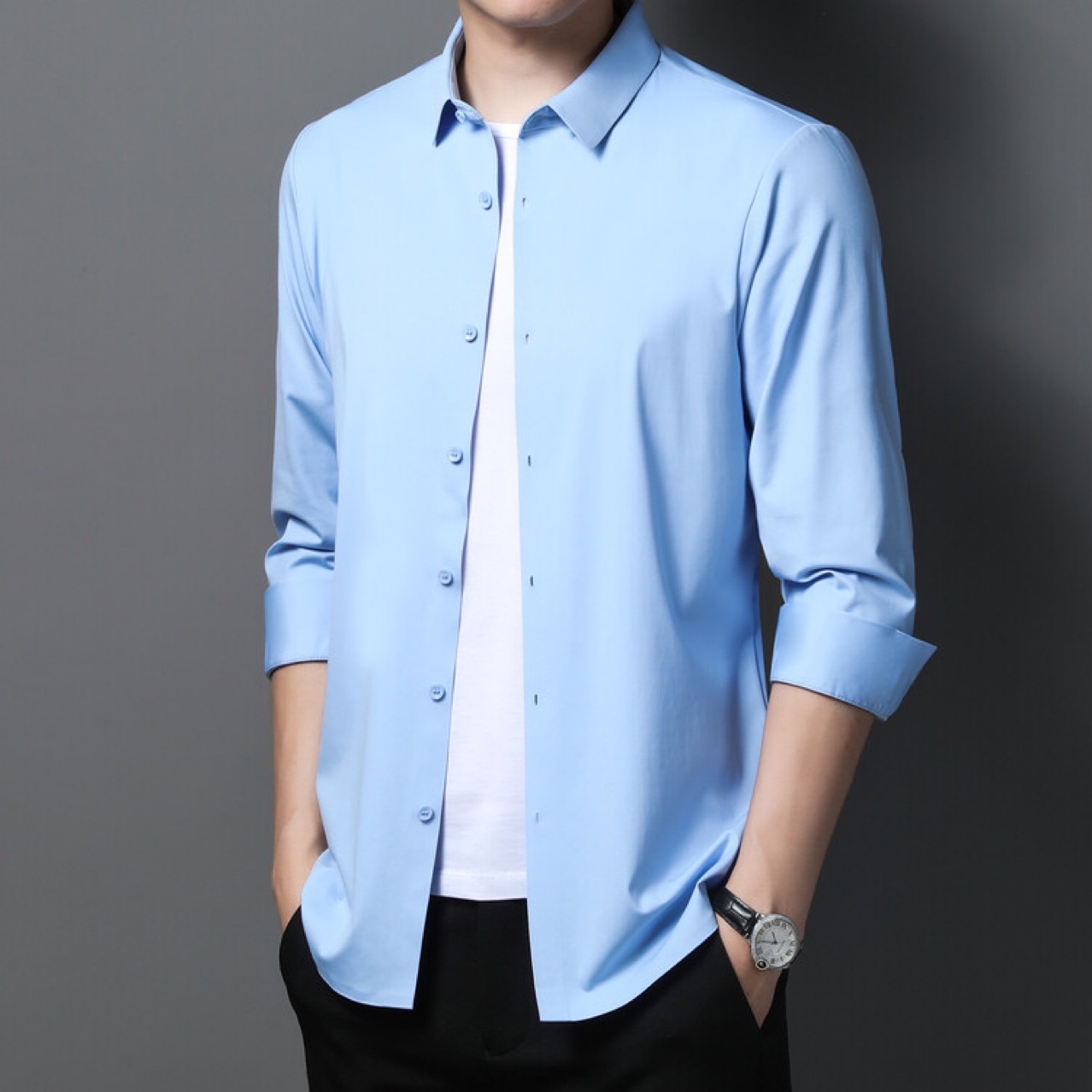 뽕나무 실크 남자의 셔츠 봄과 가을 얇은 긴 소매 얼음 실크 다림질 셔츠스토어 가기