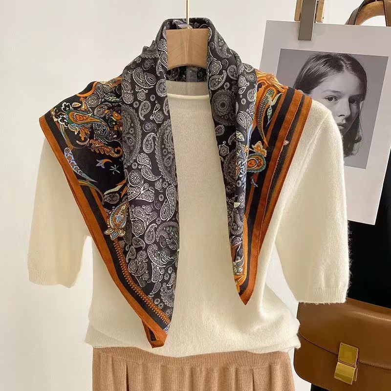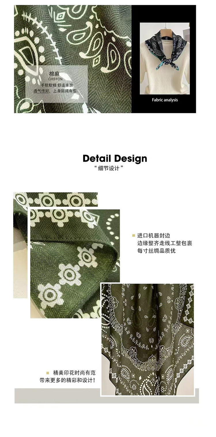 봄과 가을 얇은 패션 기질 면과 리넨 스카프 70 캐슈 꽃 이중 사용 목 보호 조커 스퀘어 스카프 목도리 스카프 도매