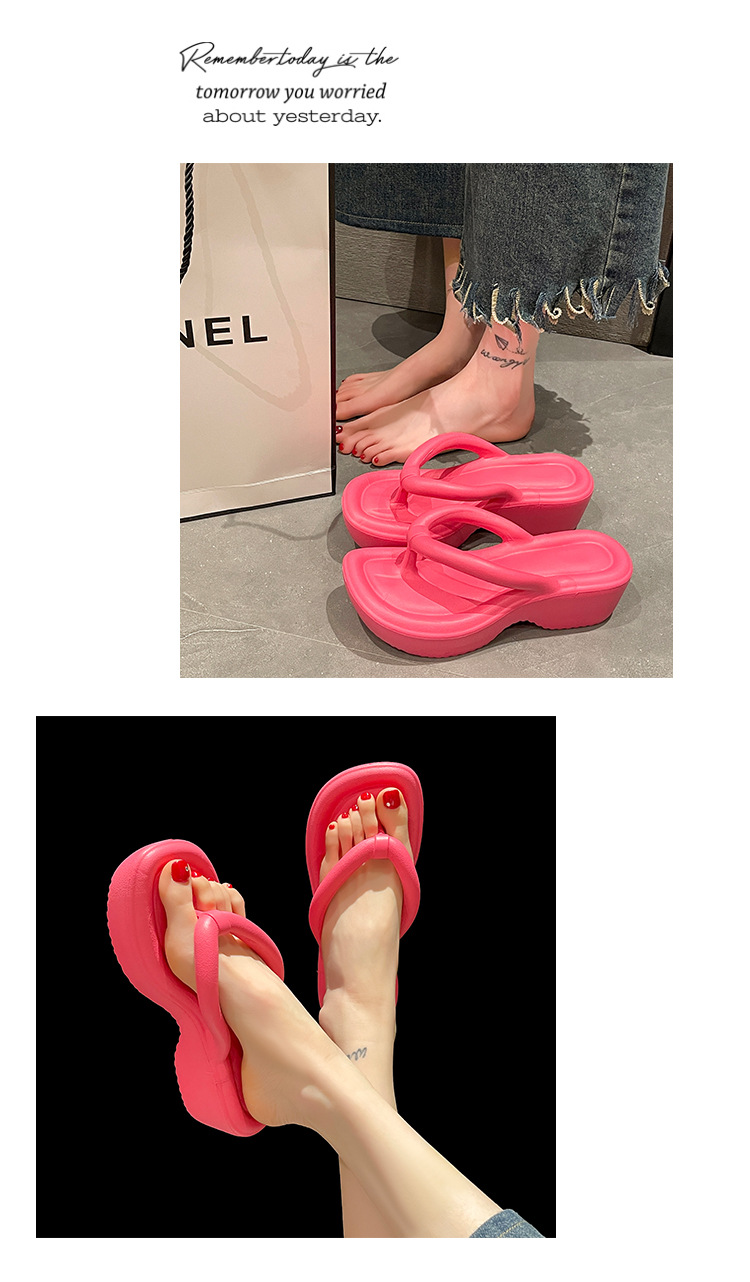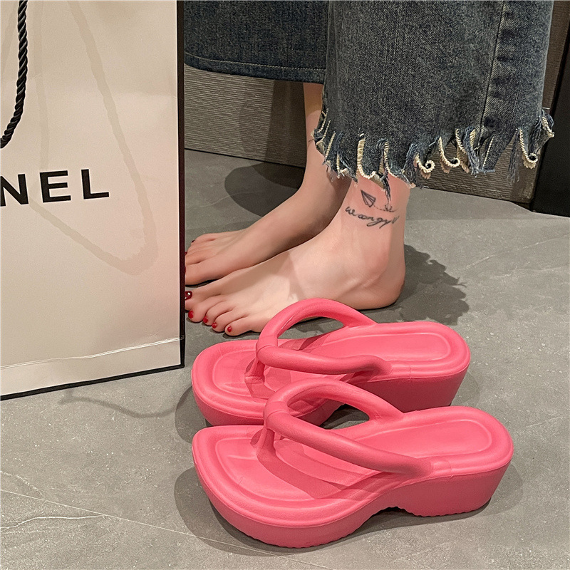 Zhao Lusi 슬리퍼 두꺼운 밑창 높이 증가 느낌 미끄럼 방지 홈 여행 이중 사용 플립 플롭스 비치 샌들 여성용스토어 가기