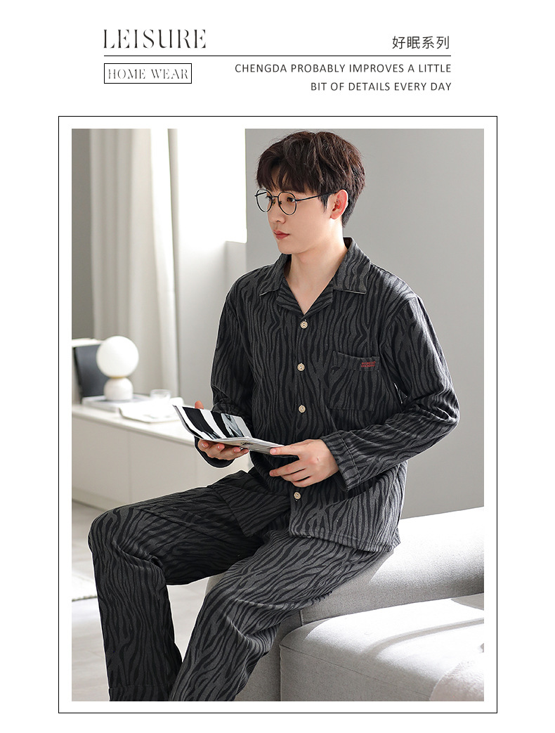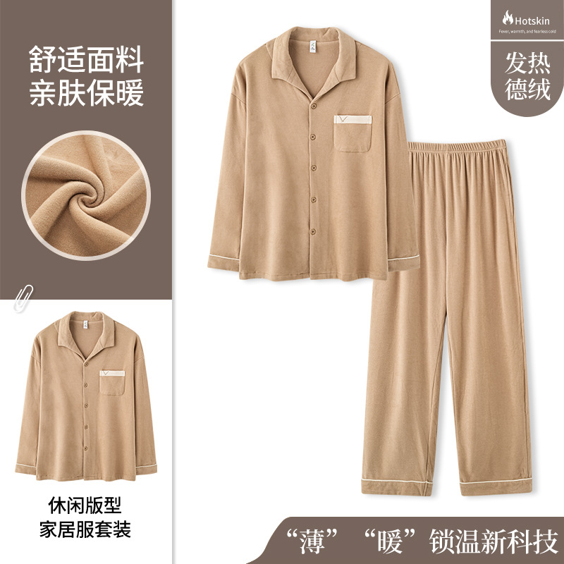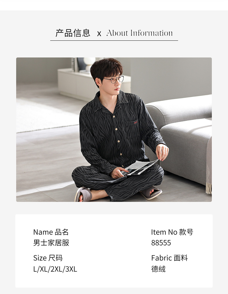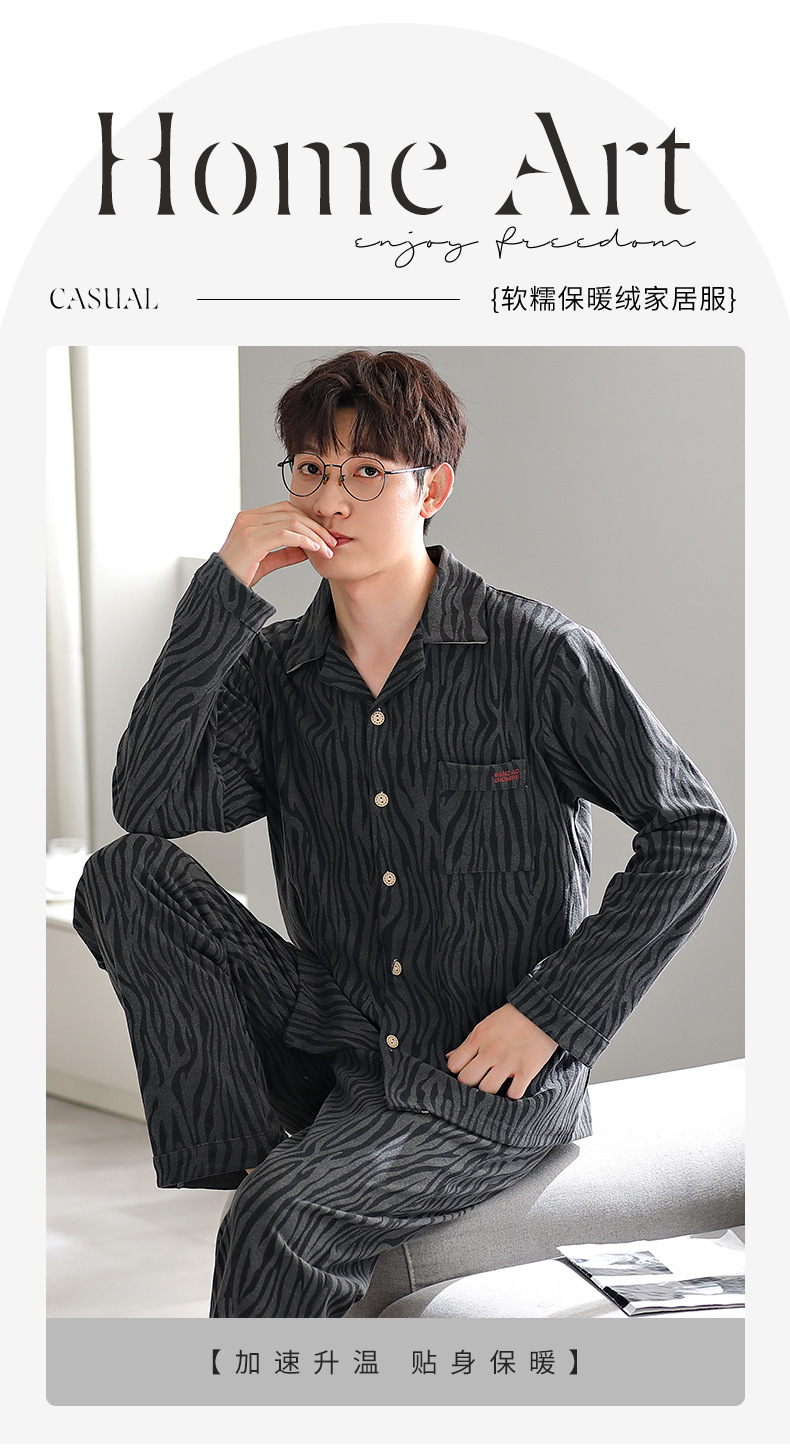 독일 벨벳 남성 잠옷 2024 년 가을과 겨울 새로운 얇은 벨벳 패딩 긴 소매 카디건 겨울 홈 의류 남성