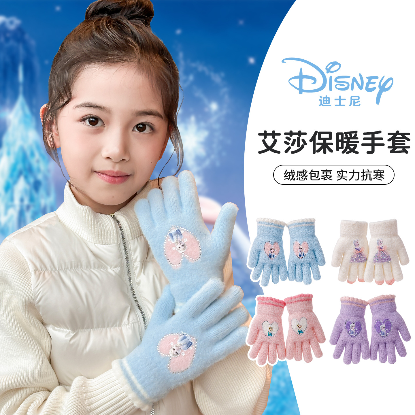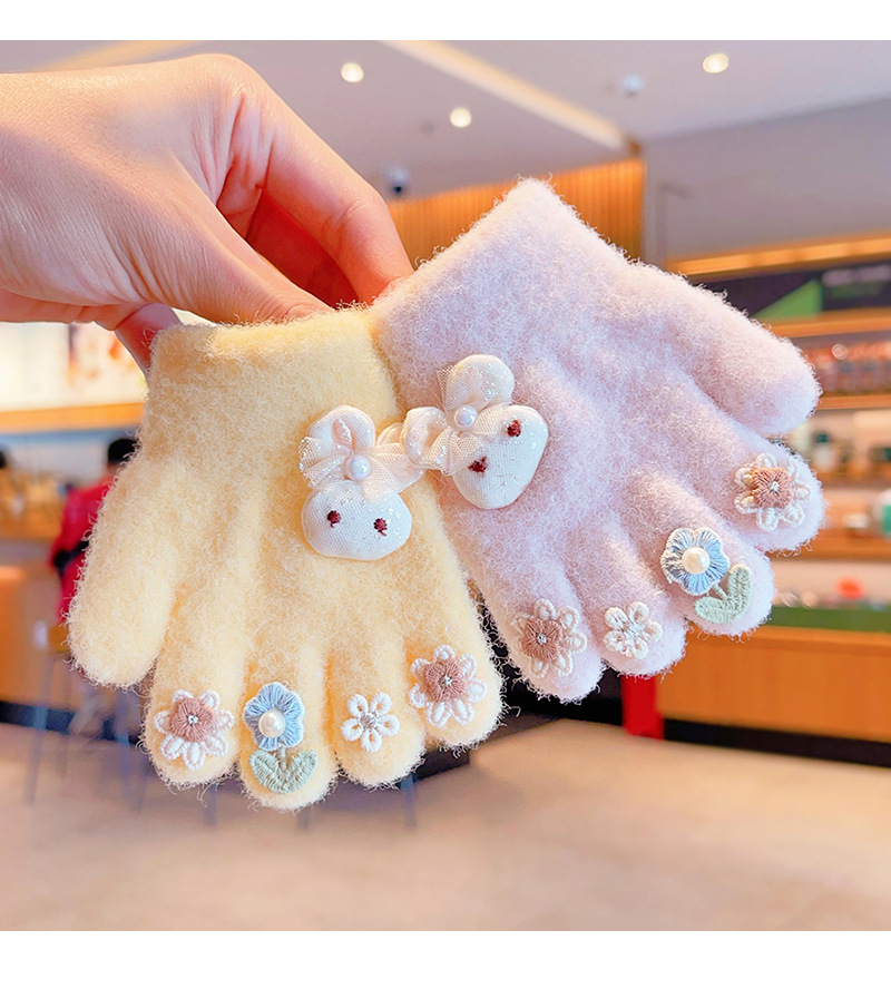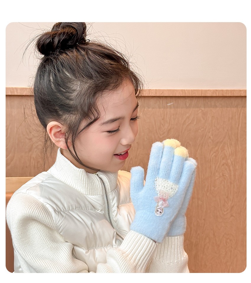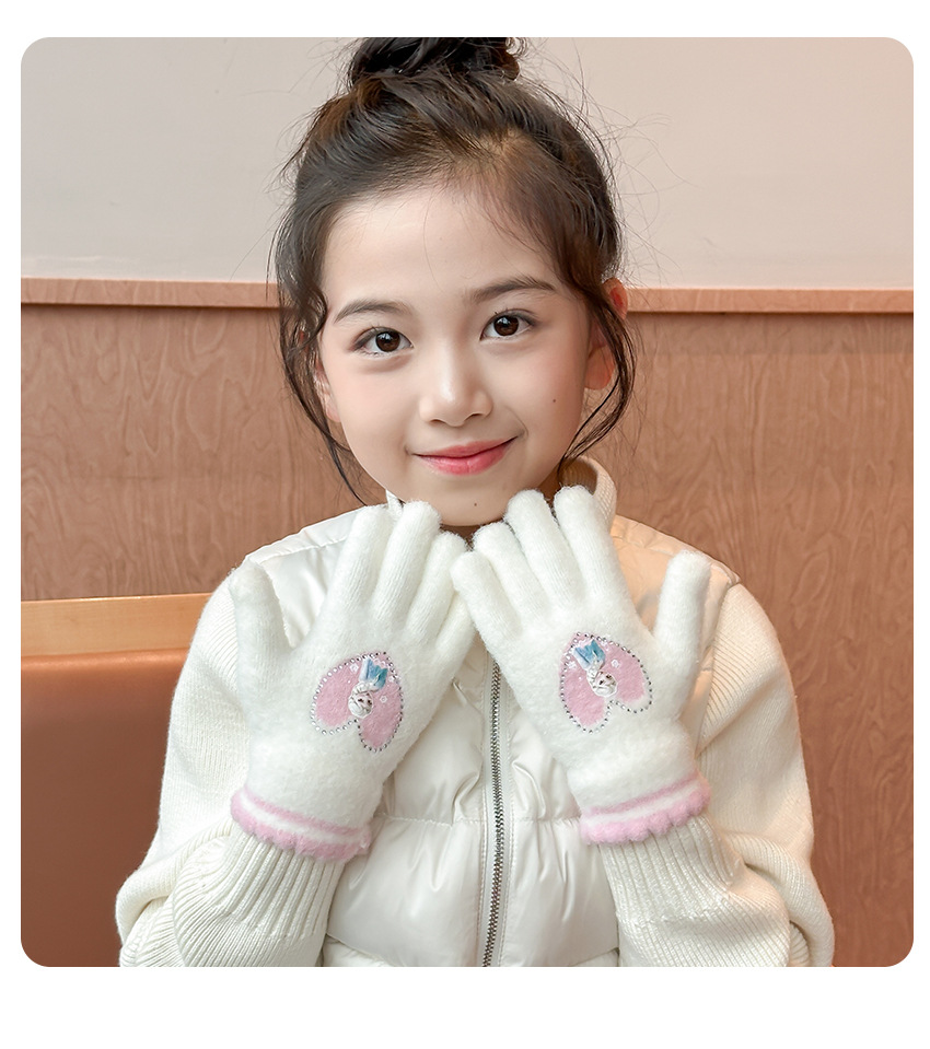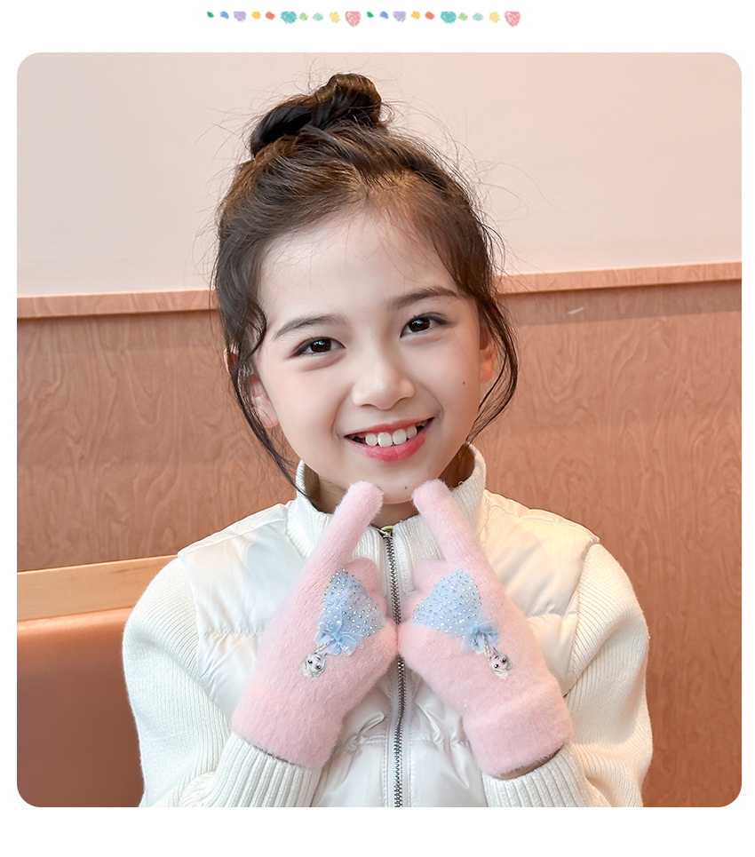 2025년 신형 리본 장갑 어린이용 장갑 니트 플러시 베이비 풀핑거 두꺼운 보온 아동용 손가락 장갑스토어 가기