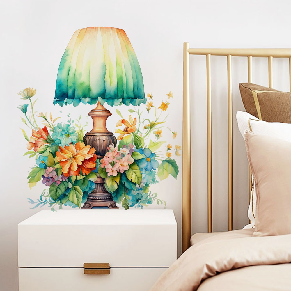 Yiyao DD3468 녹색 예술 꽃 정원 테이블 램프 인쇄 창조적 인 벽 스티커 방 침실 장식 셀프 접착 스티커