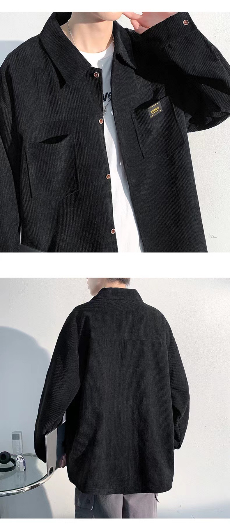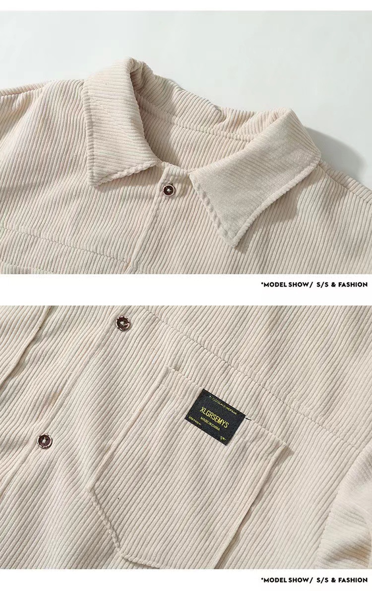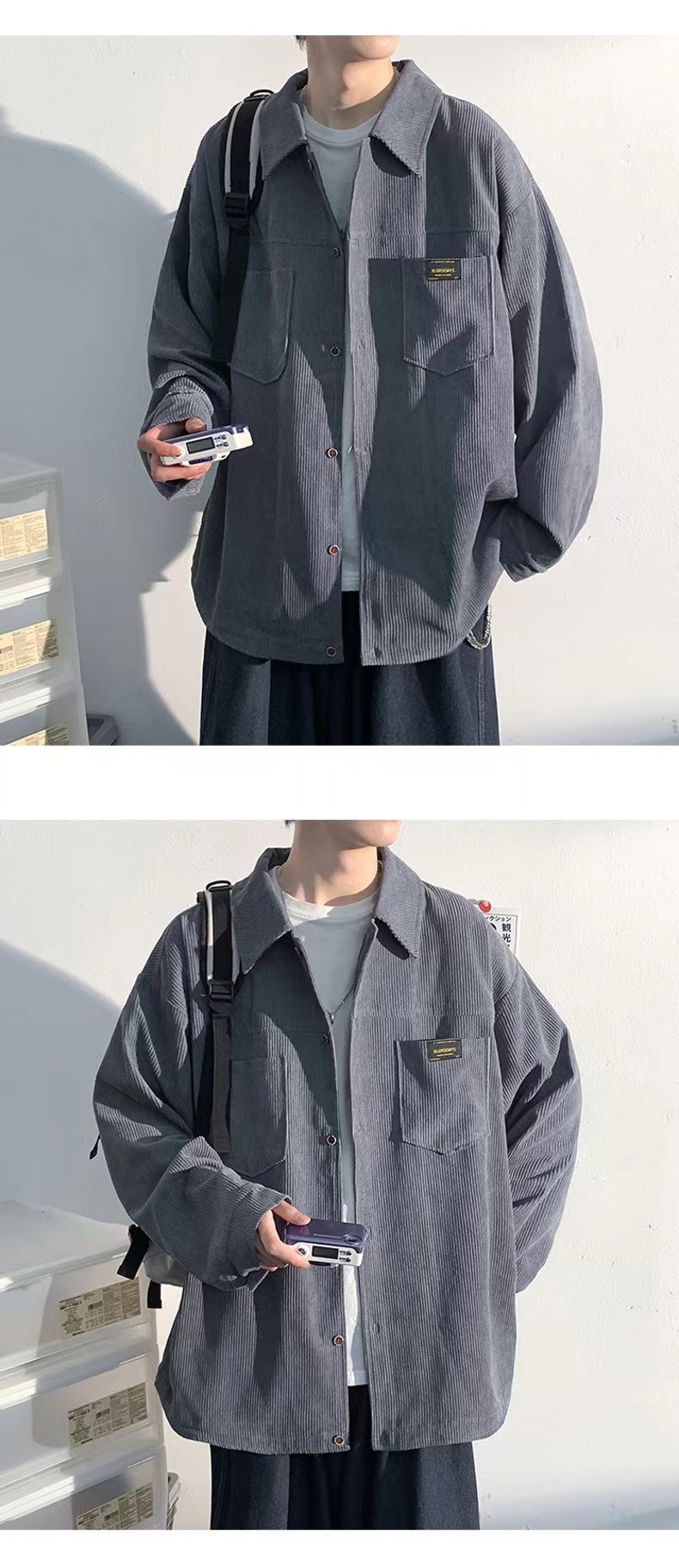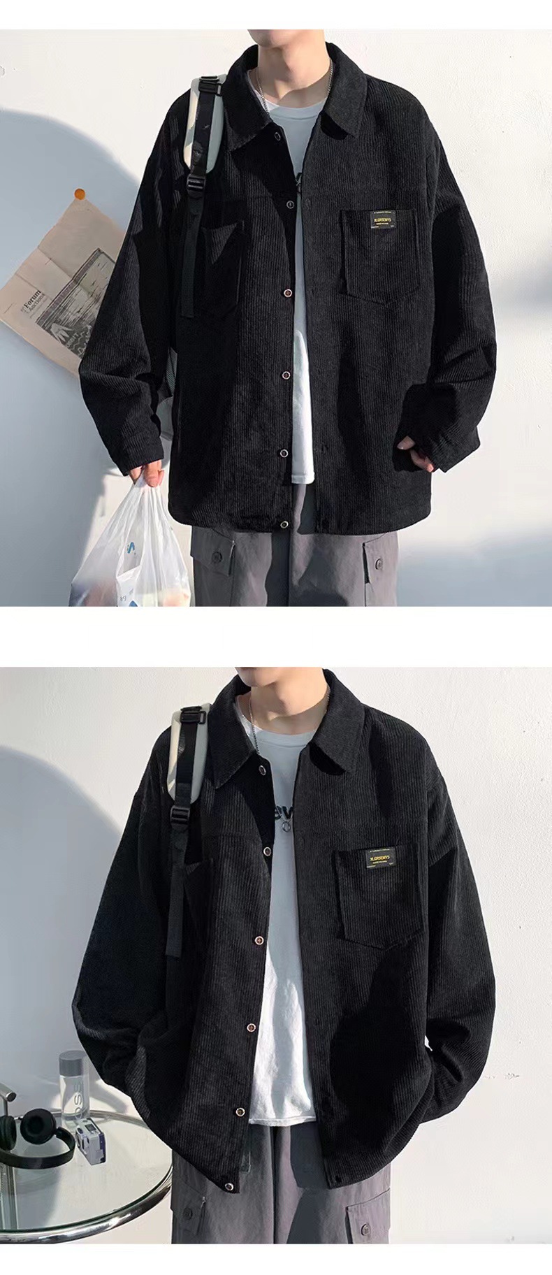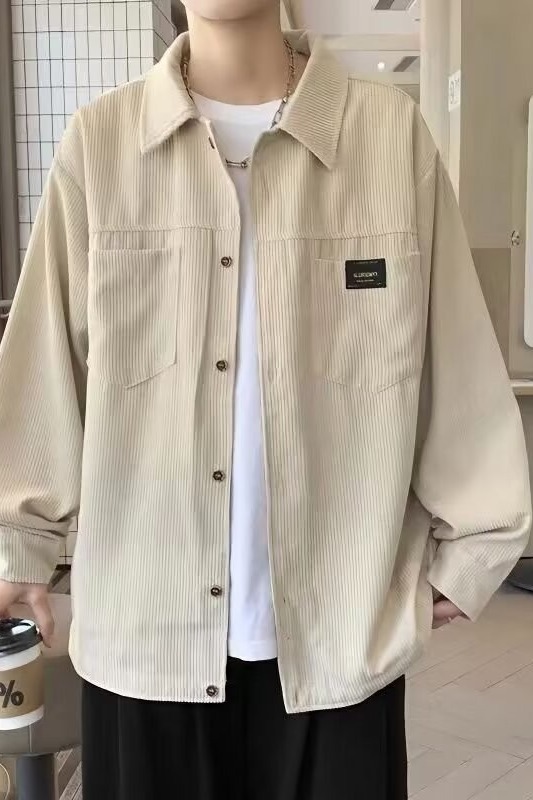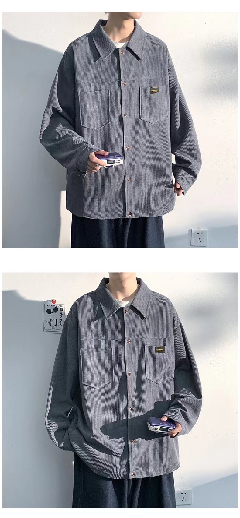 새로운 긴 소매 셔츠 남자의 2024 봄 새로운 느슨한 코듀로이 홍콩 스타일 일본 스타일 셔츠 재킷 코트 남성스토어 가기