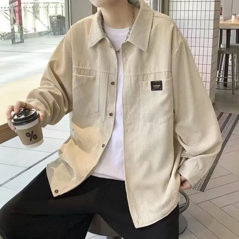 새로운 긴 소매 셔츠 남자의 2024 봄 새로운 느슨한 코듀로이 홍콩 스타일 일본 스타일 셔츠 재킷 코트 남성