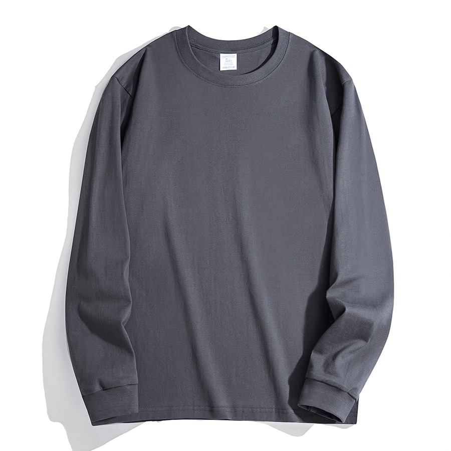 400G 무거운 긴 소매 티셔츠 남자의 봄과 가을 미국 단색 순면 백킹 셔츠 작은 목선 느슨한 흰색 스웨터 여성