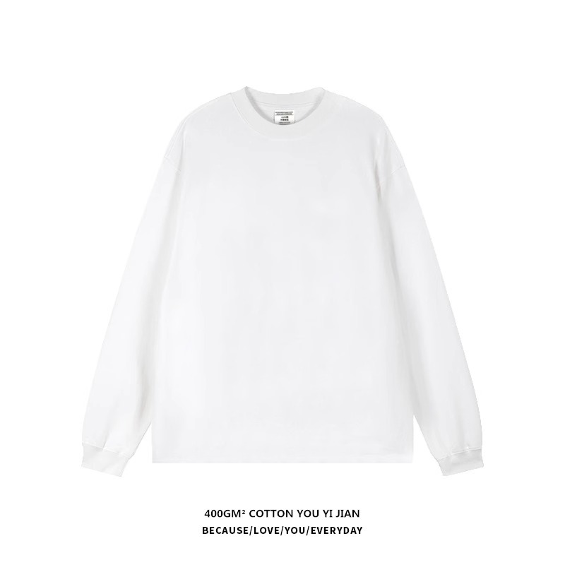 400G 무거운 긴 소매 티셔츠 남자의 봄과 가을 미국 단색 순면 백킹 셔츠 작은 목선 느슨한 흰색 스웨터 여성스토어 가기