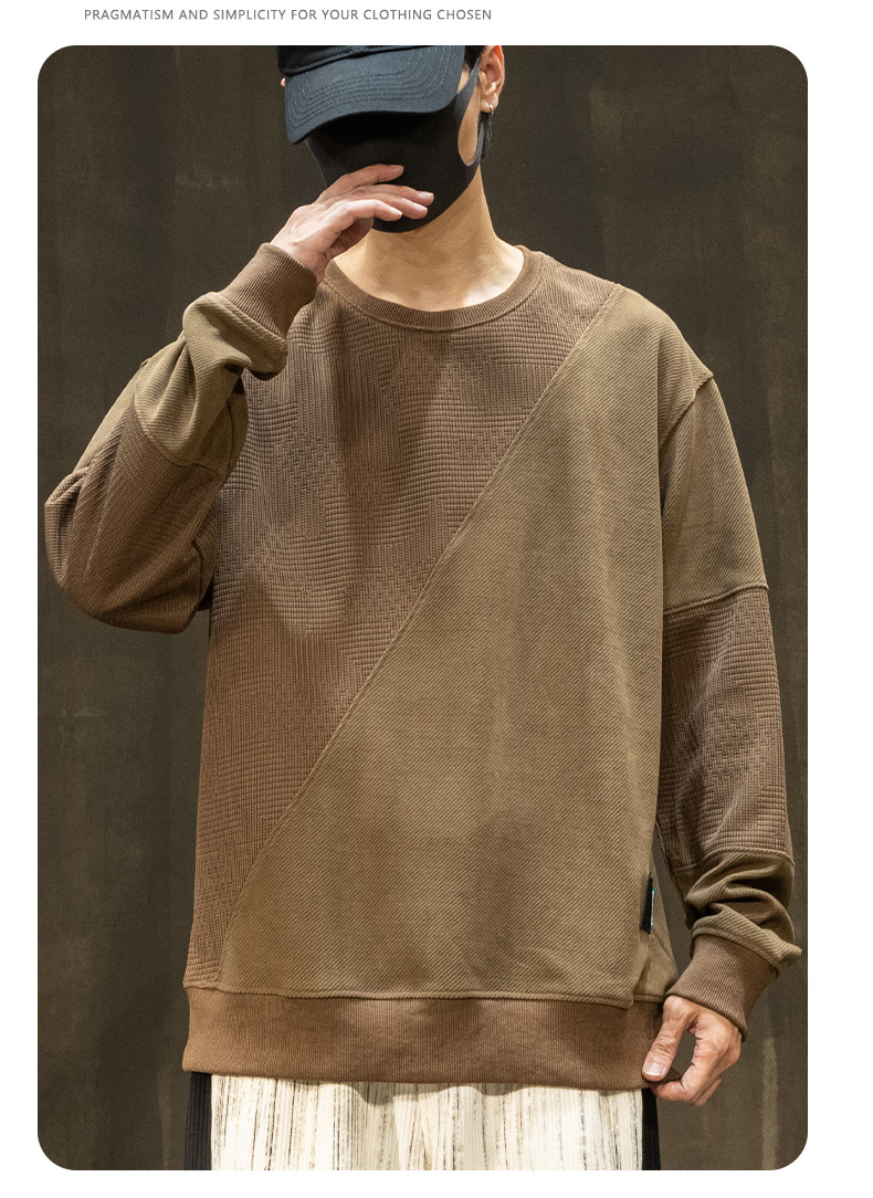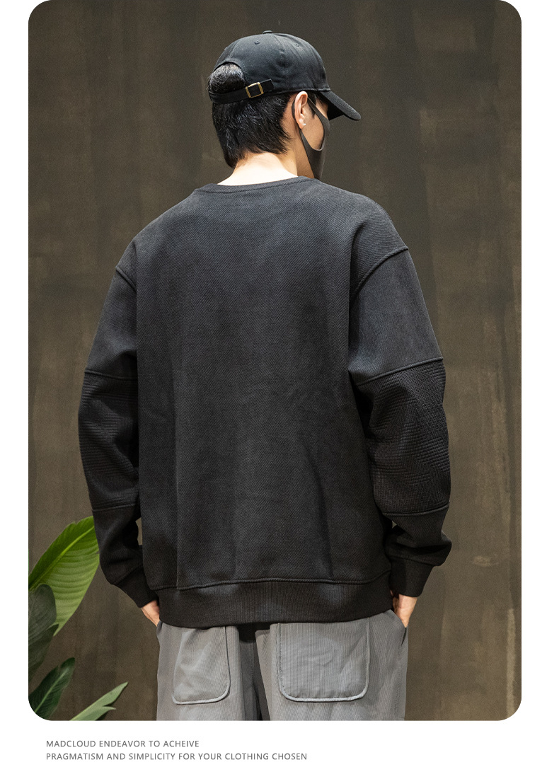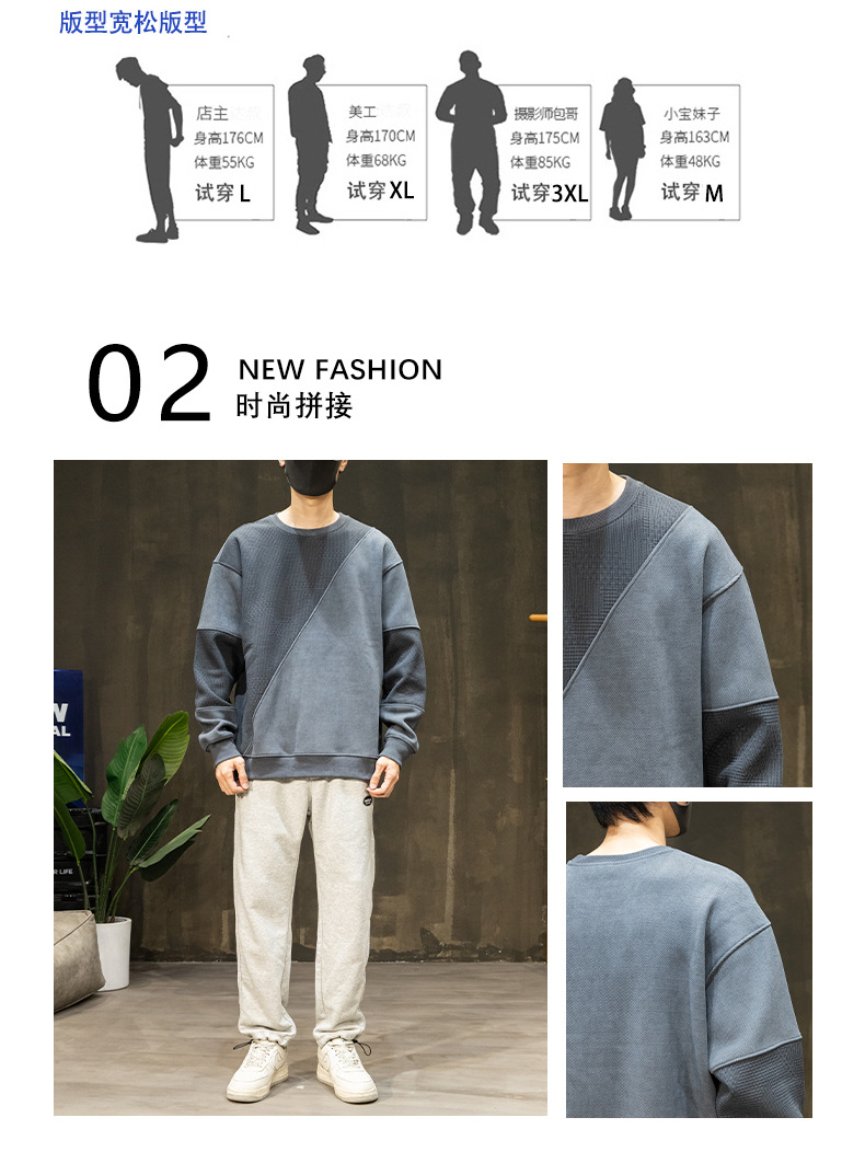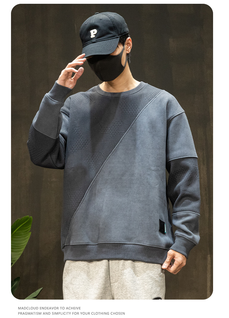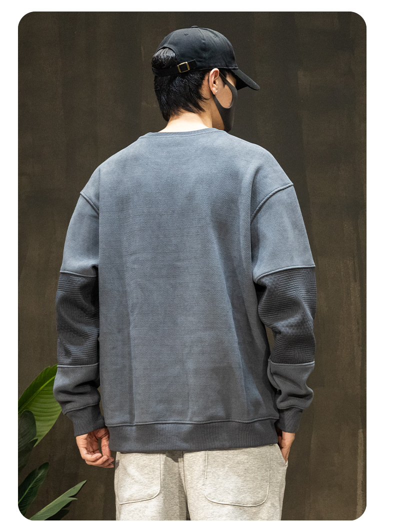 패션 브랜드 기모 스웨터 남성 가을과 겨울 바느질 남자 옷 2024 가을 새로운 남성 긴 소매 플러스 사이즈 남성 의류스토어 가기