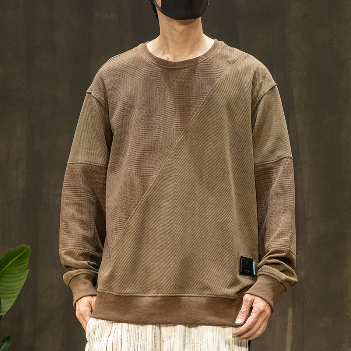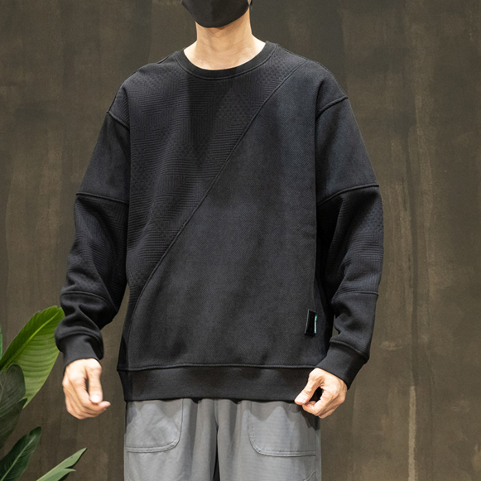 패션 브랜드 기모 스웨터 남성 가을과 겨울 바느질 남자 옷 2024 가을 새로운 남성 긴 소매 플러스 사이즈 남성 의류