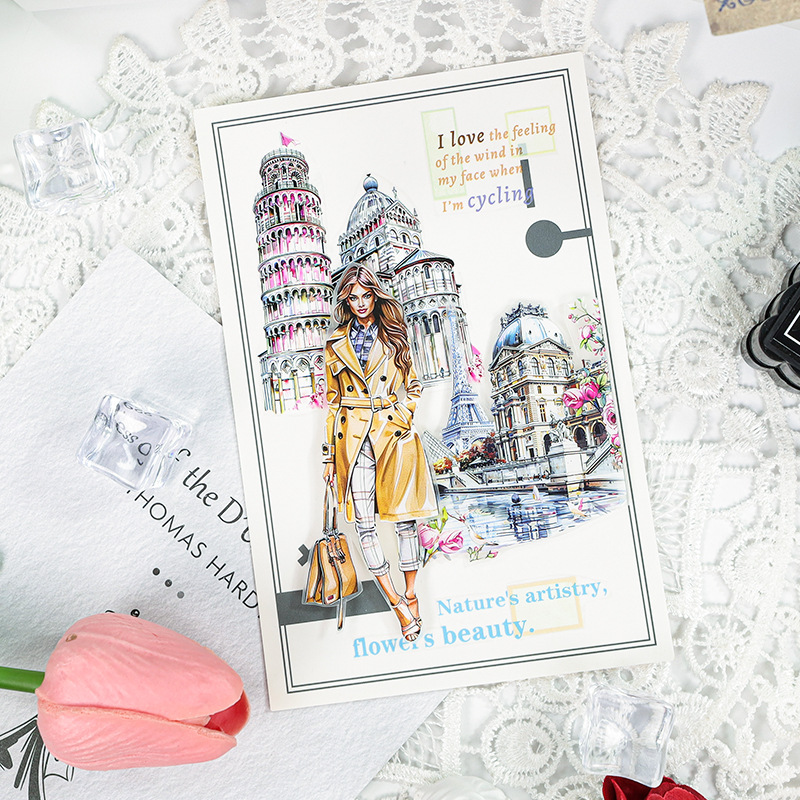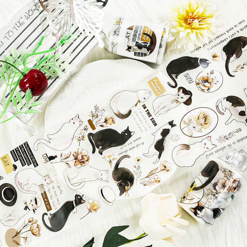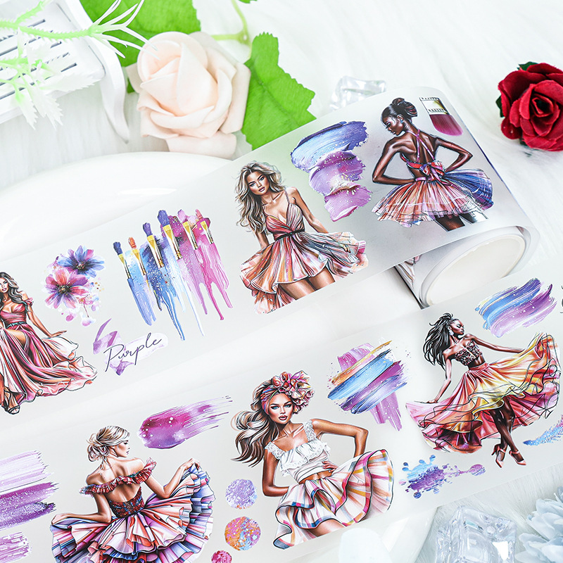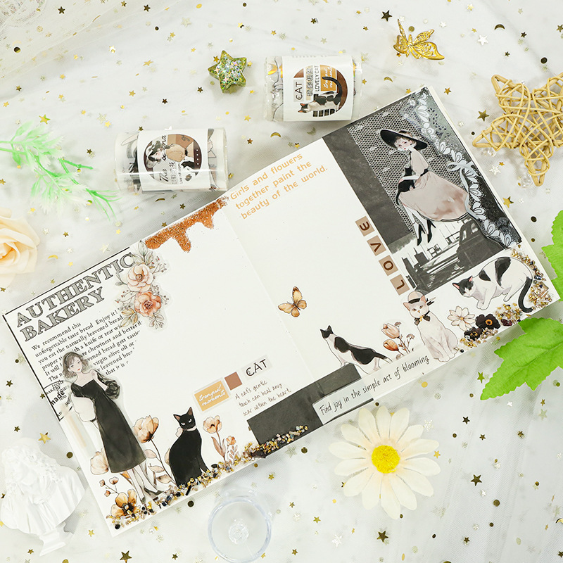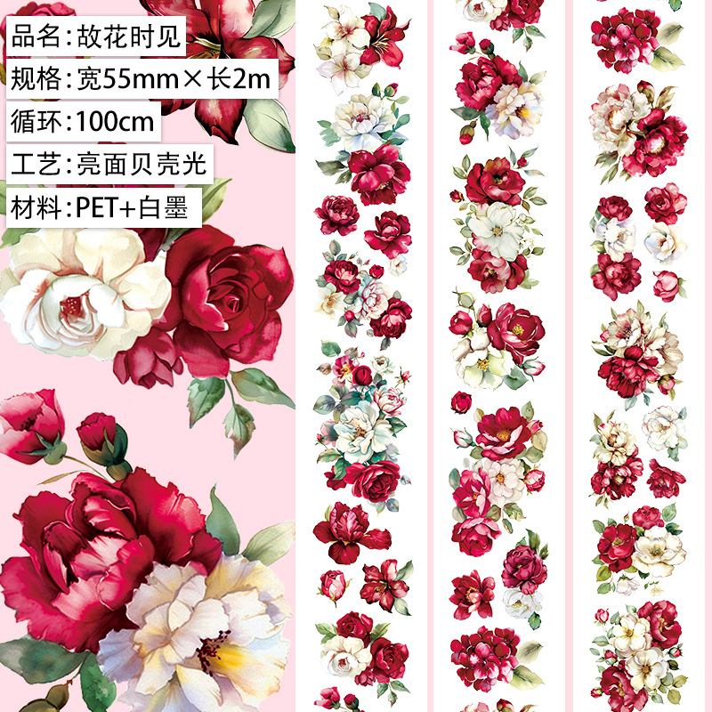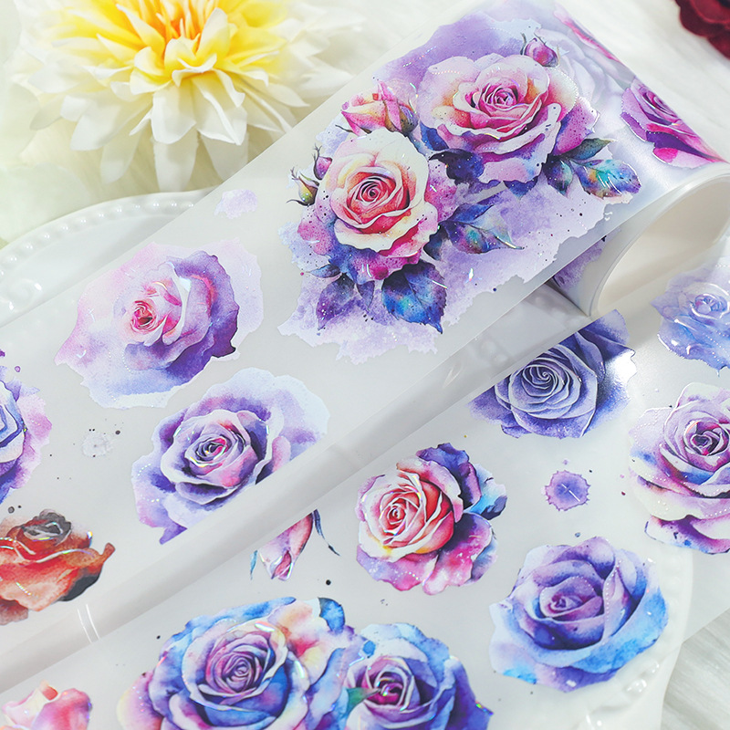 국경 간 새로운 손 계정 테이프 유럽과 미국 및 홍콩 스타일 캐릭터 조판 콜라주 소재 장미 장식 기본 PET 테이프스토어 가기