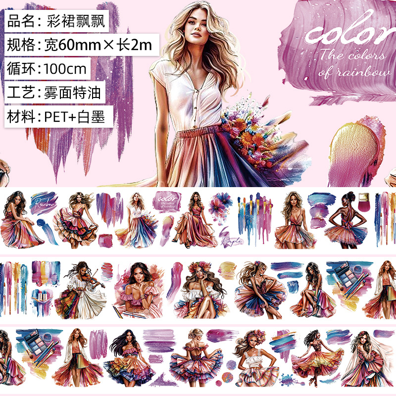 국경 간 새로운 손 계정 테이프 유럽과 미국 및 홍콩 스타일 캐릭터 조판 콜라주 소재 장미 장식 기본 PET 테이프
