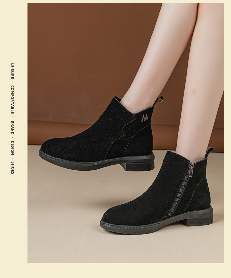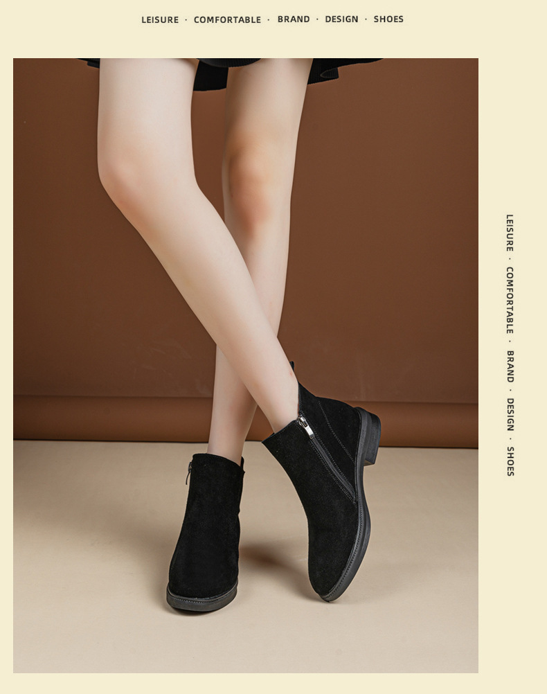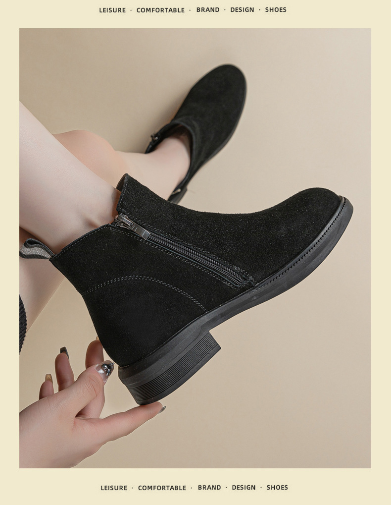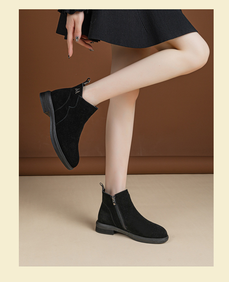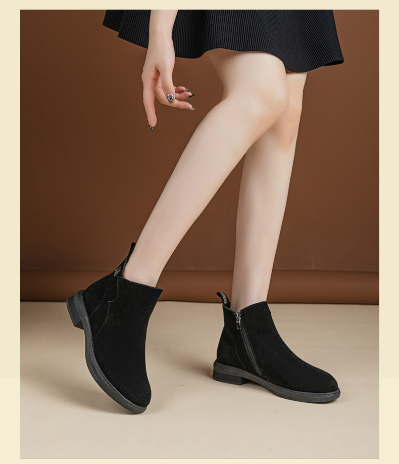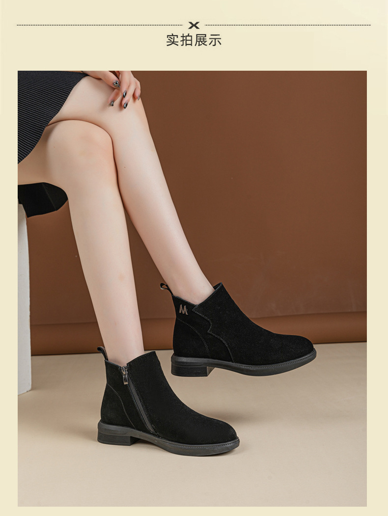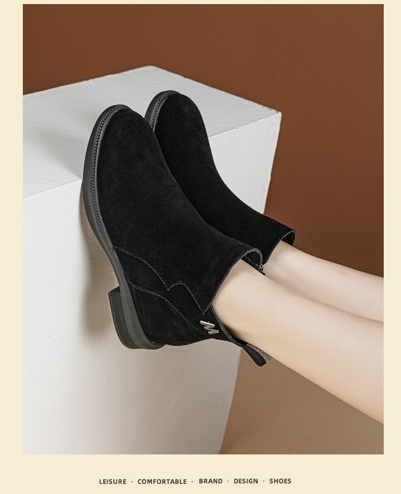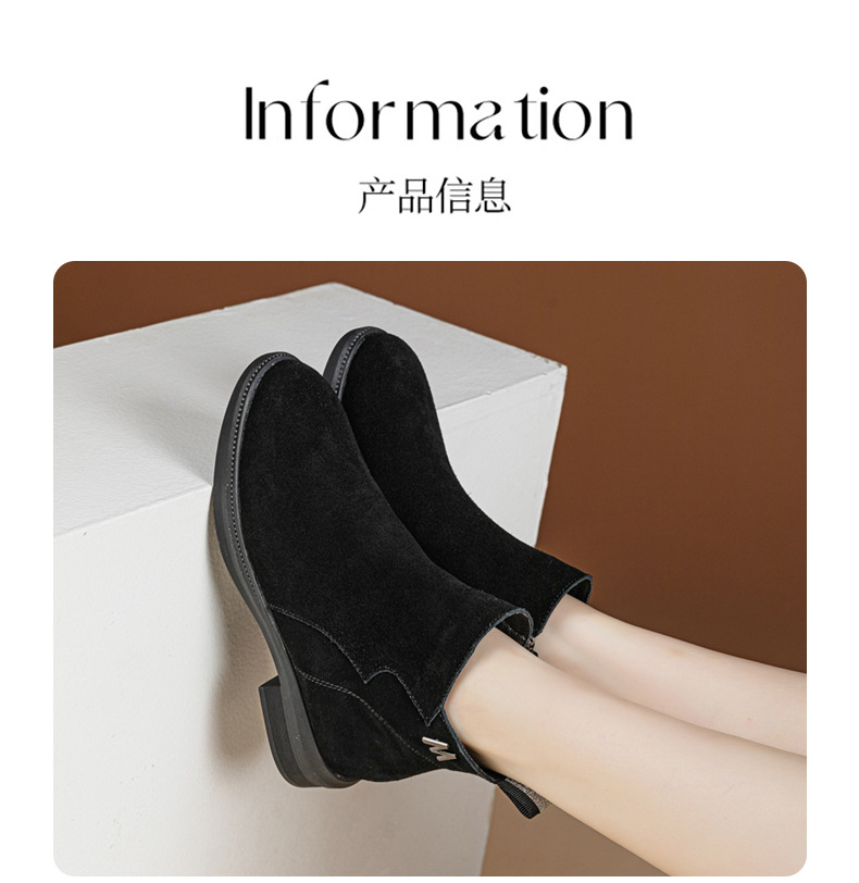 2025 가을 겨울 신상품 퍼스트 레이어 누벅 가죽 숏부츠 여성 플랫 굽 첼시 부츠 플러스 사이즈 여성 신발스토어 가기