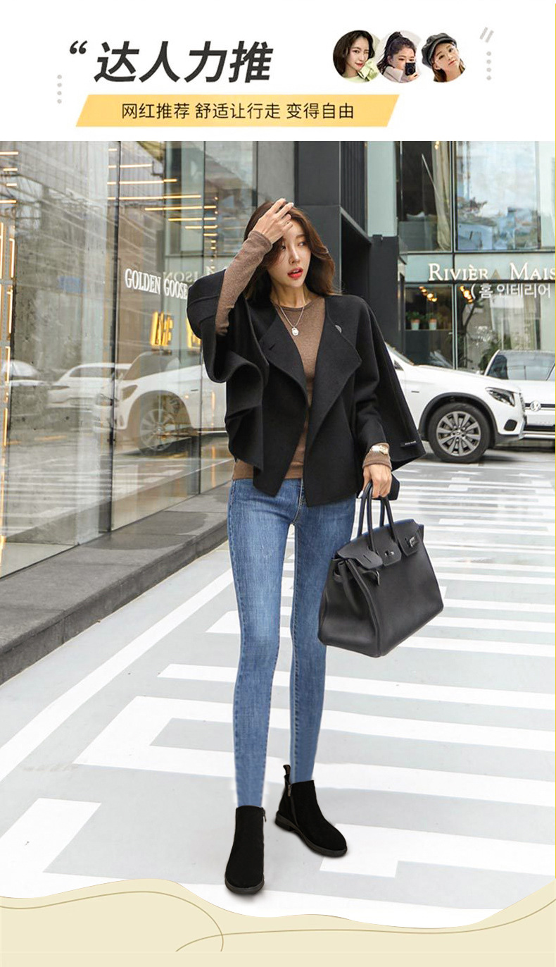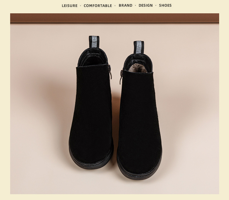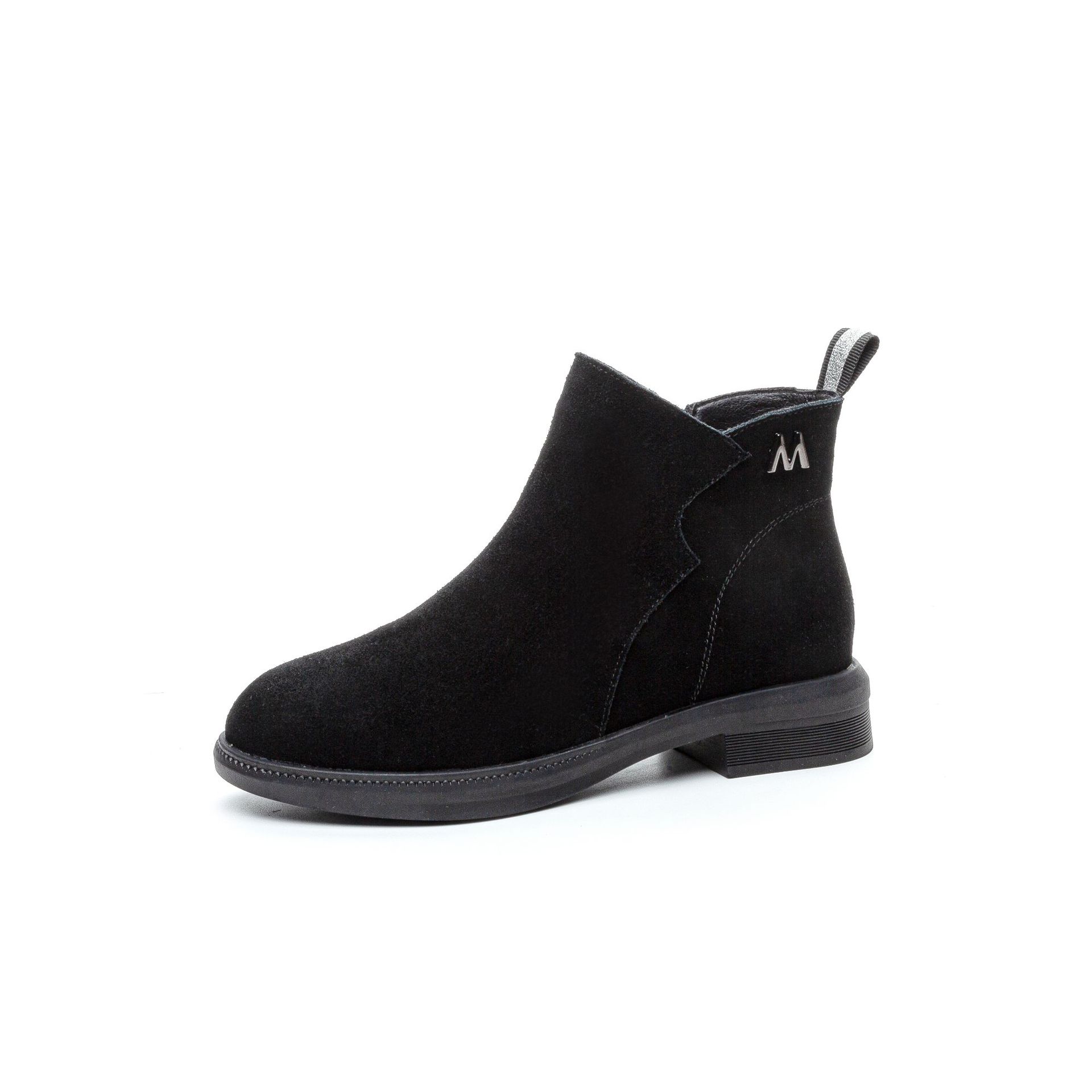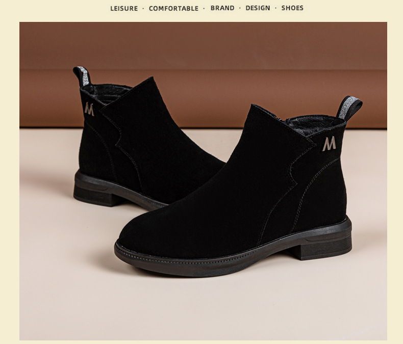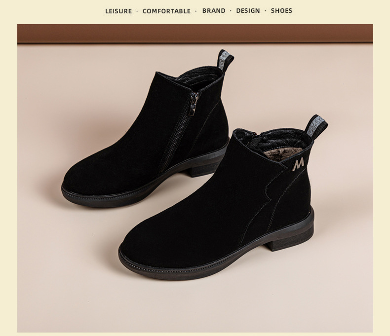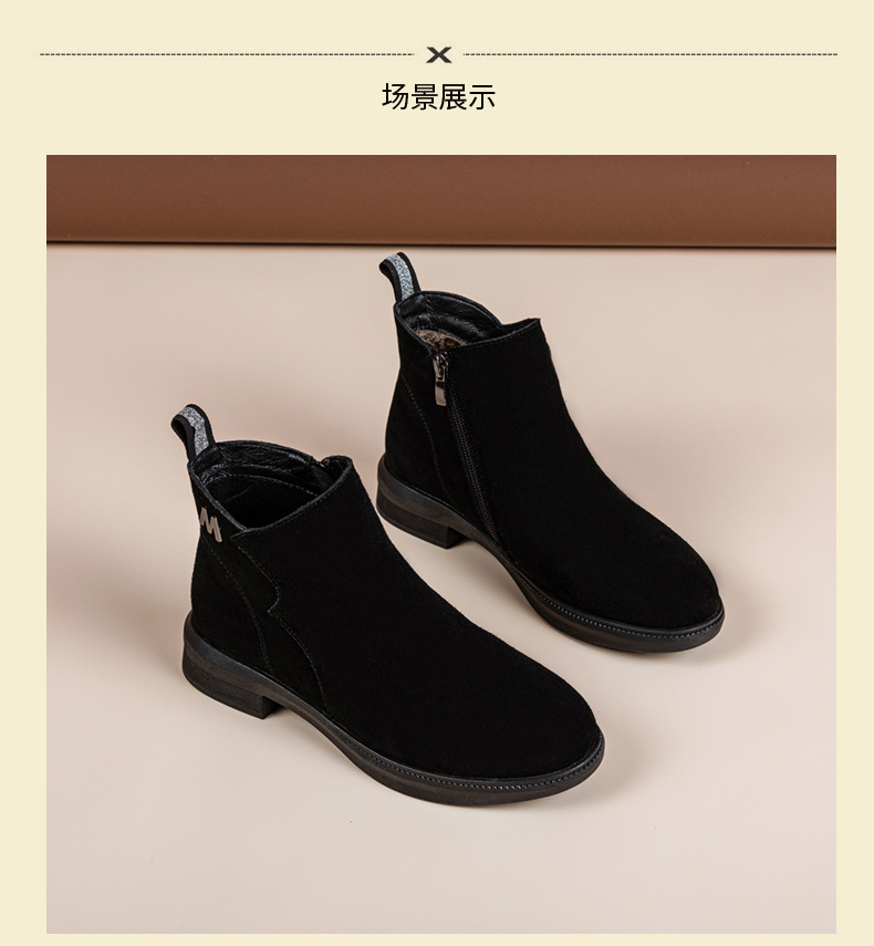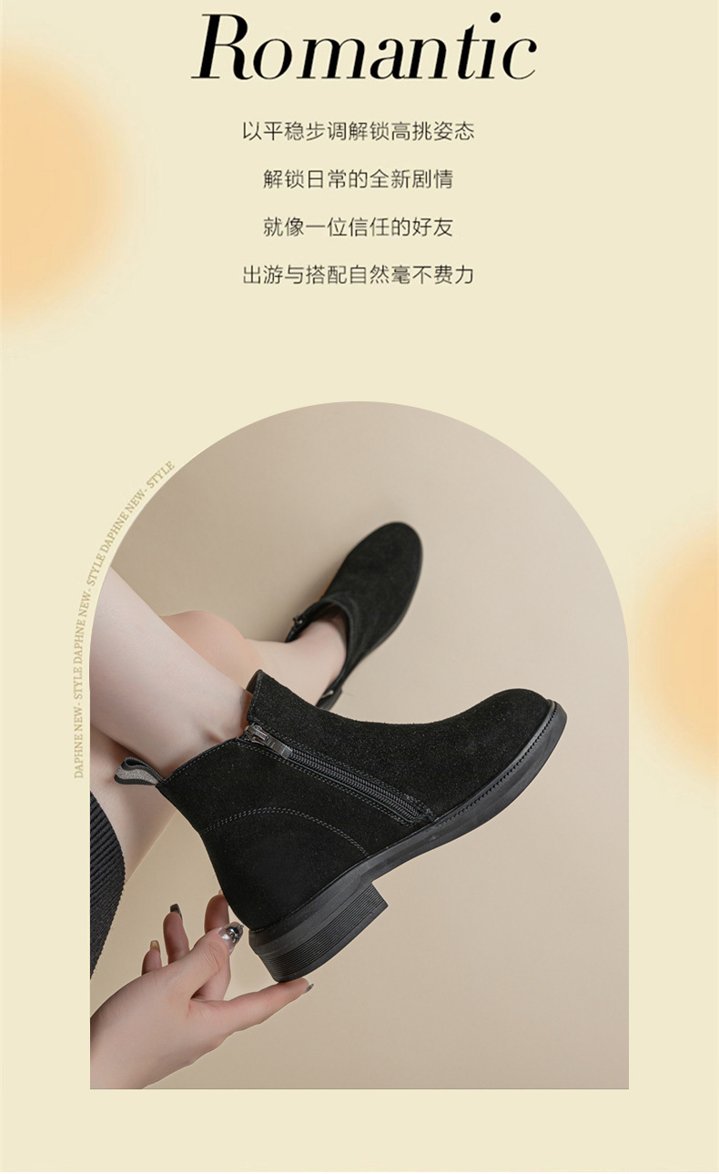 2025 가을 겨울 신상품 퍼스트 레이어 누벅 가죽 숏부츠 여성 플랫 굽 첼시 부츠 플러스 사이즈 여성 신발스토어 가기