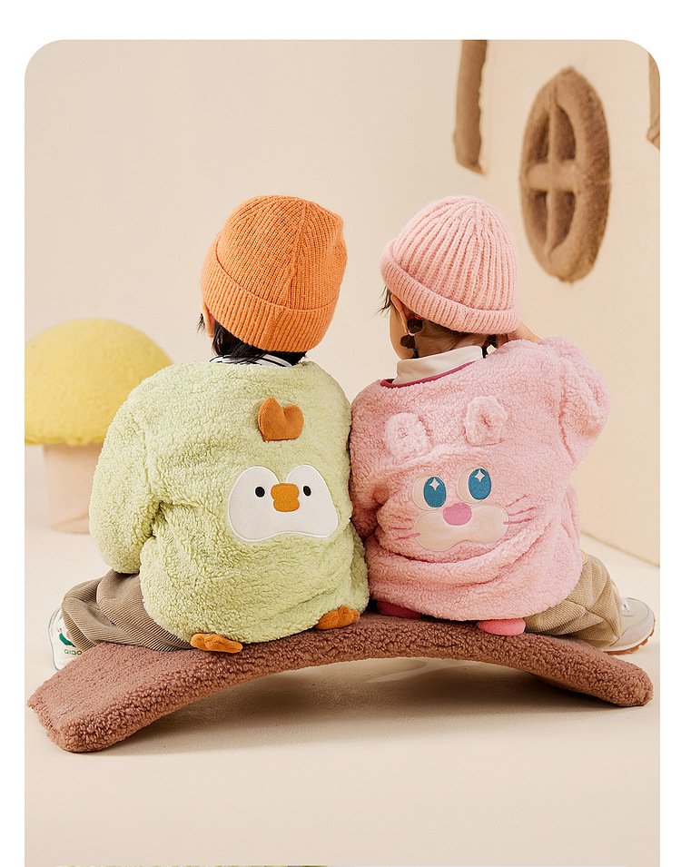 두두 아기 코트 가을과 겨울 기모 어린이 카디건 겨울 만화 소년 코트 소녀 옷 어린이 의류 패션