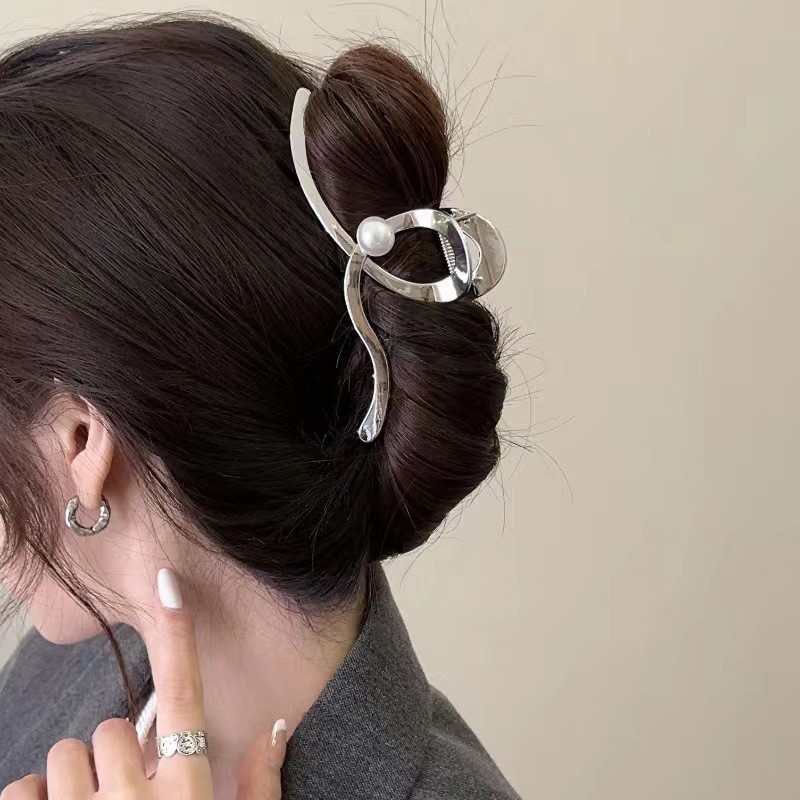 한국식 웨이브 펄 그랩 클립 여성 콜드 바람 뒤 머리 머리 상어 개성 우아한 올매치 헤드웨어 헤어 액세서리스토어 가기
