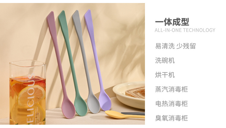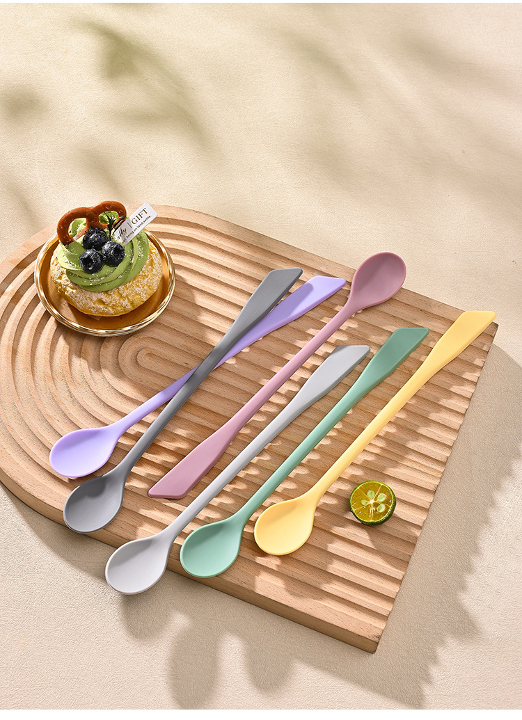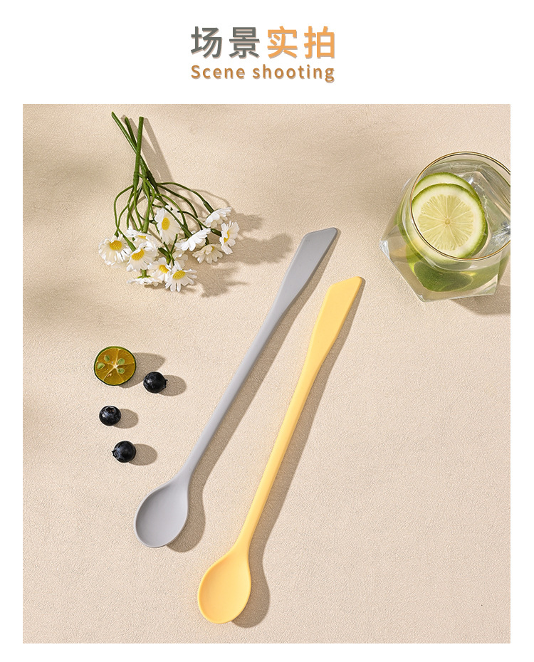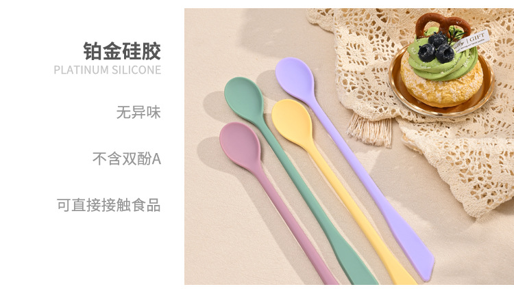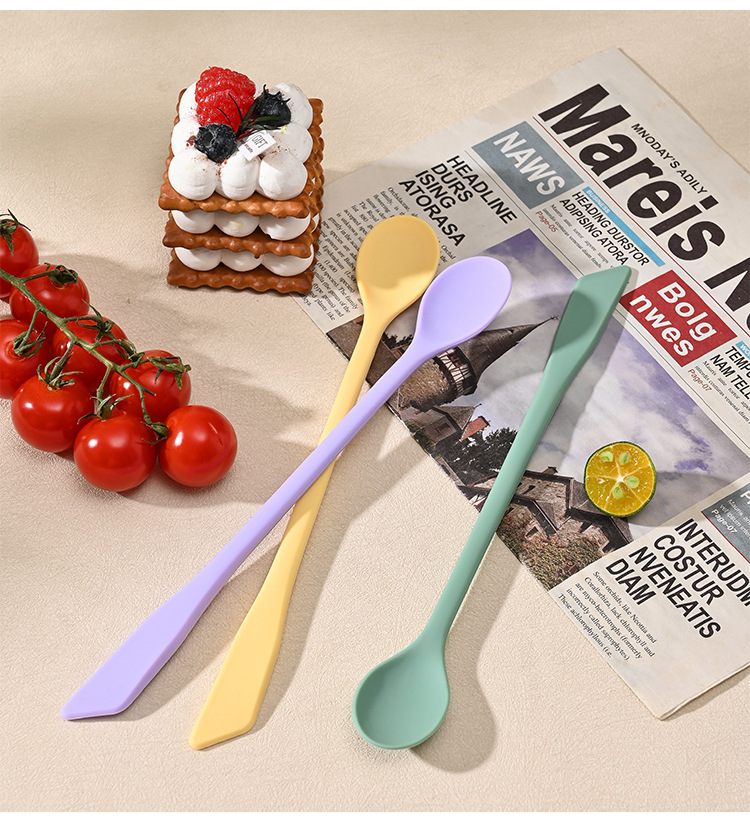 가정용 식품 등급 실리콘 혼합 스푼 꿀 잼 더블 헤드 커피 스푼 조미료 긴 손잡이 스푼 디저트 스푼