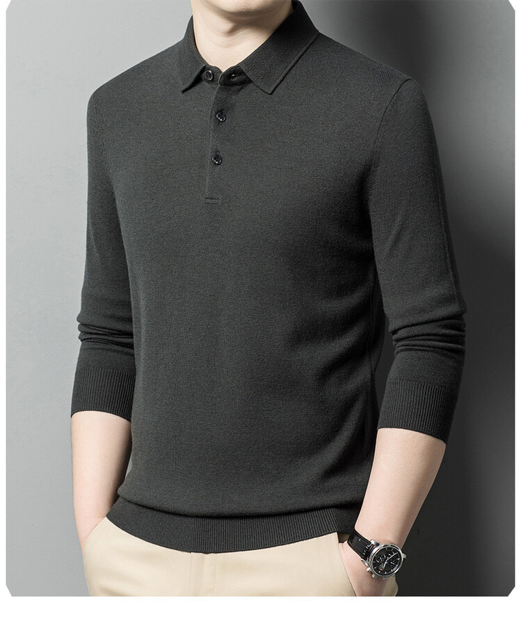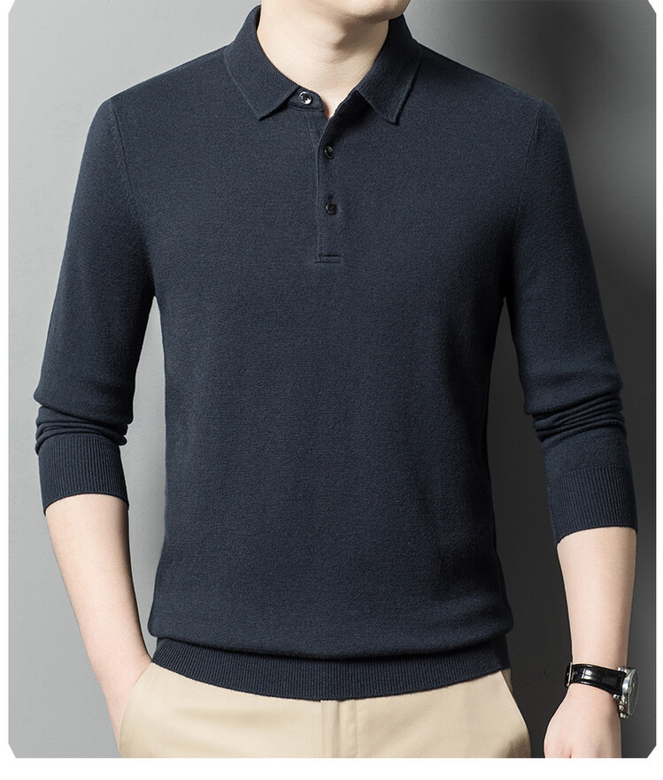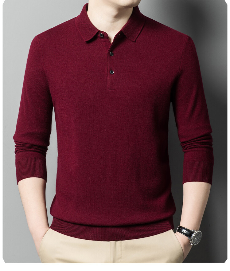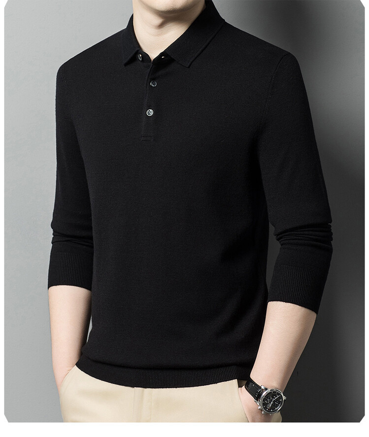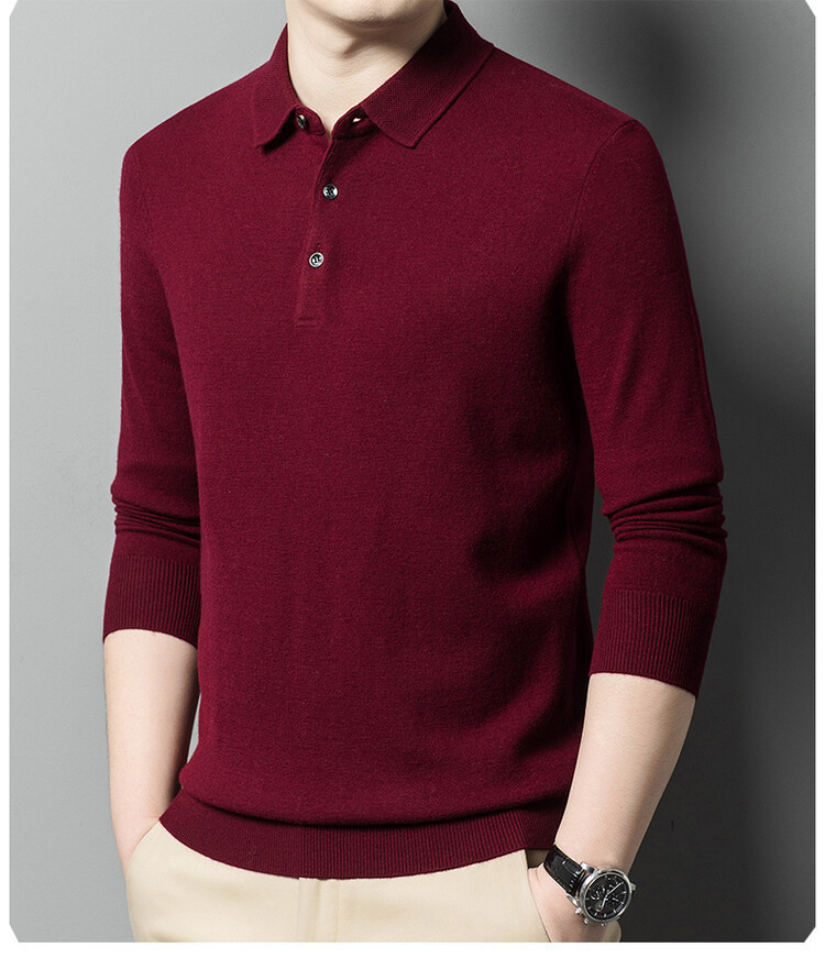 하이 엔드 가을과 겨울 새로운 100 울 스웨터 남자 옷깃 긴 소매 중년 아빠 두꺼운 티셔츠 베이스 니트웨어