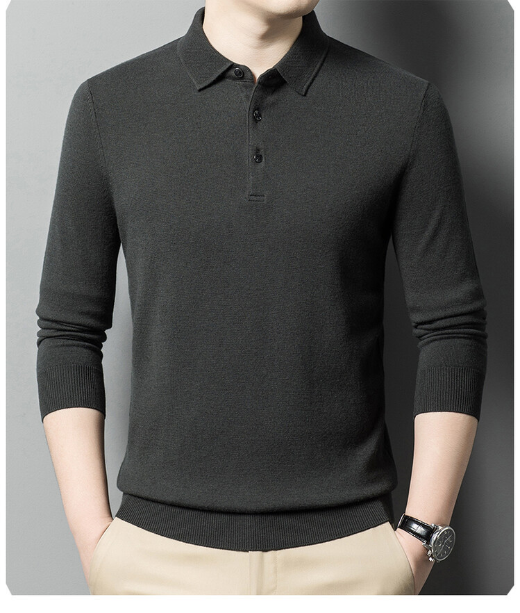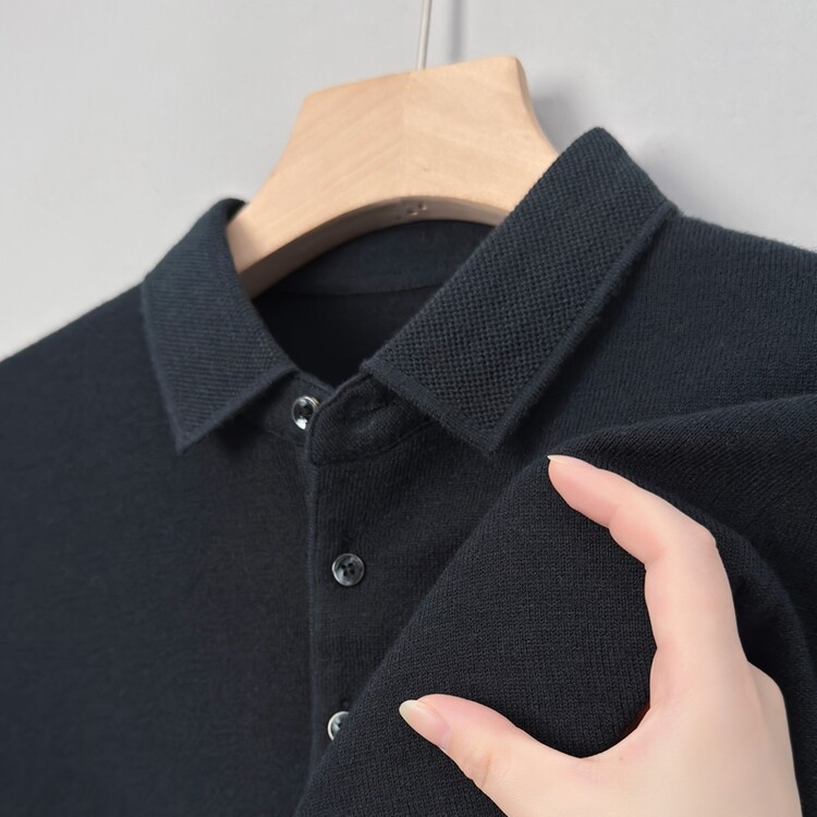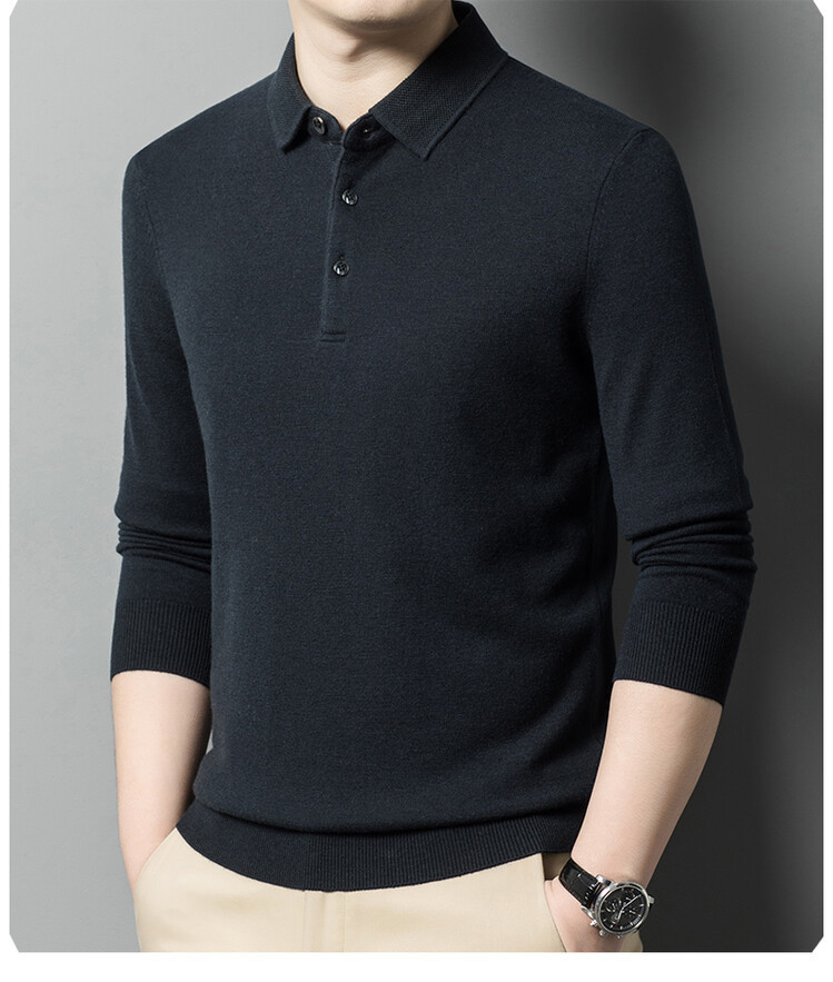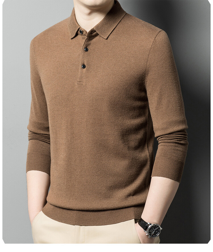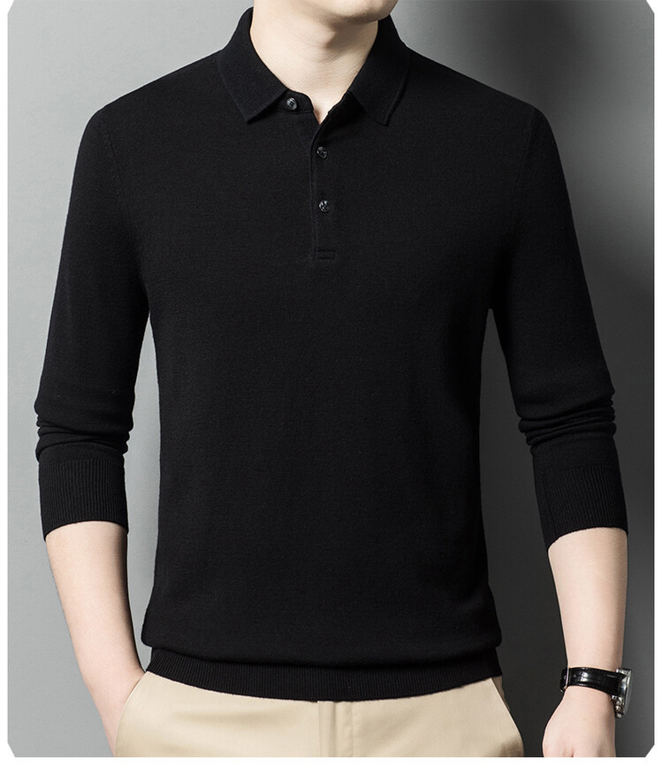 하이 엔드 가을과 겨울 새로운 100 울 스웨터 남자 옷깃 긴 소매 중년 아빠 두꺼운 티셔츠 베이스 니트웨어