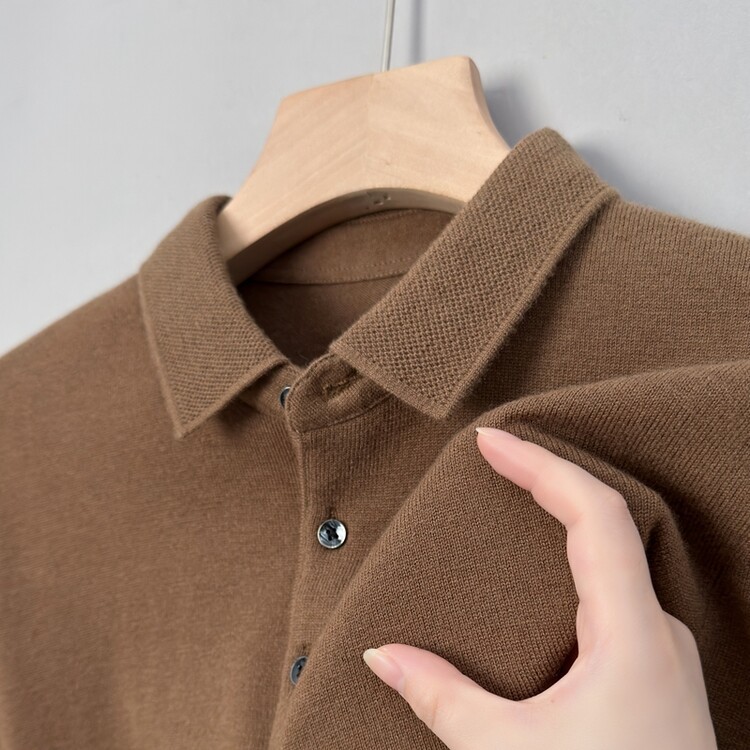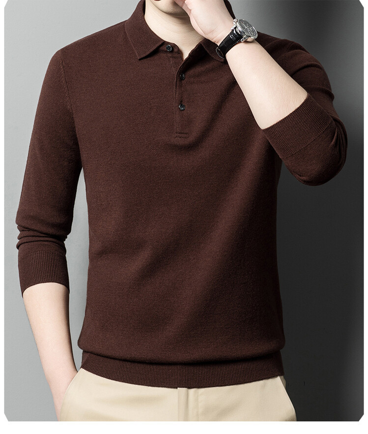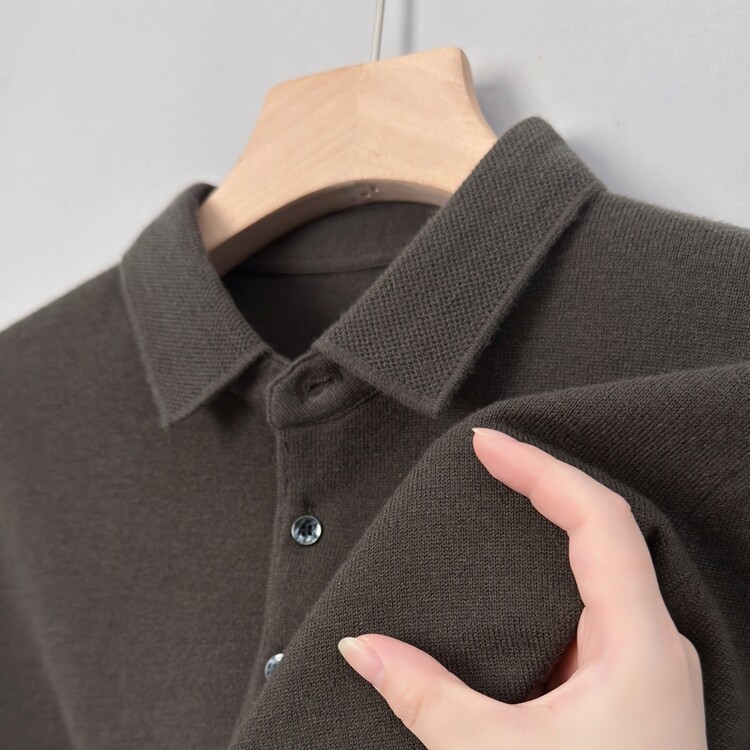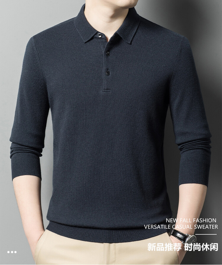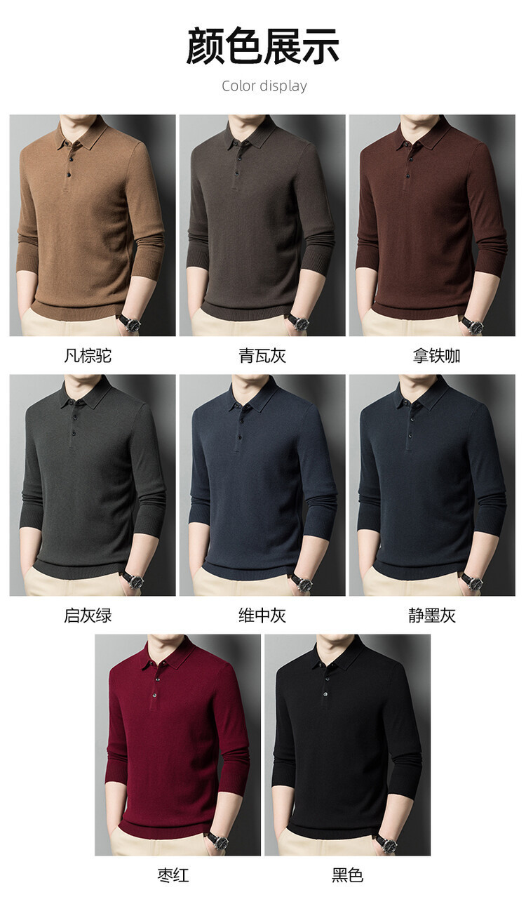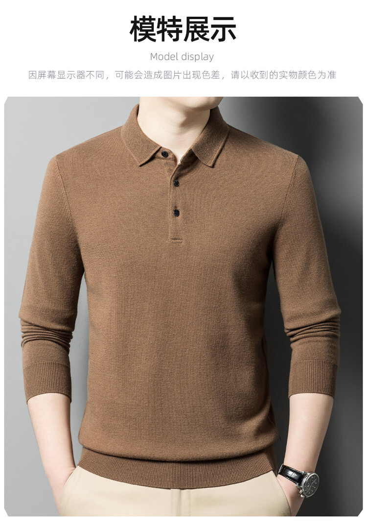 하이 엔드 가을과 겨울 새로운 100 울 스웨터 남자 옷깃 긴 소매 중년 아빠 두꺼운 티셔츠 베이스 니트웨어스토어 가기