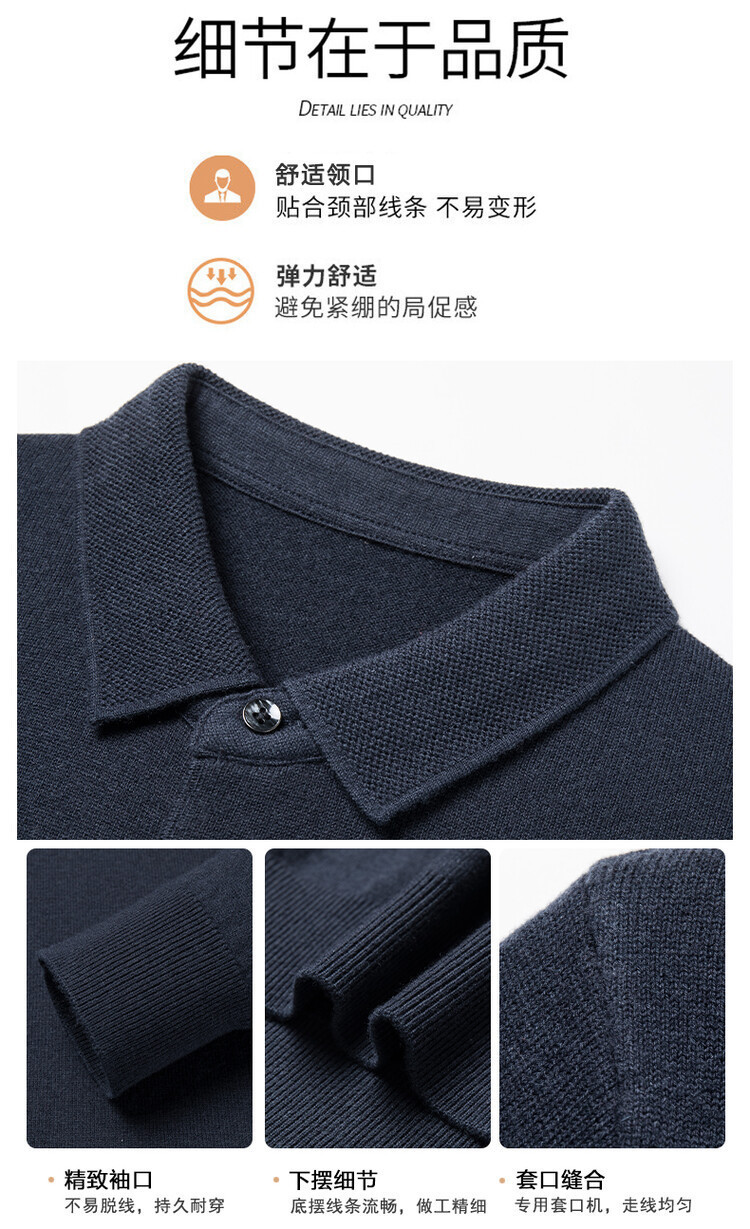 高端秋冬新款100%羊毛衫男士翻领长袖中年爸爸加厚T恤打底针织衫