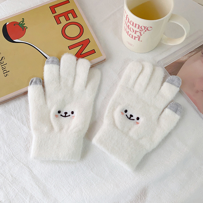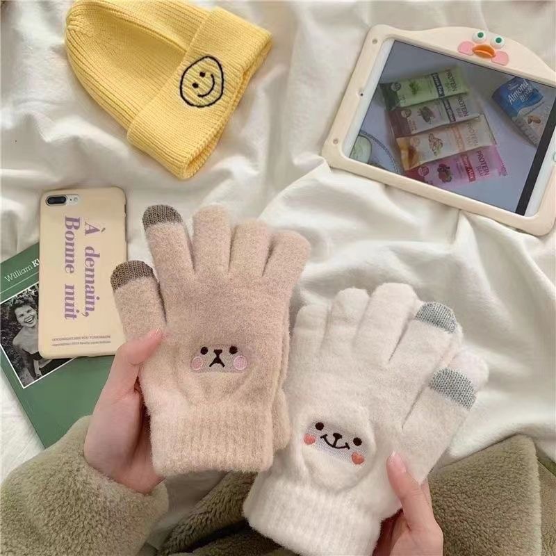 자수 장갑 여성 귀여운 만화 웃는 곰 가을과 겨울 따뜻한 차가운 남성과 여성의 니트 장갑 도매스토어 가기