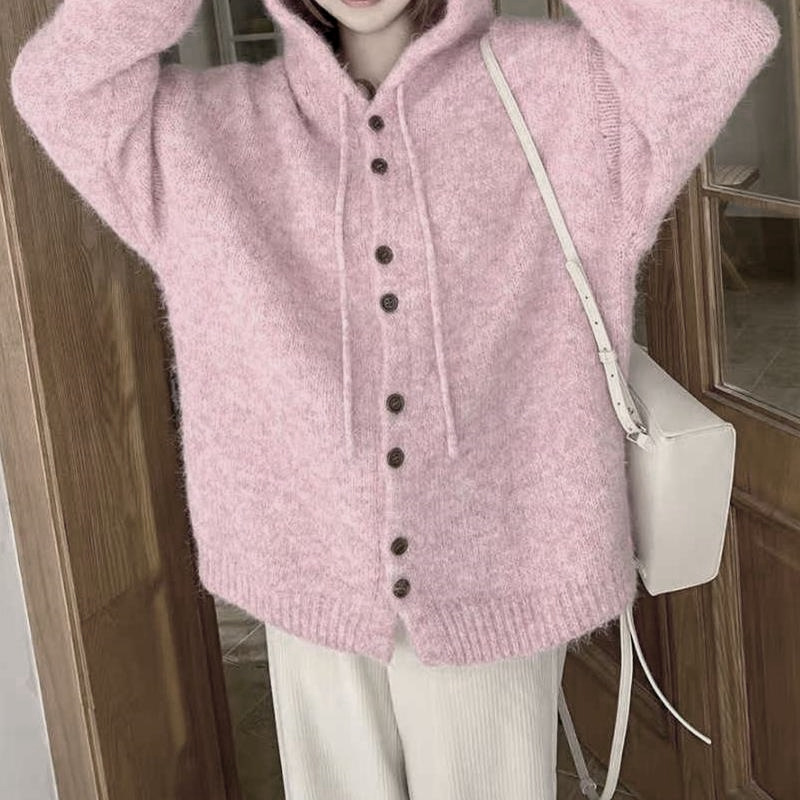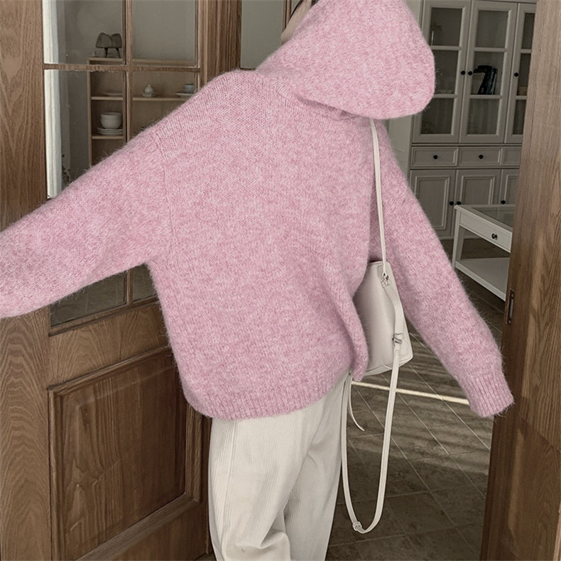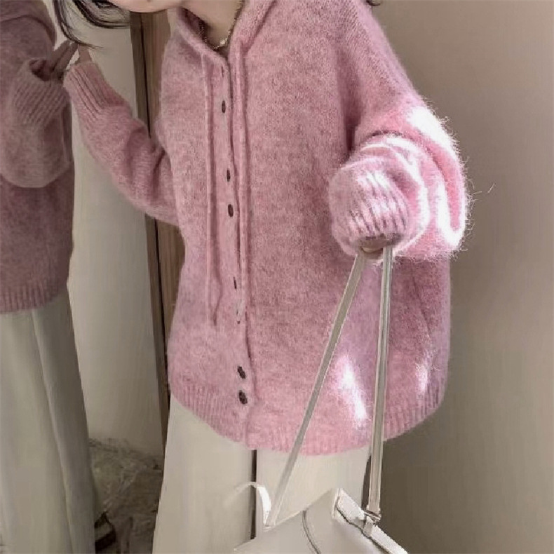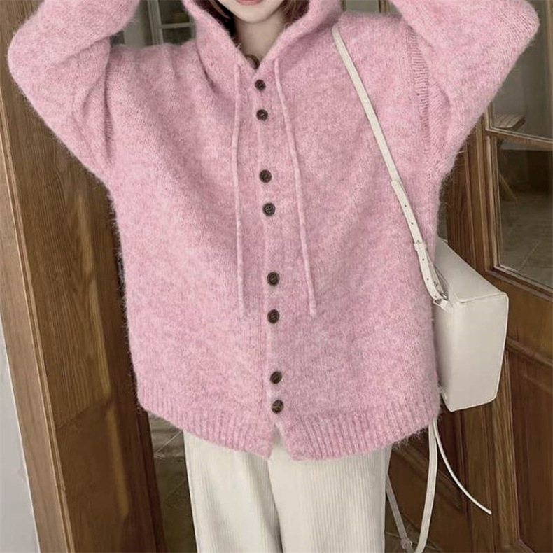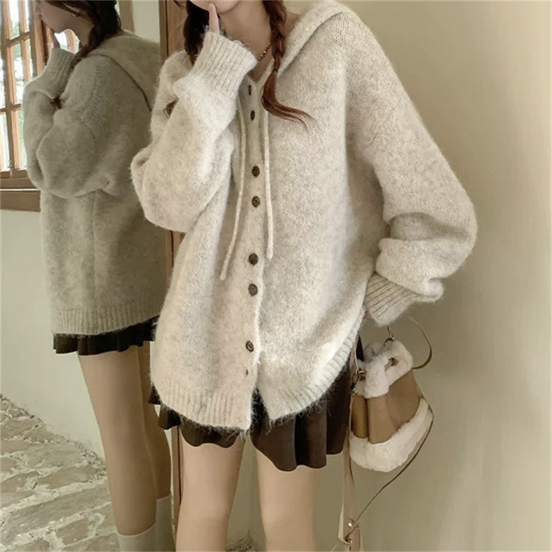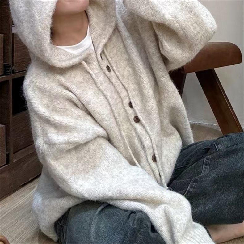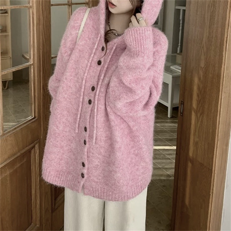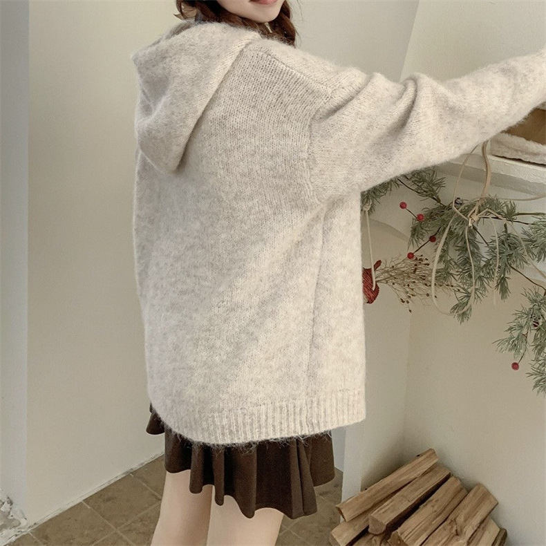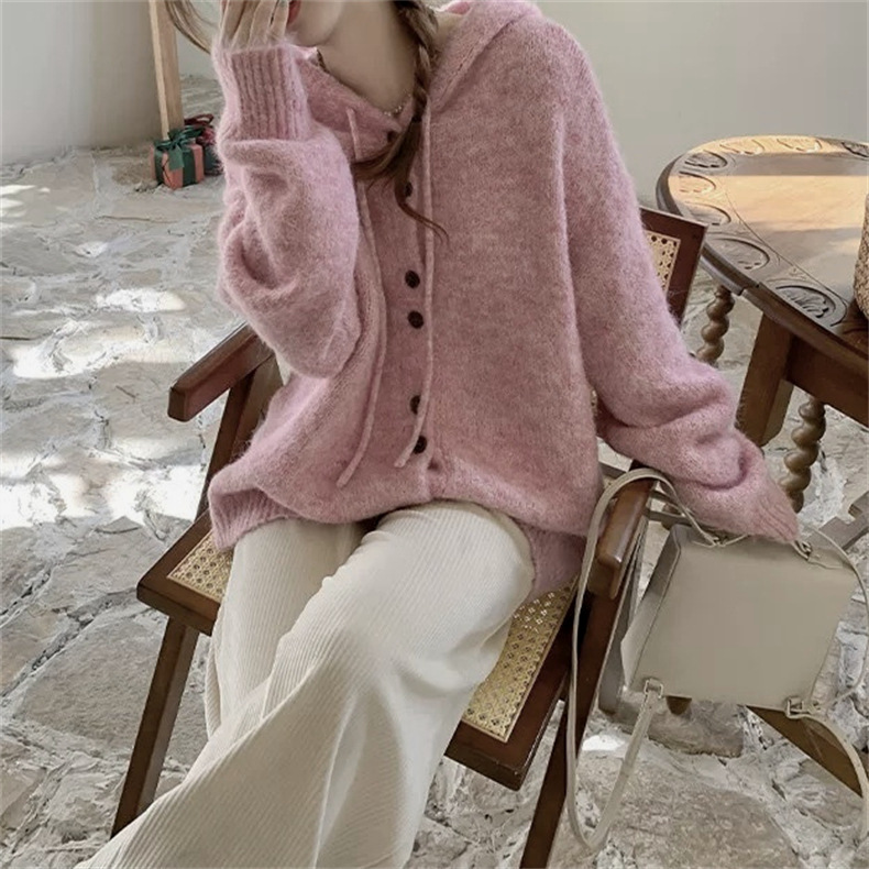 시 라임 가을과 겨울 새로운 느슨한 게으른 올 매치 스웨터 재킷 부드러운 왁스 솔리드 컬러 후드 니트 카디건