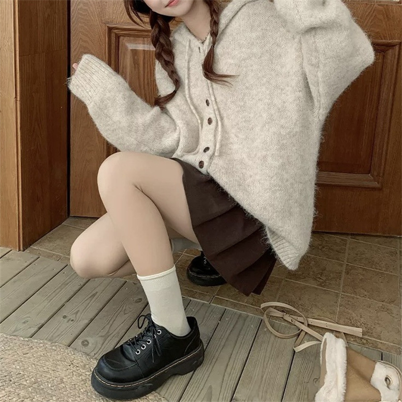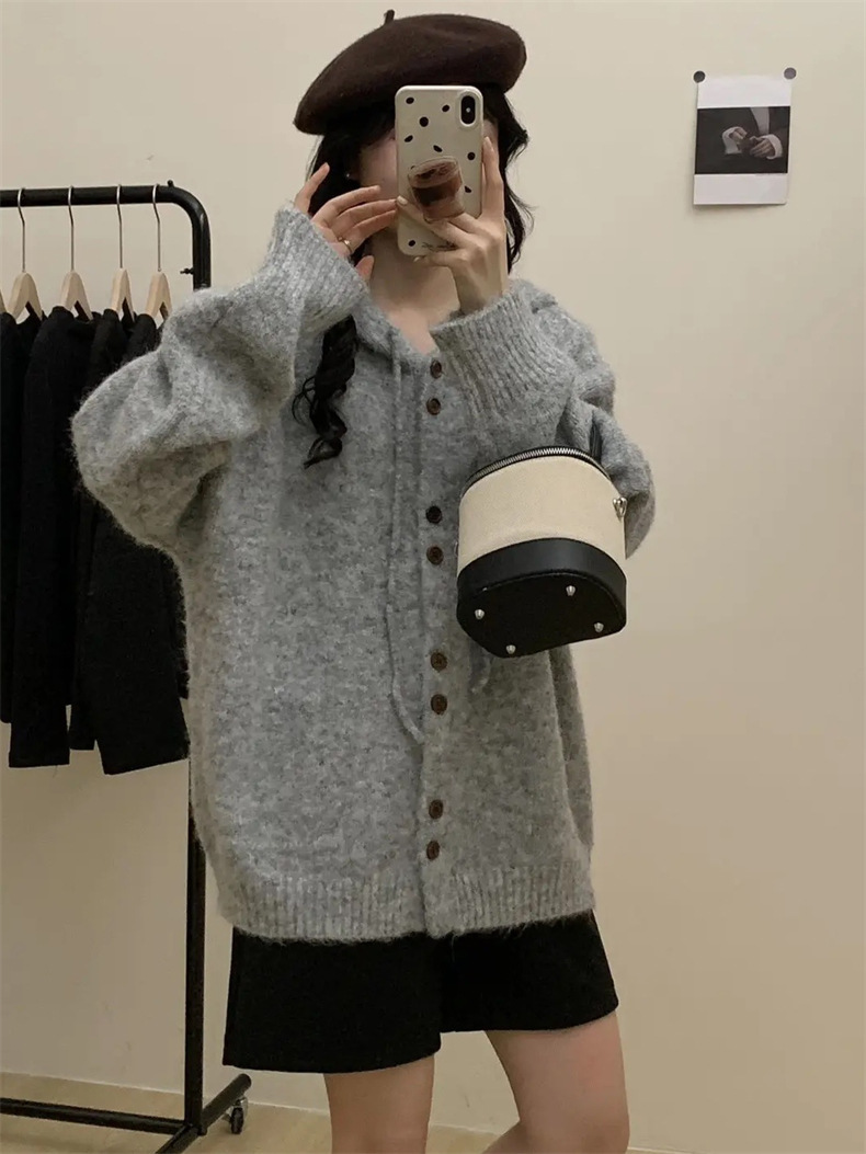 시 라임 가을과 겨울 새로운 느슨한 게으른 올 매치 스웨터 재킷 부드러운 왁스 솔리드 컬러 후드 니트 카디건스토어 가기