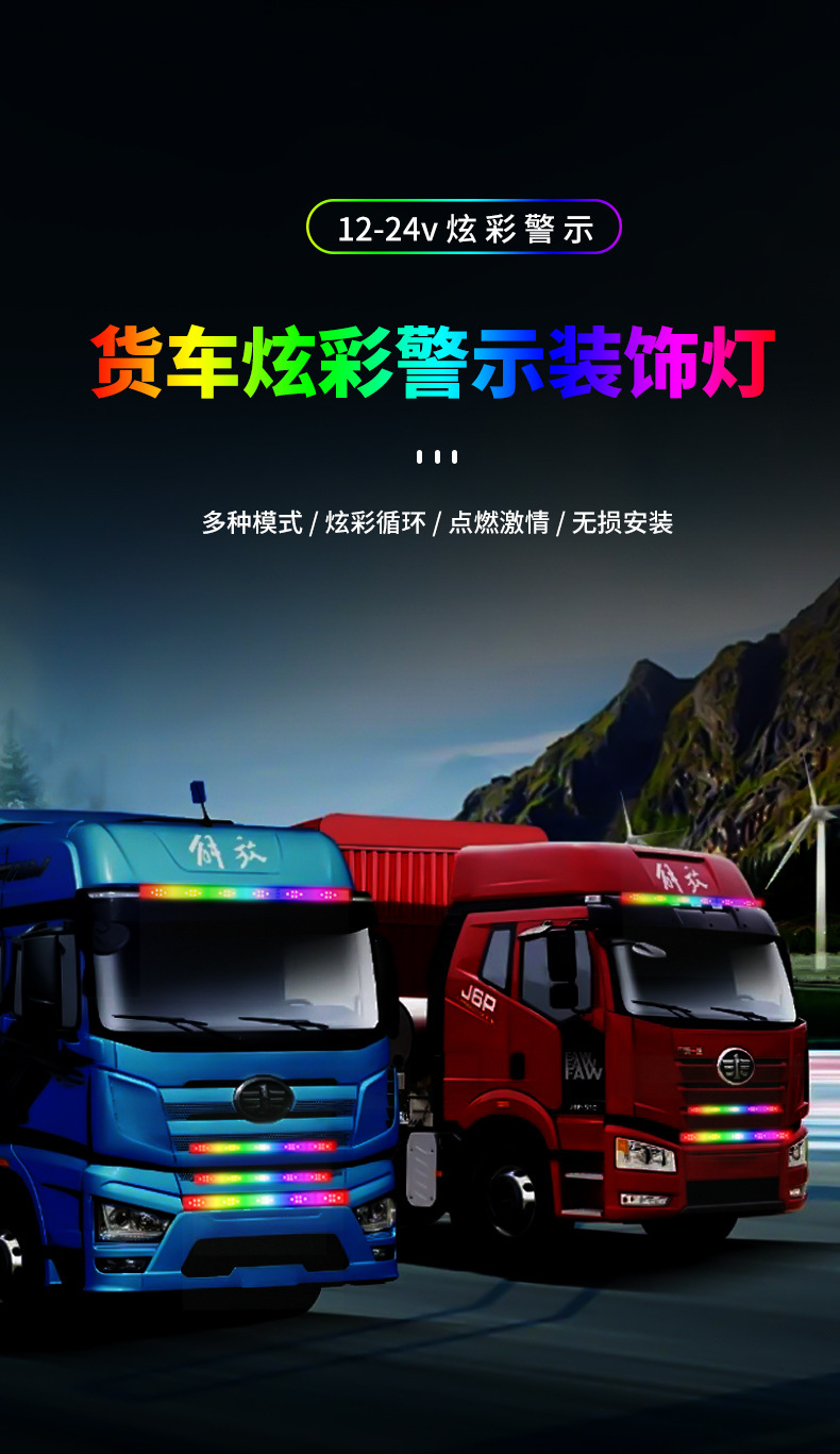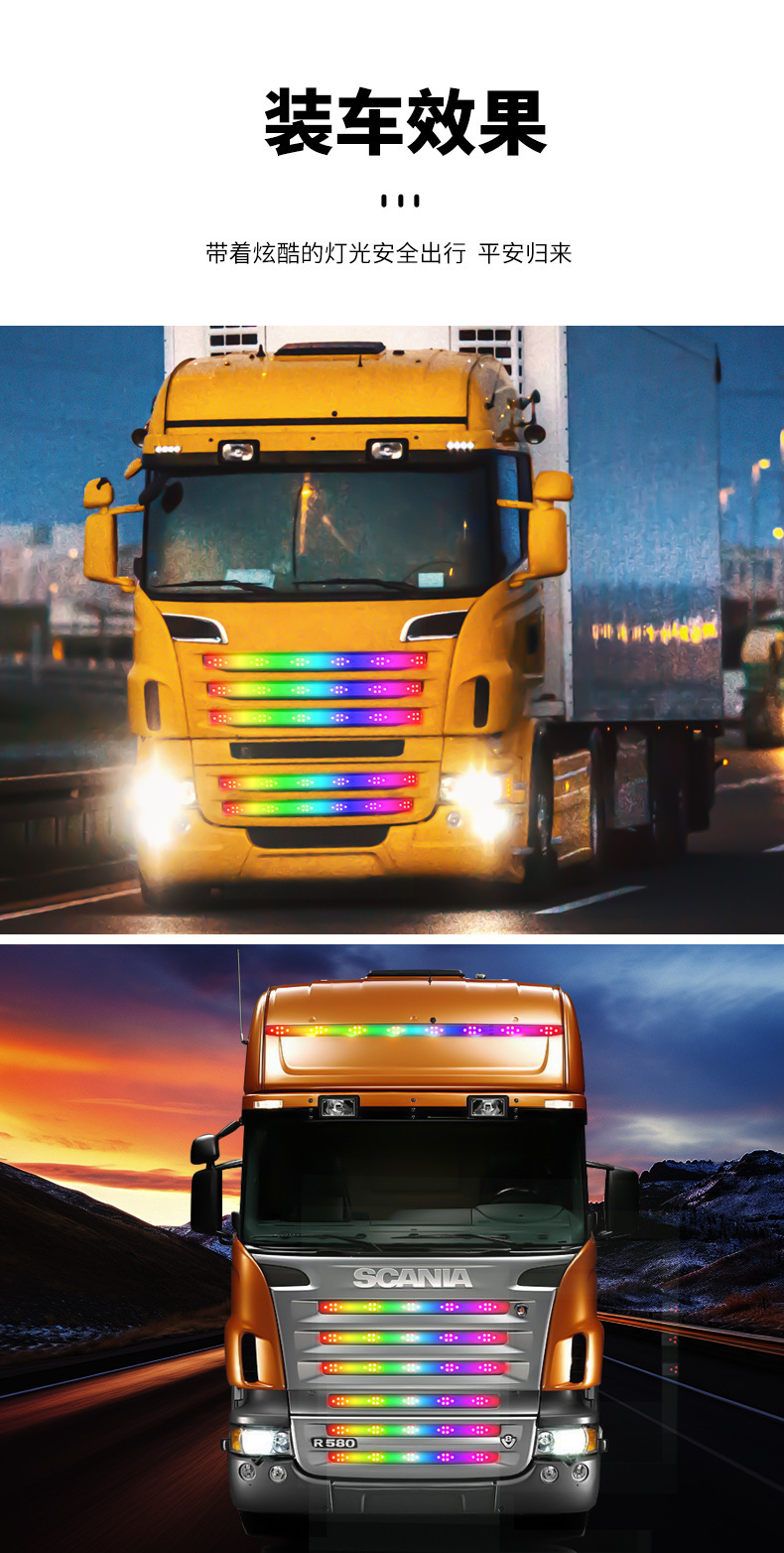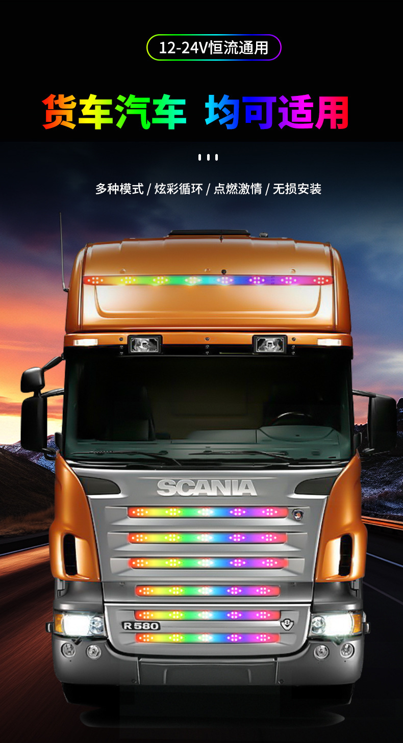 대형 트럭 트럭 트랙터 12-24V GM 매직 컬러 경마 레인저 스트리머 라이트가 장식 투명 라이트 바로 변경되었습니다.스토어 가기