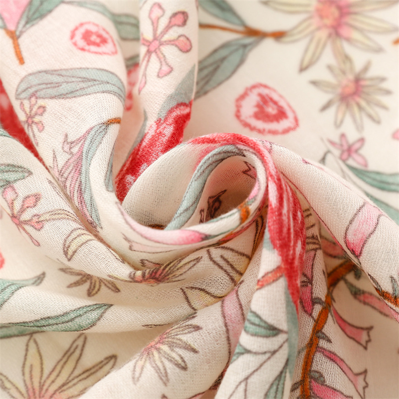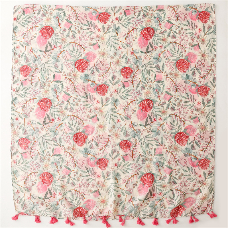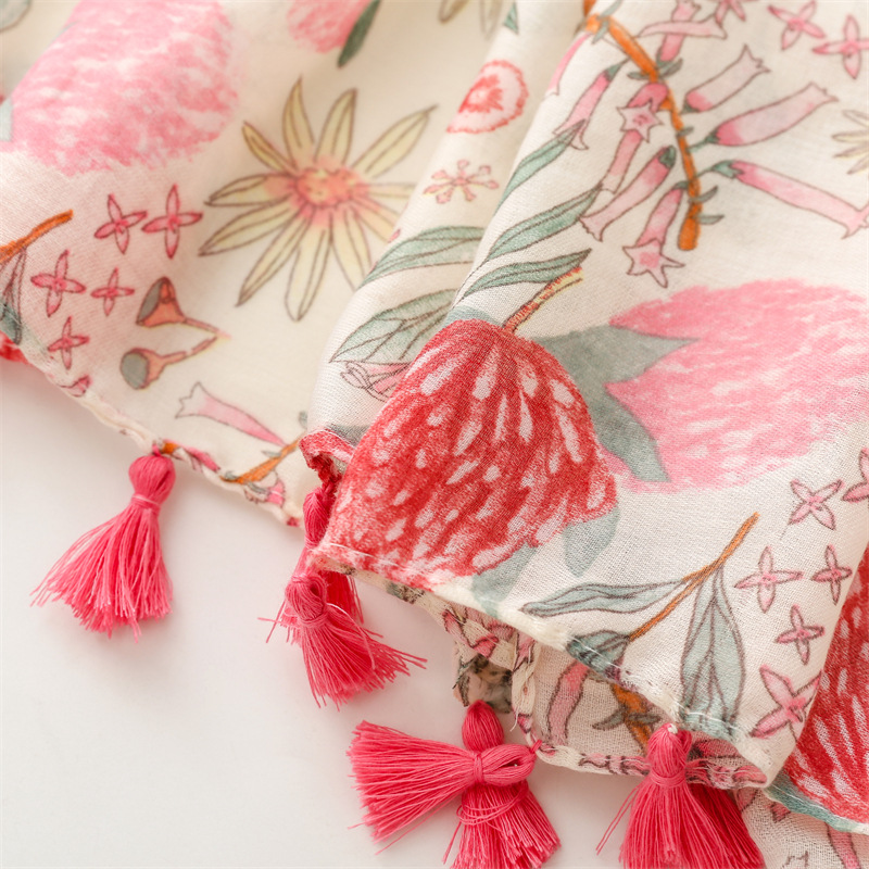 유럽과 미국은 프랑스면 및 린넨 손 스카프 작은 신선한 핑크 식물 꽃 술 스카프 따뜻한 목도리 여성을 수출합니다.