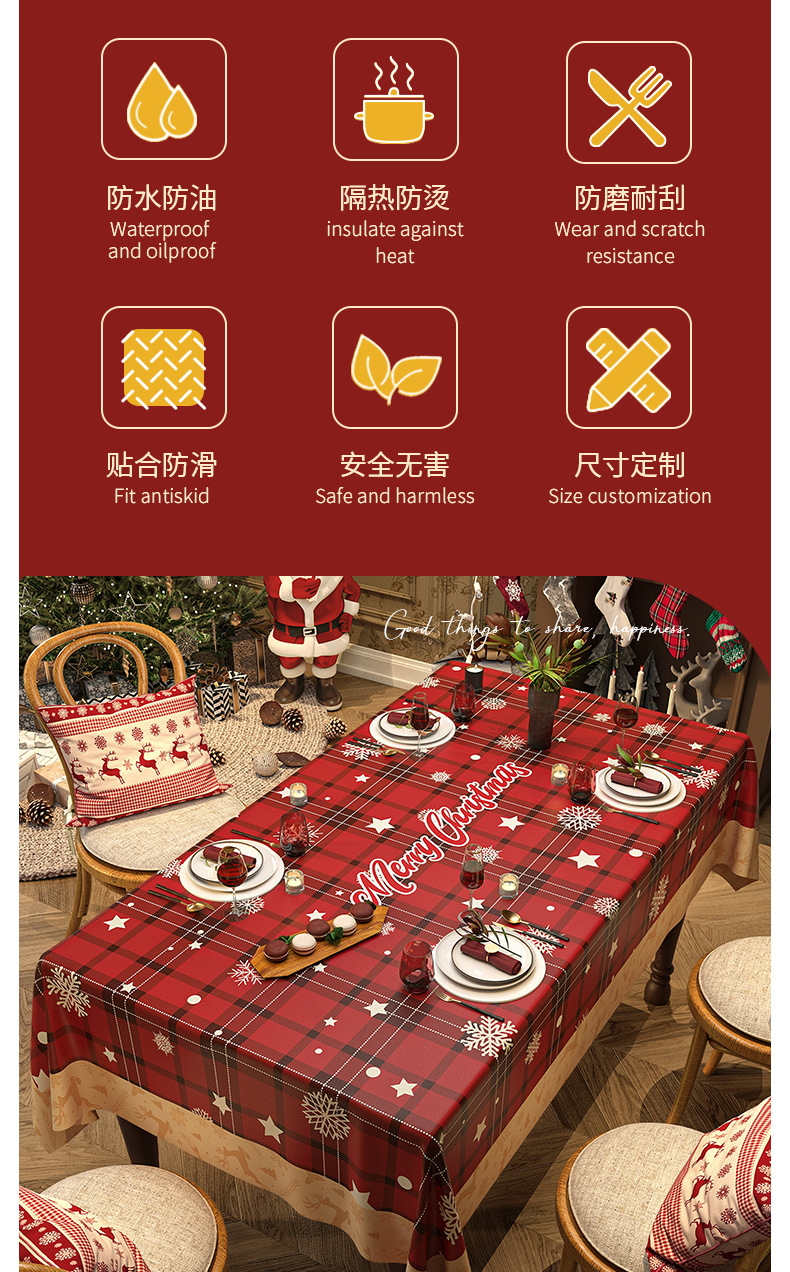 도매 맞춤형 새해 크리스마스 식탁보 방수 오일 증거 추수 감사절 파티 장식 테이블 천
