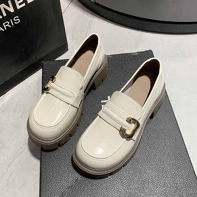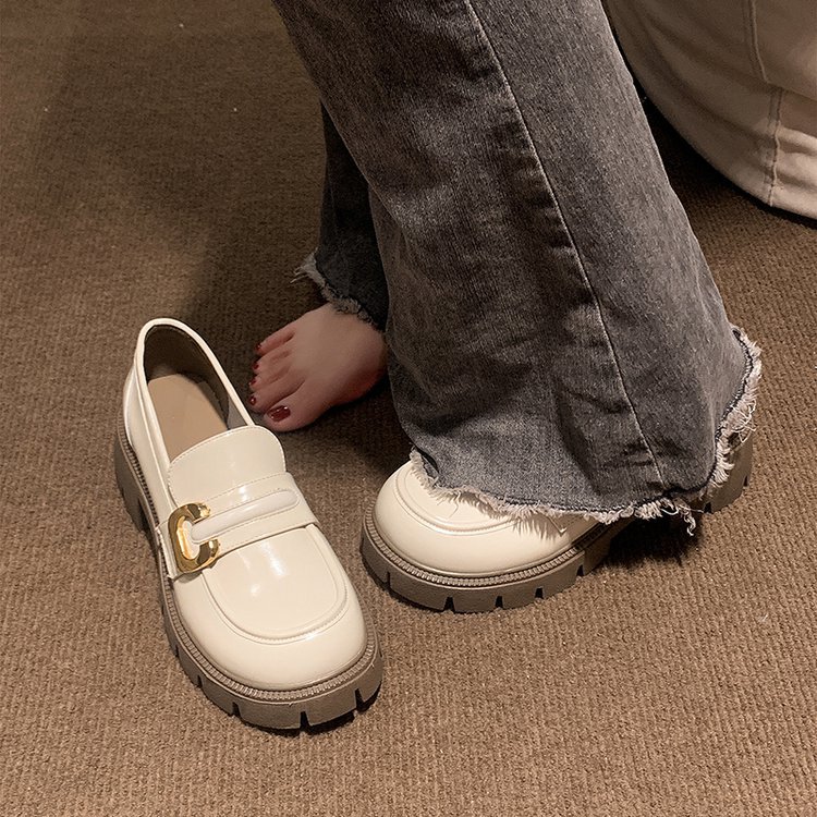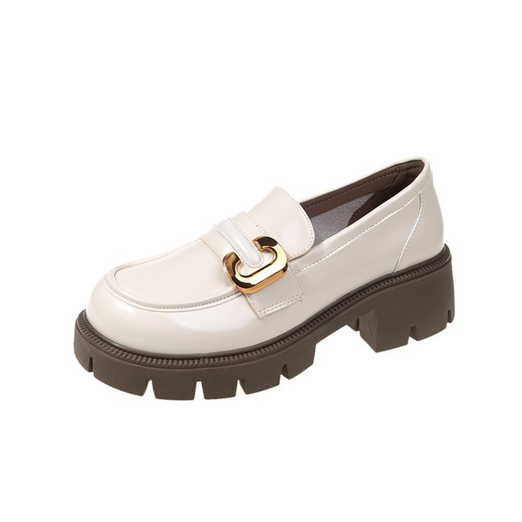 영국 스타일의 작은 가죽 신발 여성 신발 2024 가을과 겨울 새로운 미드 힐 두꺼운 싱글 레이어 신발 대학 두꺼운 밑창 로퍼 슬립 온