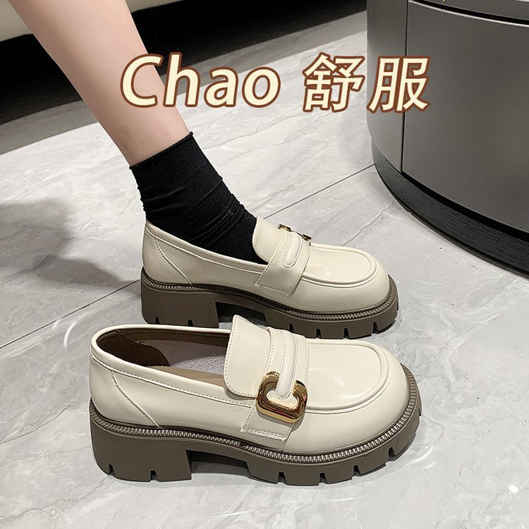 영국 스타일의 작은 가죽 신발 여성 신발 2024 가을과 겨울 새로운 미드 힐 두꺼운 싱글 레이어 신발 대학 두꺼운 밑창 로퍼 슬립 온스토어 가기