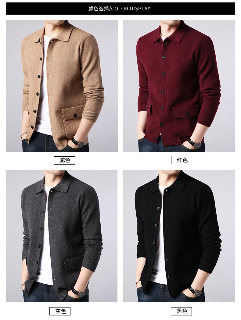 남성용 중년 및 젊은 솔리드 컬러 카디건 새 스웨터 코트 라포켓 니트 루즈 캐주얼 니트스토어 가기