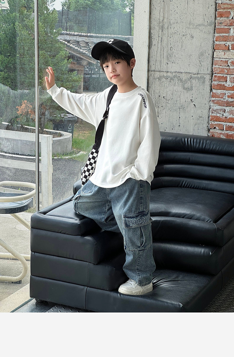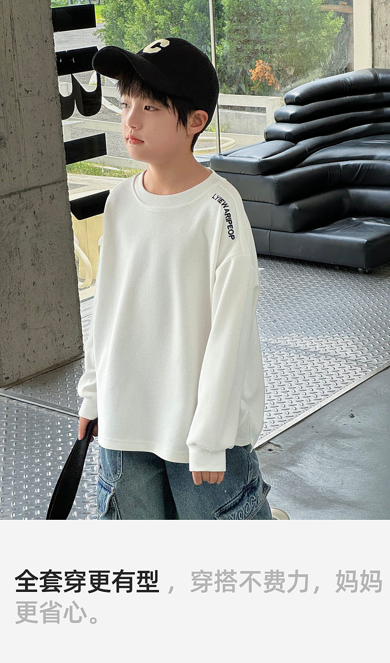 Panda Yuanyuan 2025 신상 남아 가을 의류 헤비 코마 면 아동용 긴팔 티셔츠 약간 신축성 있는 바닥 셔츠 상의스토어 가기