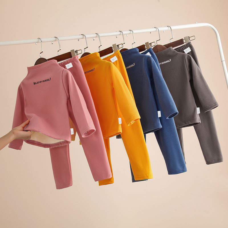 어린이 기모 두꺼운 높은 칼라 보토밍 셔츠 세트 겨울 따뜻한 가을 바지 속옷 소년 소녀를위한 세트 아기 중국 Jiatai스토어 가기