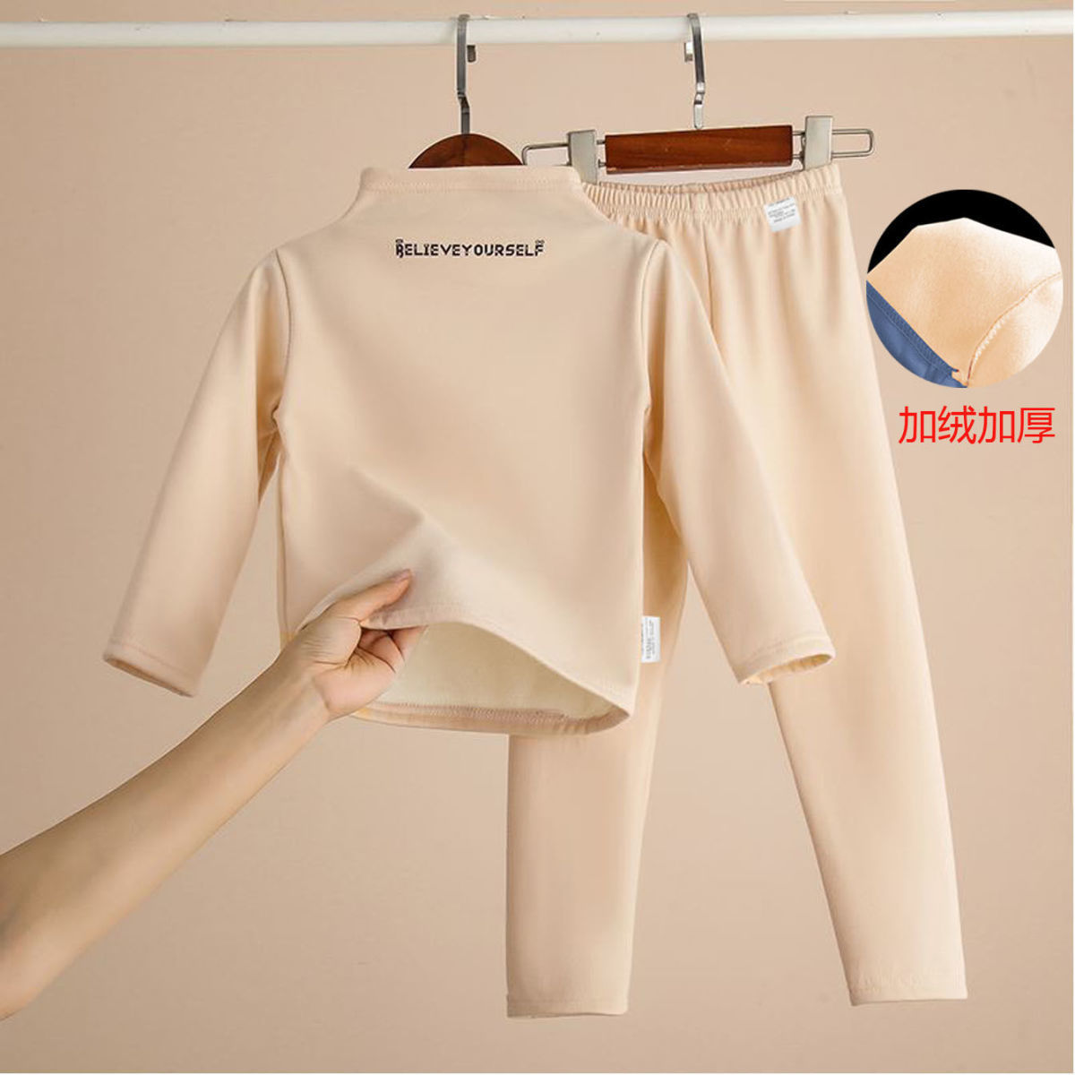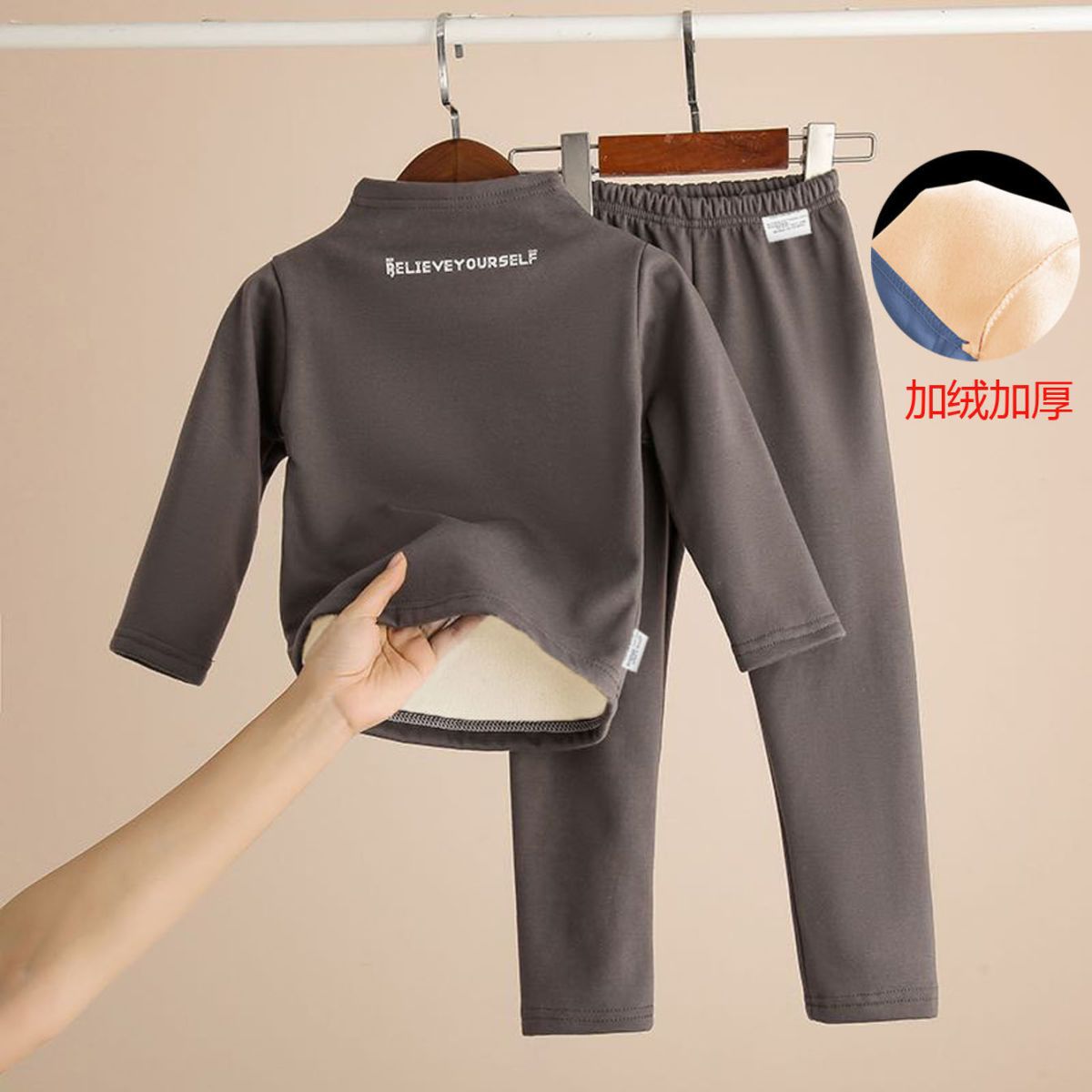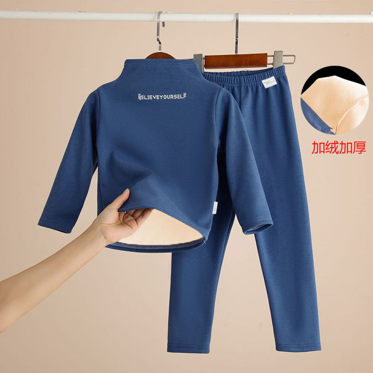 어린이 기모 두꺼운 높은 칼라 보토밍 셔츠 세트 겨울 따뜻한 가을 바지 속옷 소년 소녀를위한 세트 아기 중국 Jiatai
