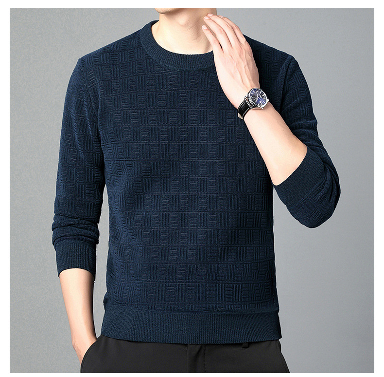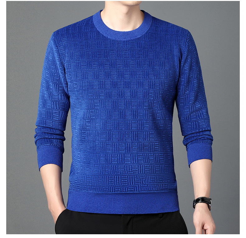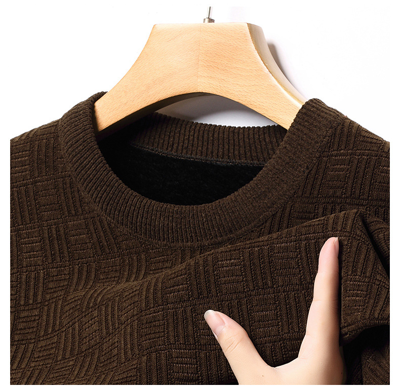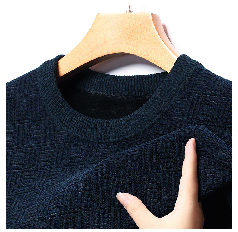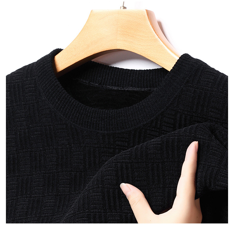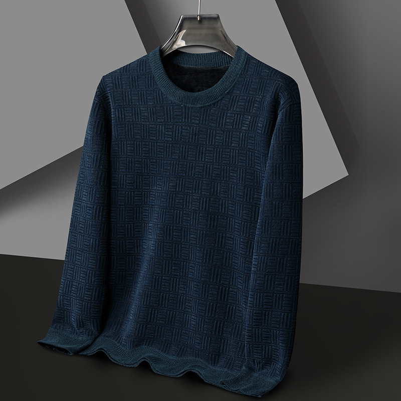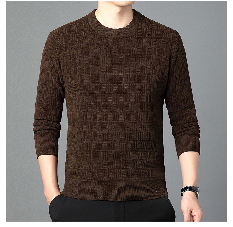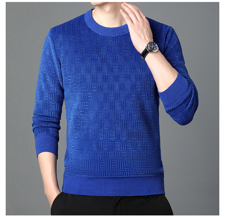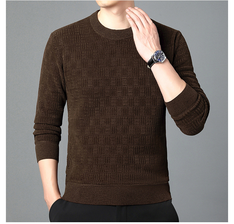 남자 가을과 겨울 원피스 벨벳 자카드 롱 슬리브 스웨터 뉴 라운드 넥 올 매치 체닐베이스 셔츠 아빠 셔츠 스웨터