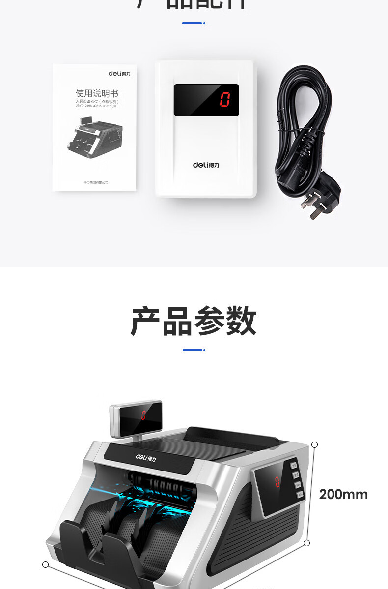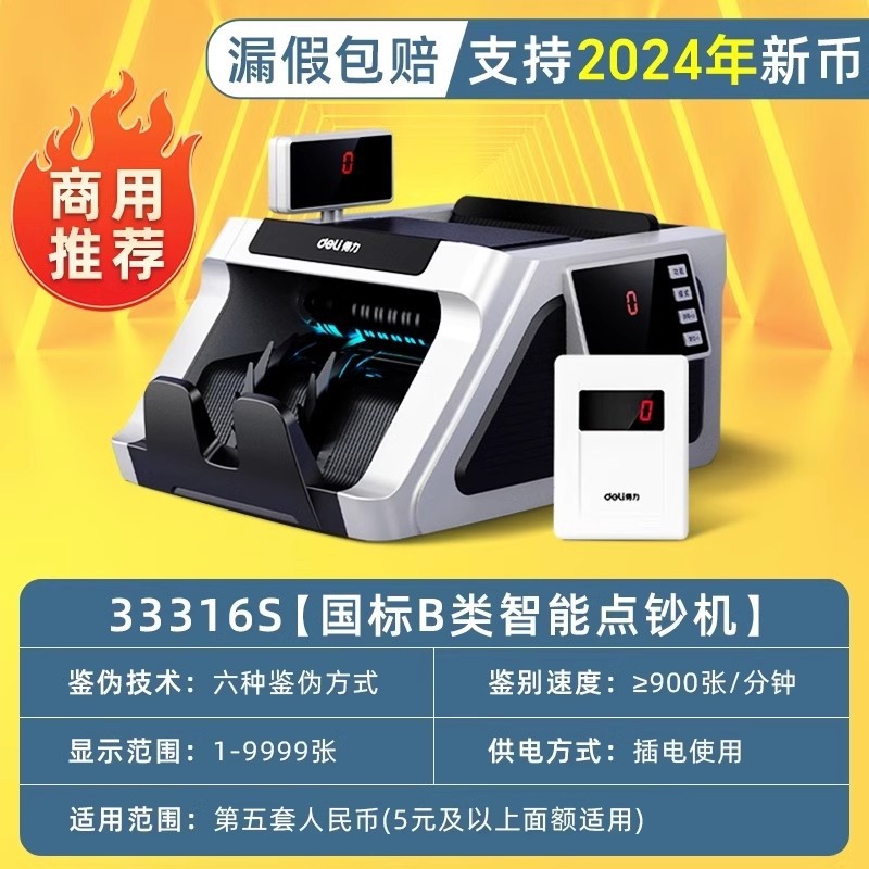델리 클래스 B 2024 신판 RMB 지폐 감지기 상업 현금 등록 휴대용 슈퍼마켓 가구 새로운 3 스크린 지폐 카운터
