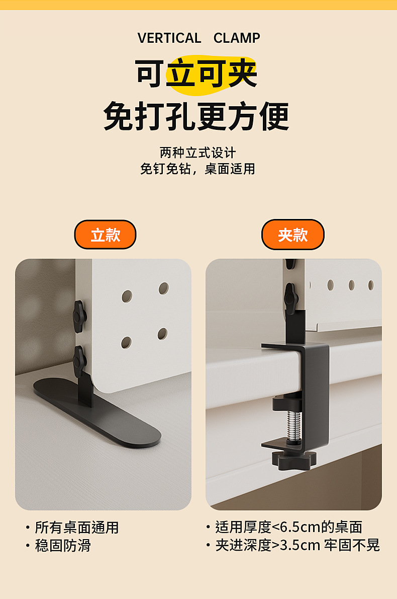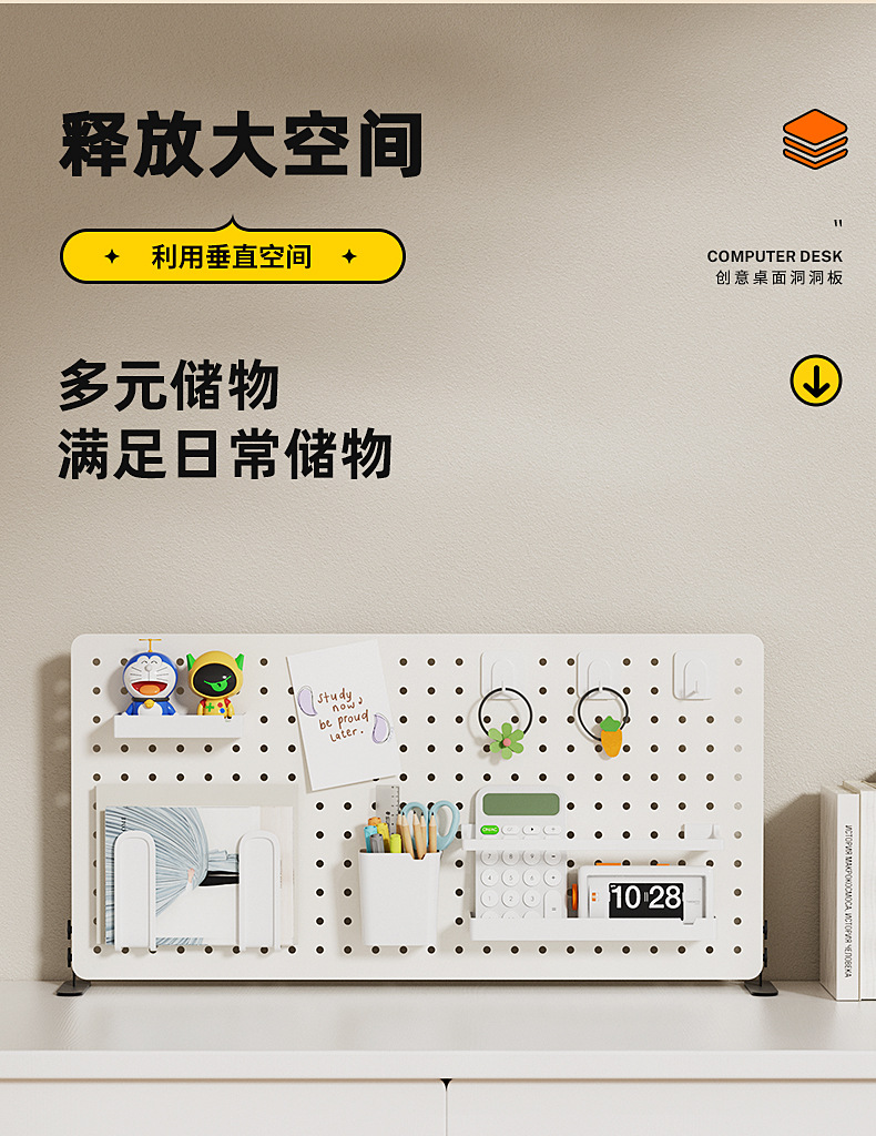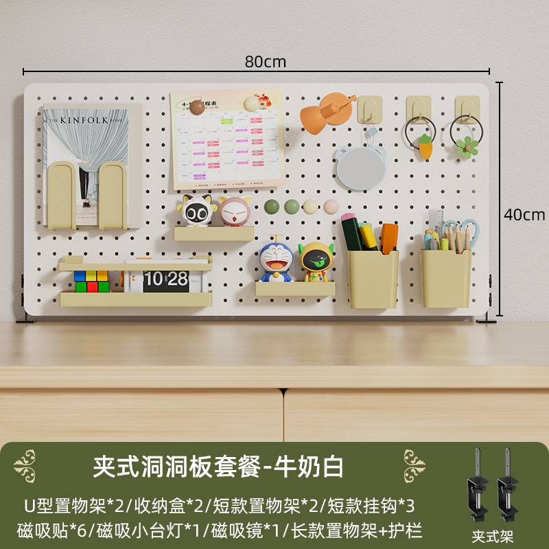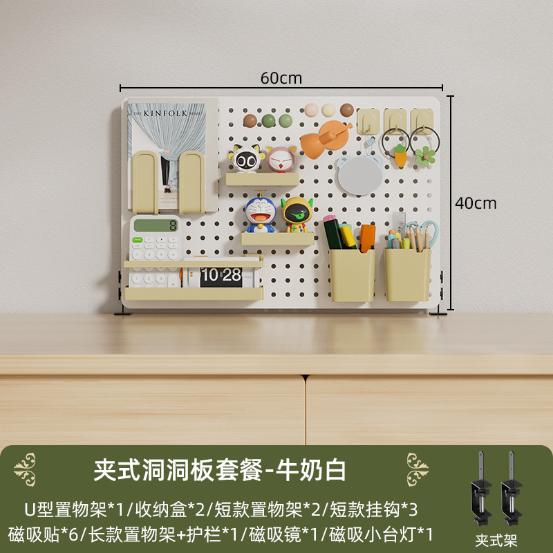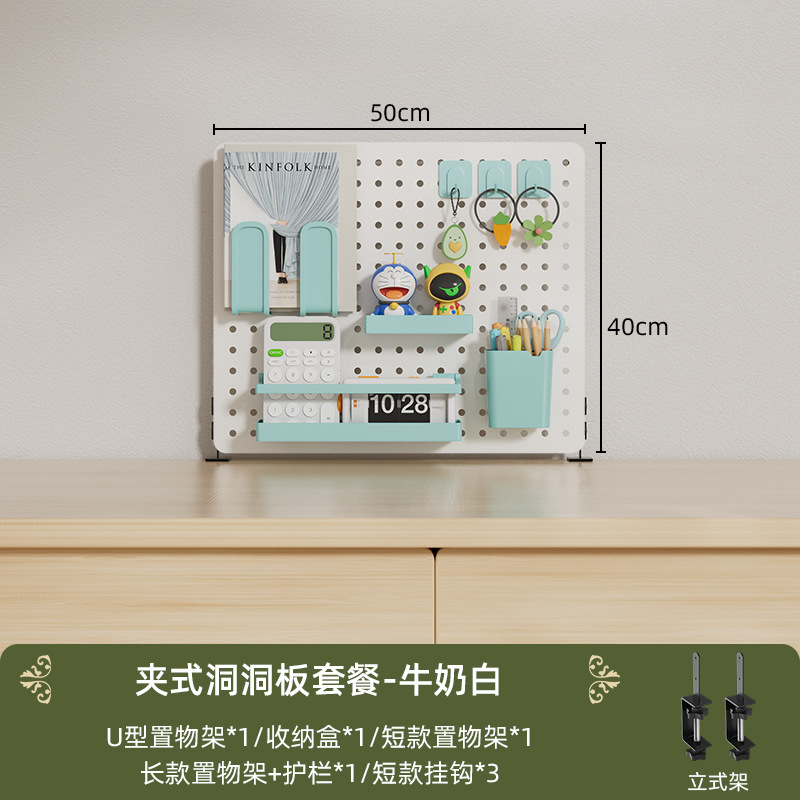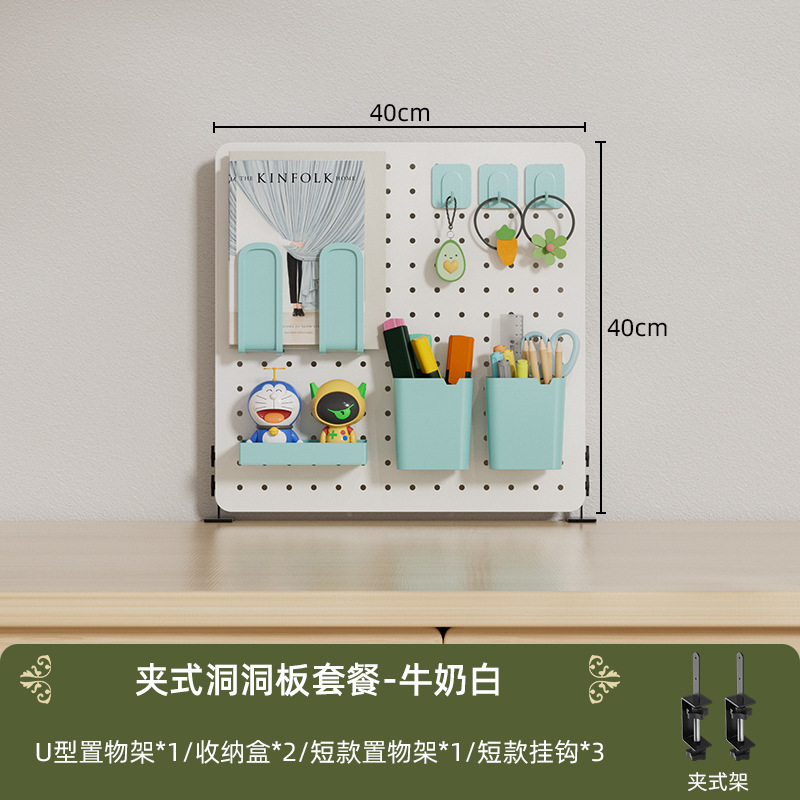 클립형 데스크탑 홀보드 메탈 수납선반, 무타공 액세서리, 책상 위 선반, 벽걸이형 수납함