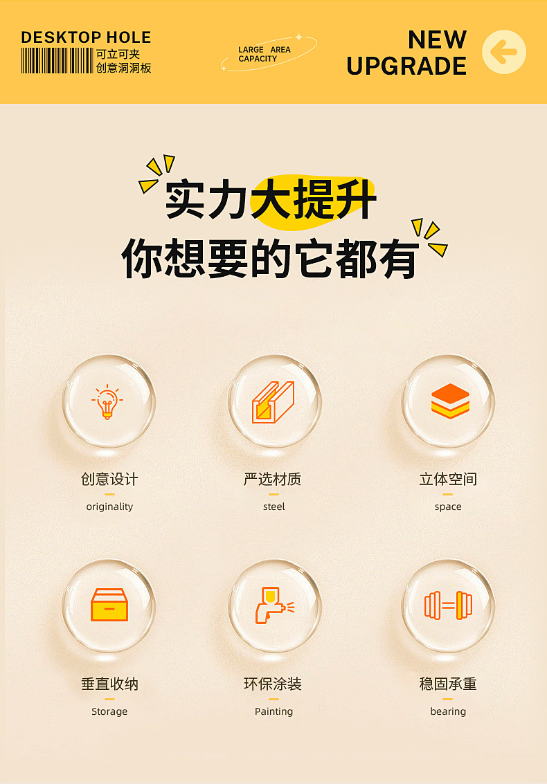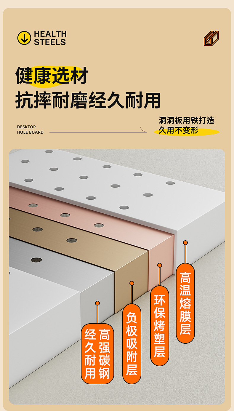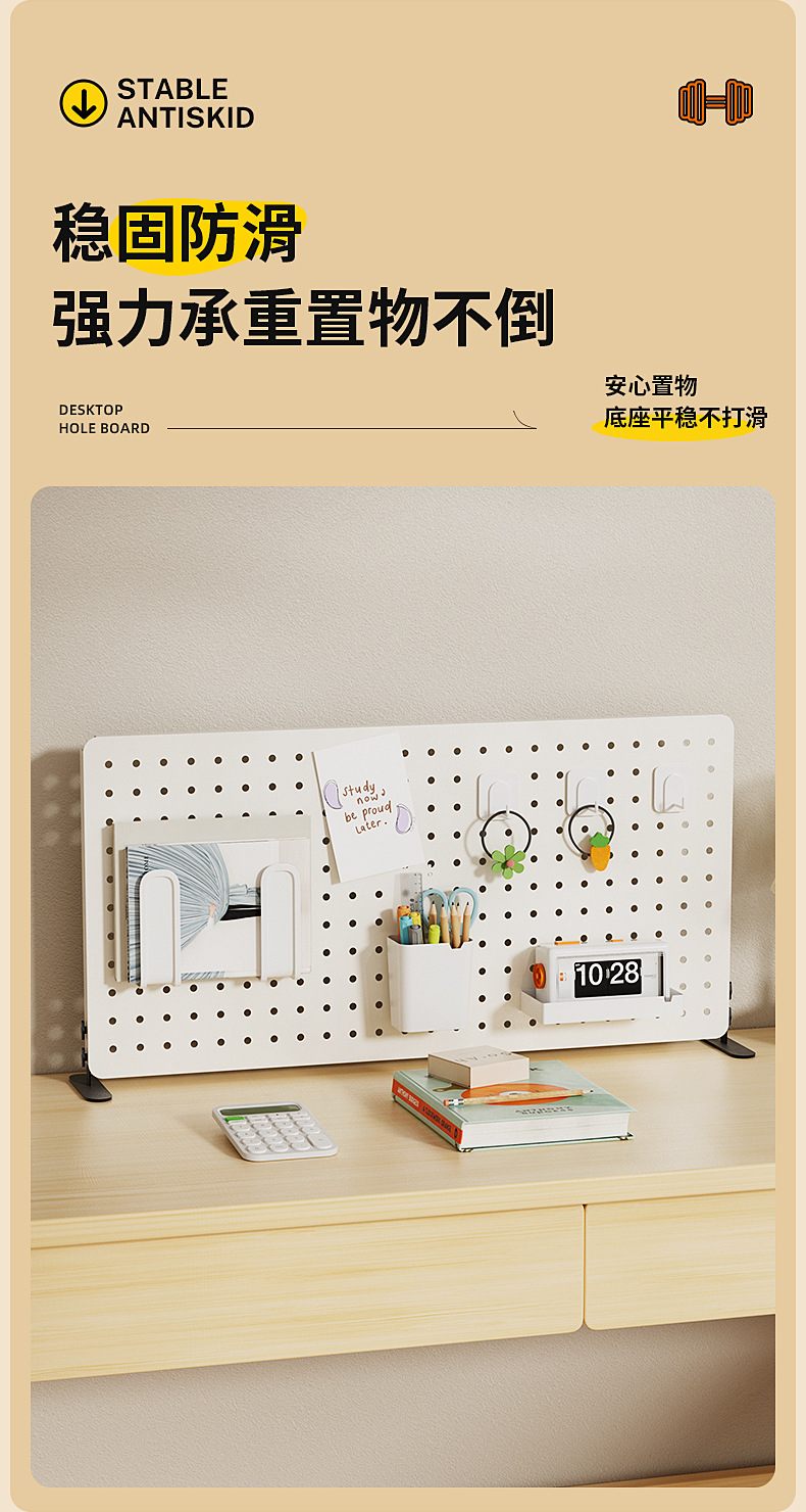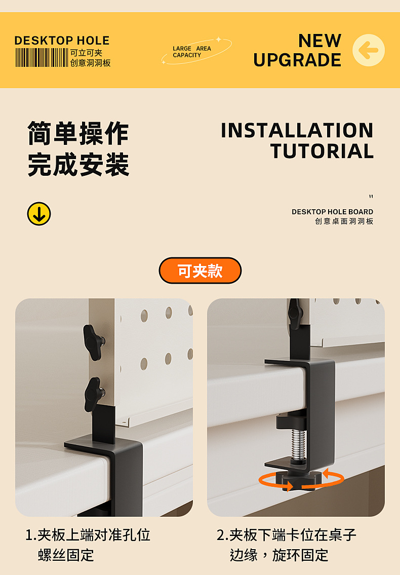 클립형 데스크탑 홀보드 메탈 수납선반, 무타공 액세서리, 책상 위 선반, 벽걸이형 수납함
