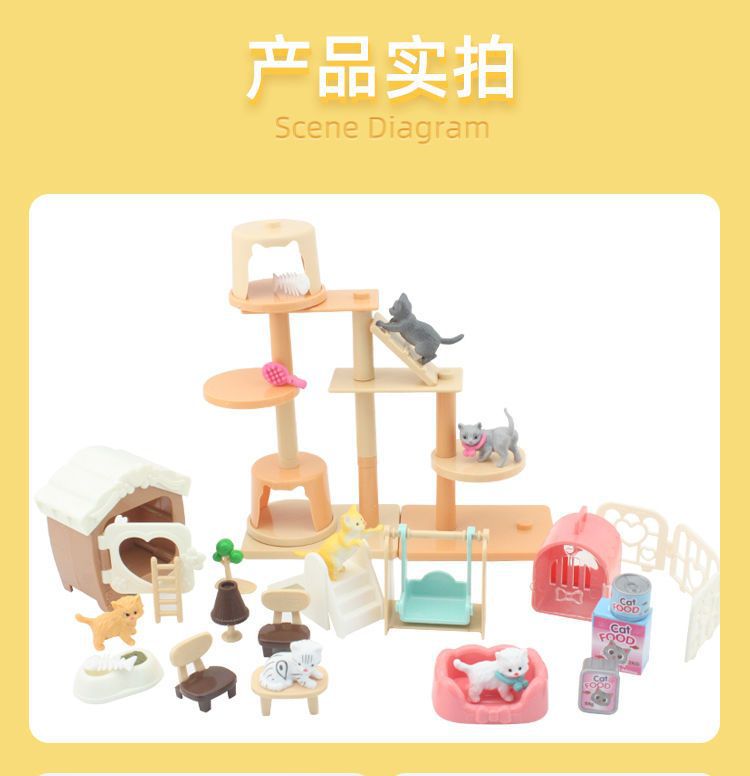 어린이 놀이 집 미니 가구 주방 코티지 하우스 소녀 장난감 새로운 6-13 세 고양이 Jiatai