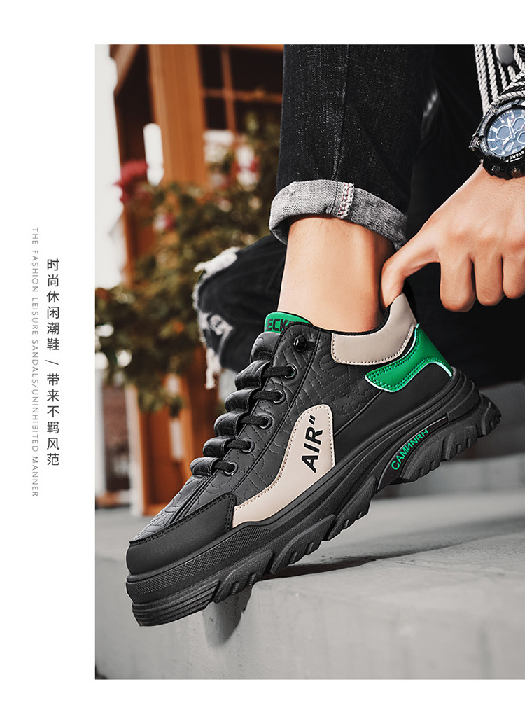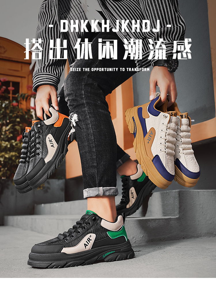 남자 신발 가을 2024 새로운 두꺼운 밑창 미끄럼 방지 작업복 보드 신발 스포츠 캐주얼 마틴 부츠 로우 탑 슬립 온 트렌디 신발스토어 가기