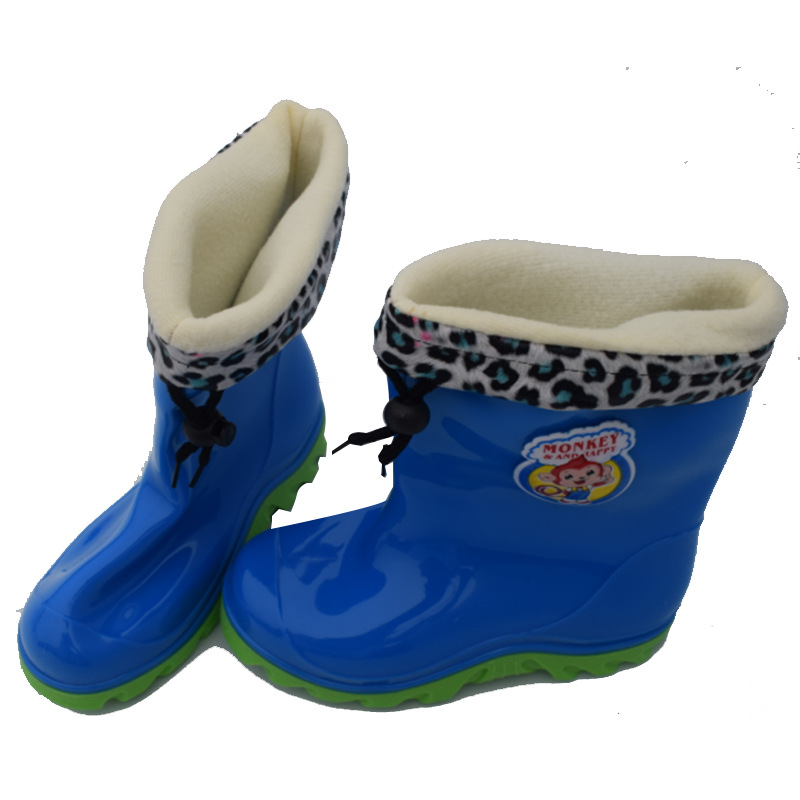 만화 어린이 비 부츠 미끄럼 방지 방수 중간 튜브 클래식 장화 큰 어린이와 학생을위한 부드럽고 편안한 코튼 유니버설스토어 가기