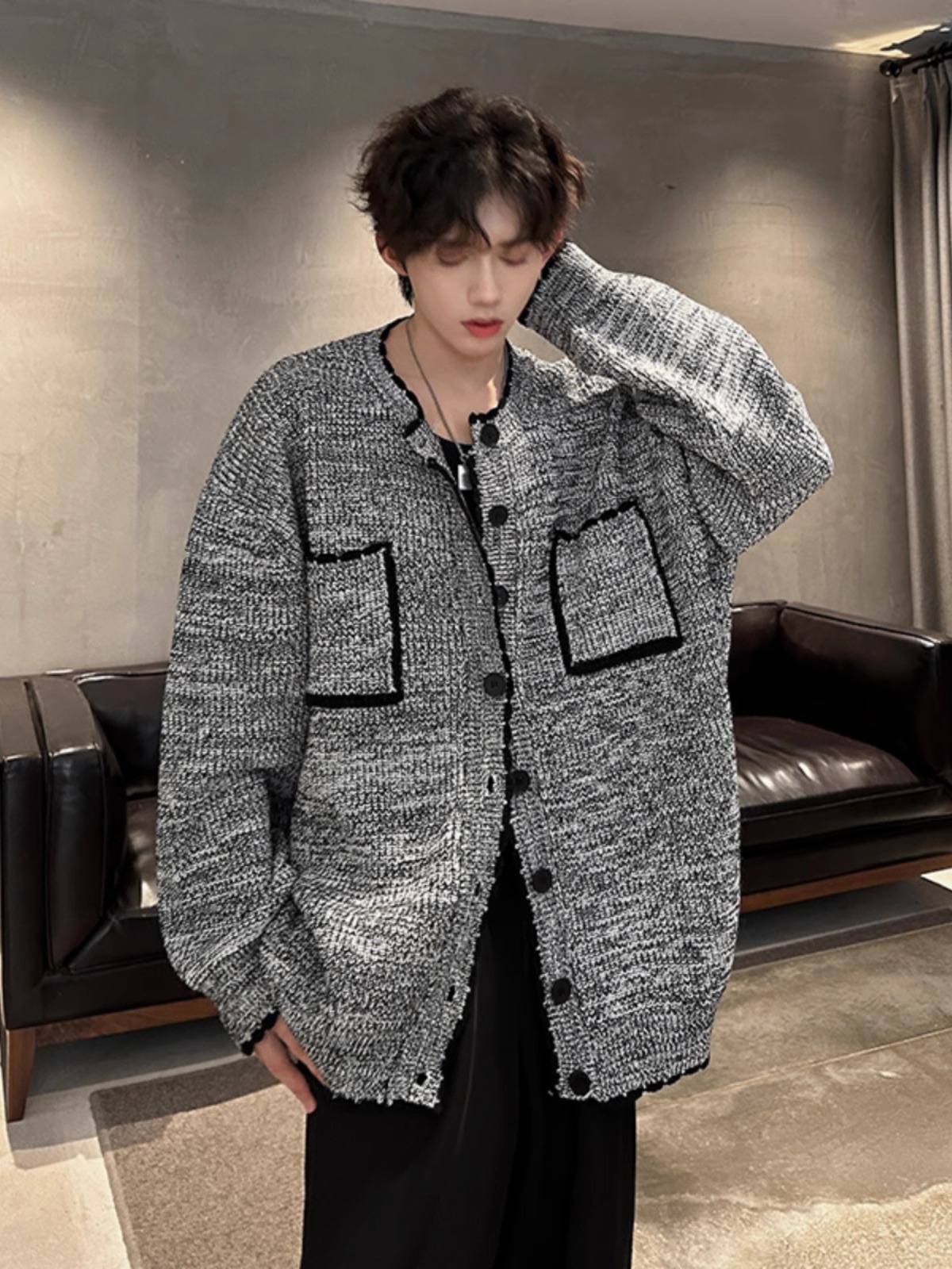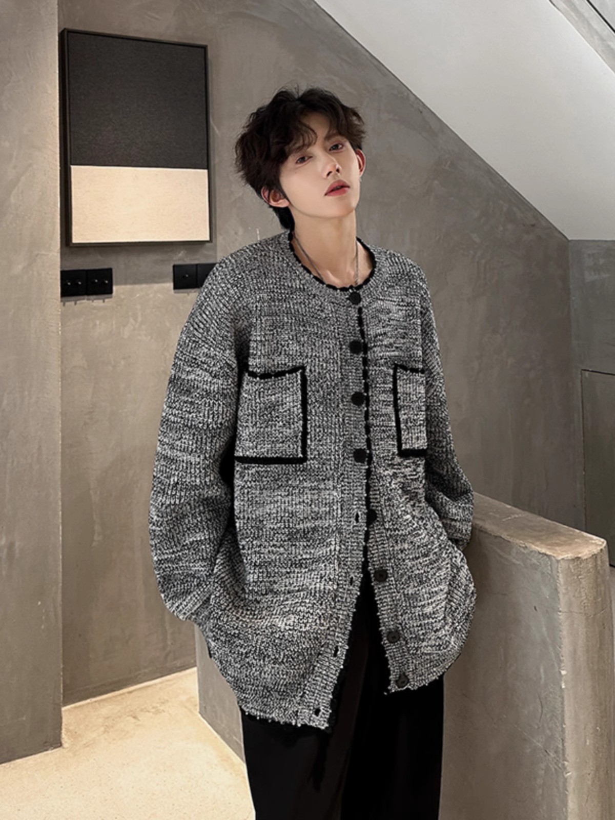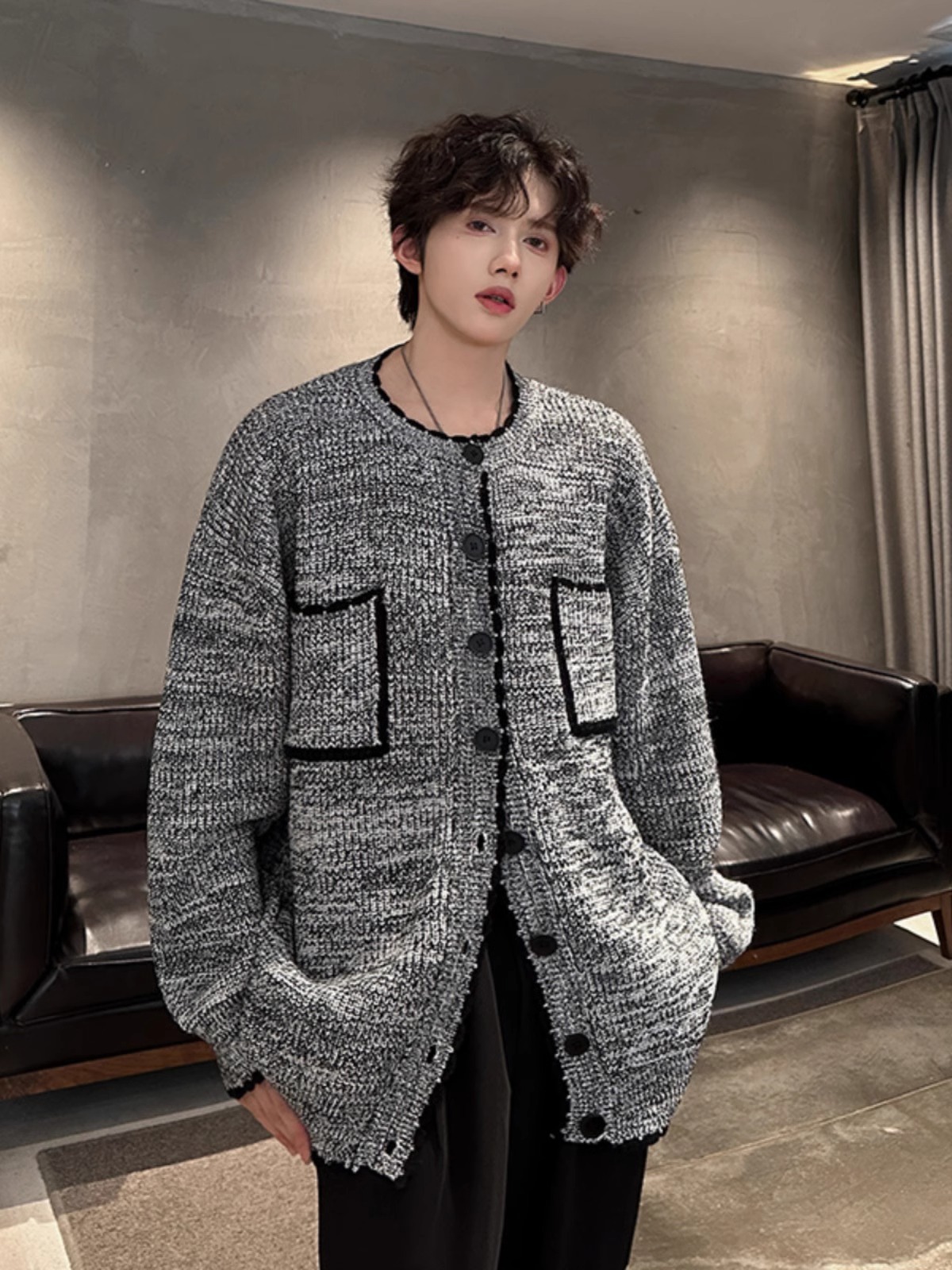 가을 새 회색 긴팔 니트 스웨터 카디건 자켓 남녀 루즈 단순 올매치 캐주얼 탑스토어 가기