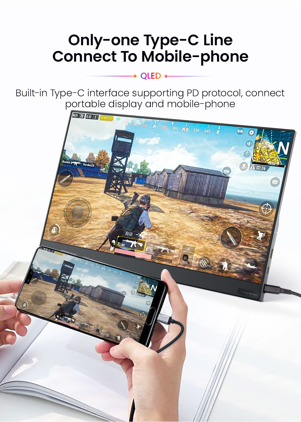 2024 새로운 13.3 인치 휴대용 디스플레이 컴퓨터 휴대 전화 HD 연결 확장 휴대용 디스플레이