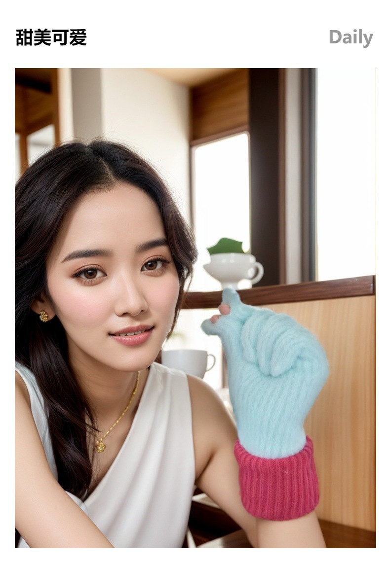 양모 니트 장갑 장갑 여성의 겨울 2024 새로운 따뜻한 북극 양털 사탕 컬러 도파민스토어 가기