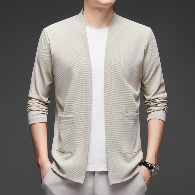새로운 봄과 가을 얇은 진짜 포켓 니트 카디건 재킷 남성 패션 캐주얼 젊은 중년 한국 스타일 심플 탑스토어 가기