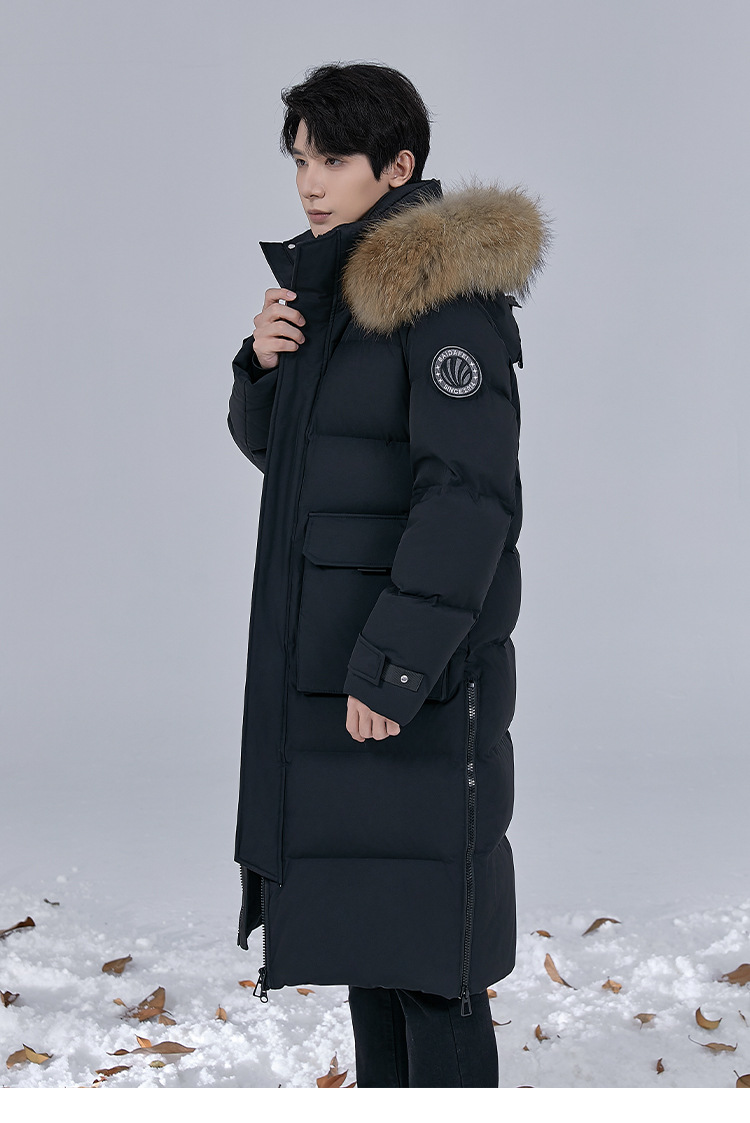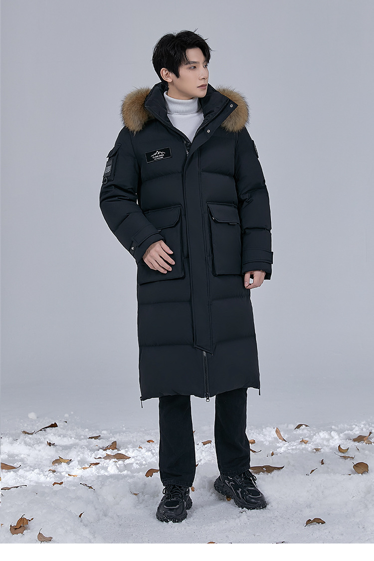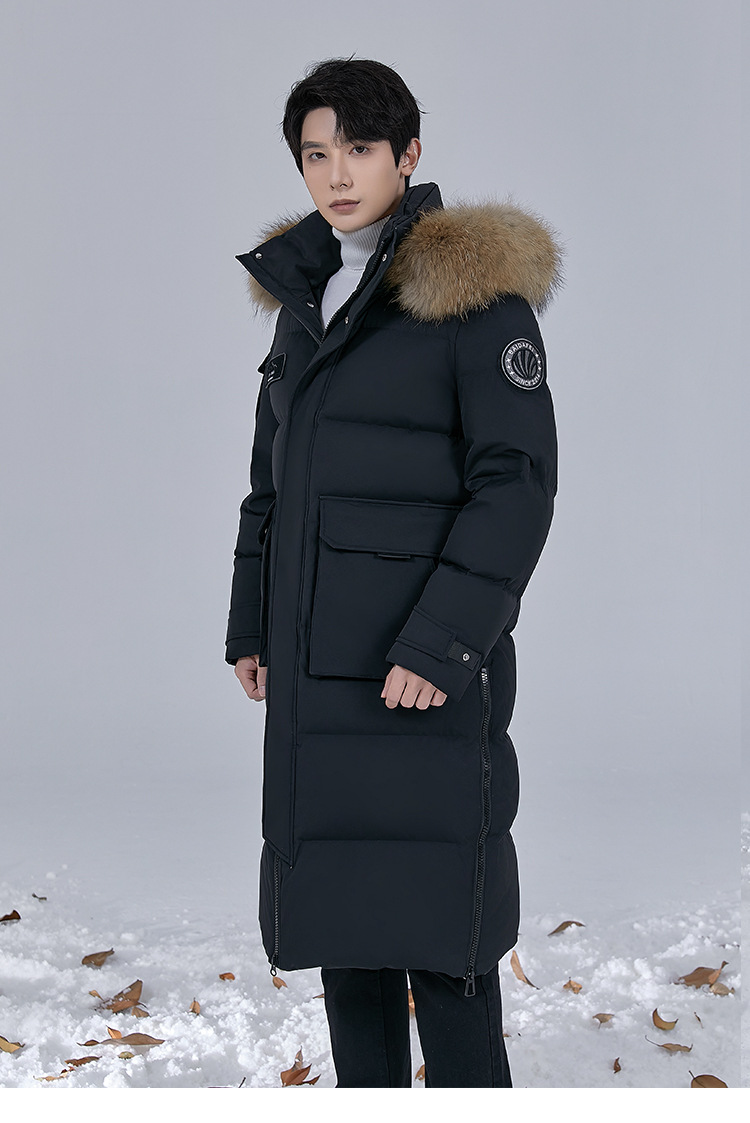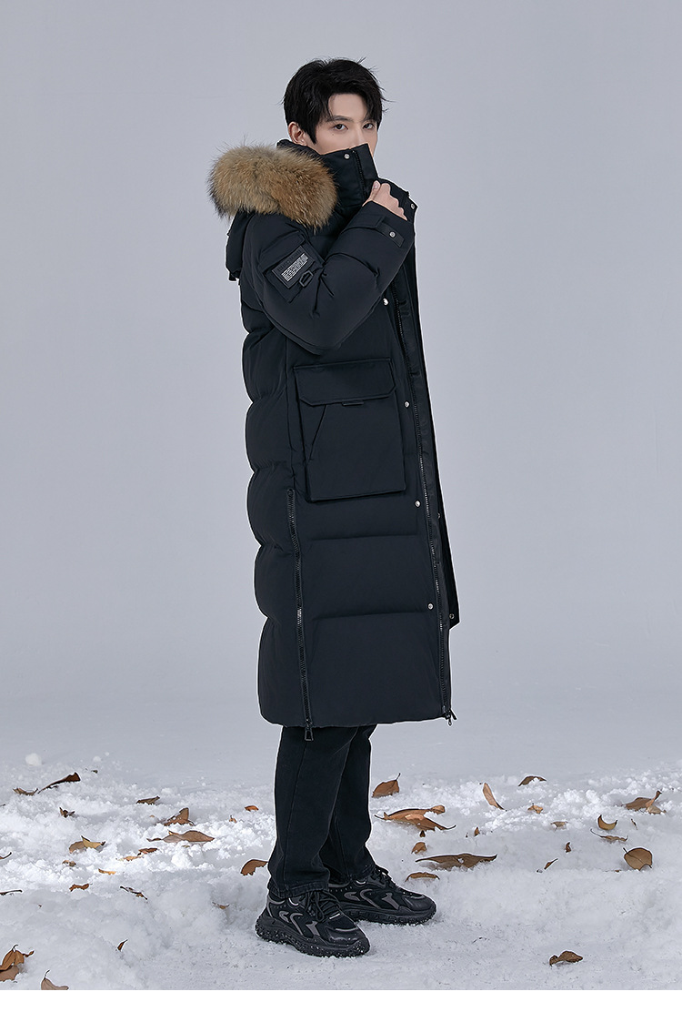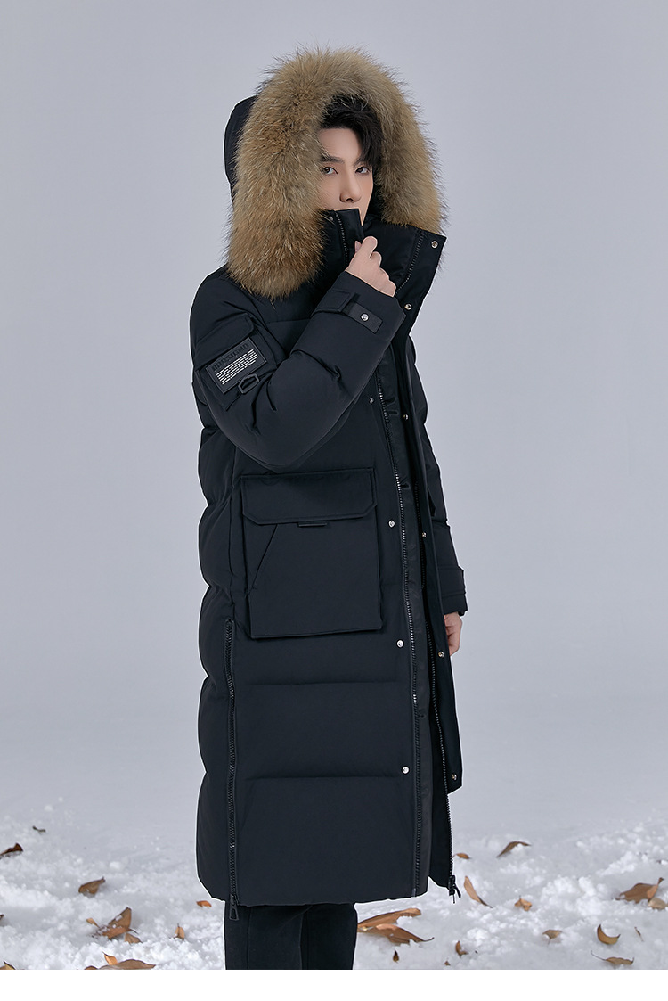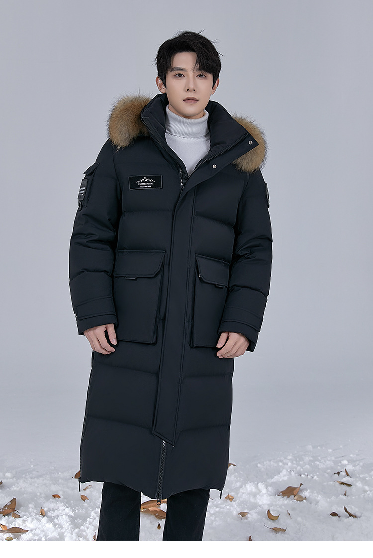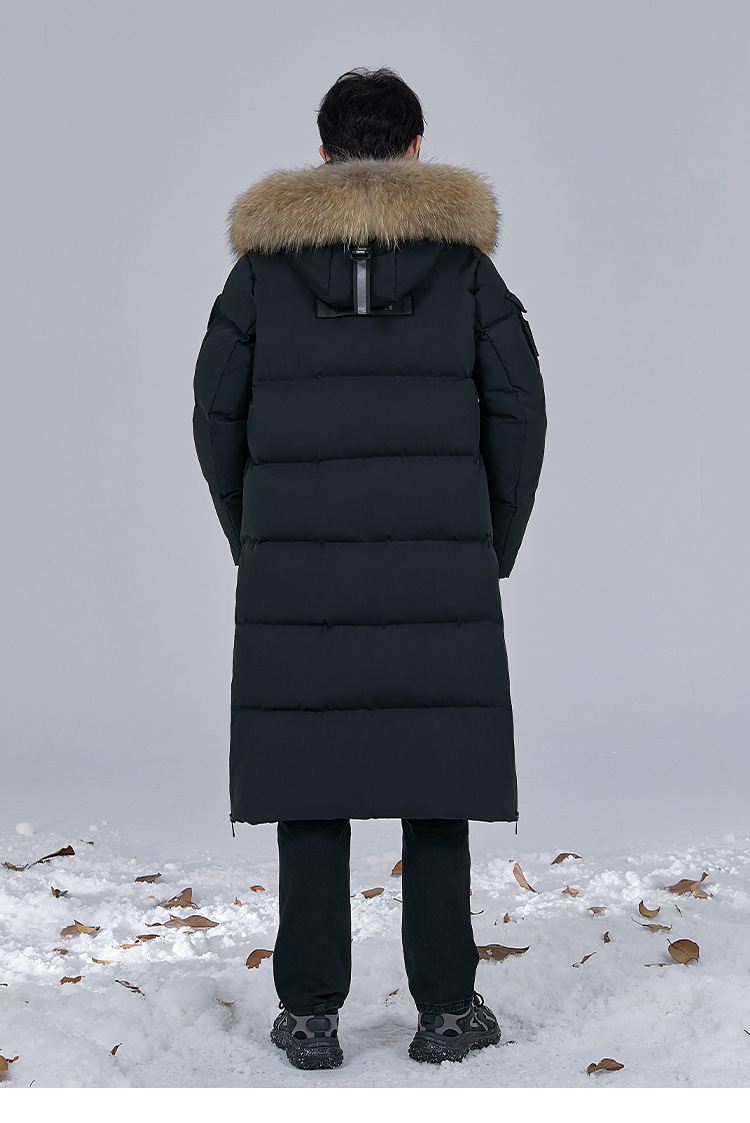 다운 재킷 남성용 엑스트라 롱 무릎 위 2024 겨울 신작 90 화이트 구스 다운 두꺼운 대형 모피 칼라 작업복 극한의 추위 시리즈