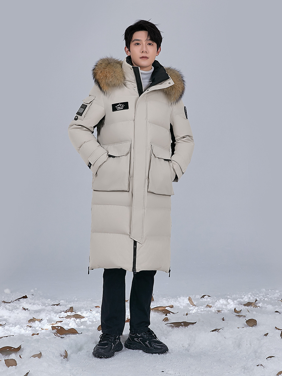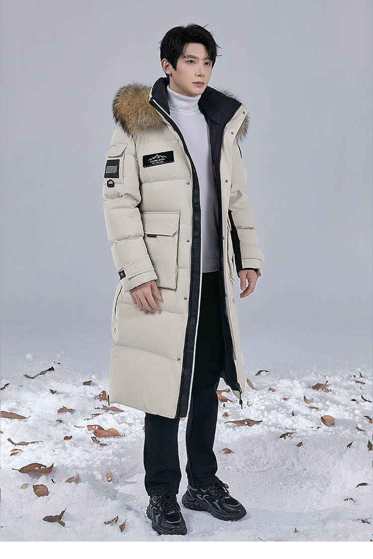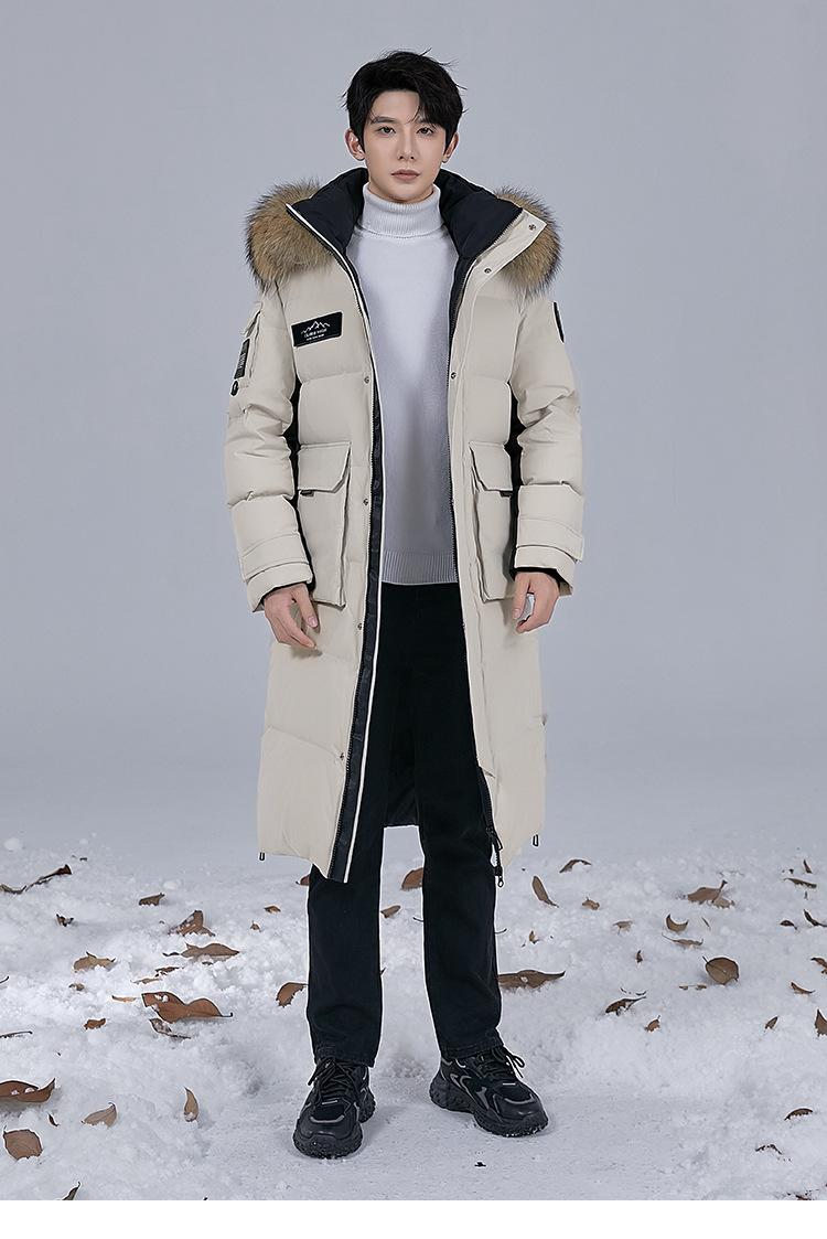 다운 재킷 남성용 엑스트라 롱 무릎 위 2024 겨울 신작 90 화이트 구스 다운 두꺼운 대형 모피 칼라 작업복 극한의 추위 시리즈스토어 가기
